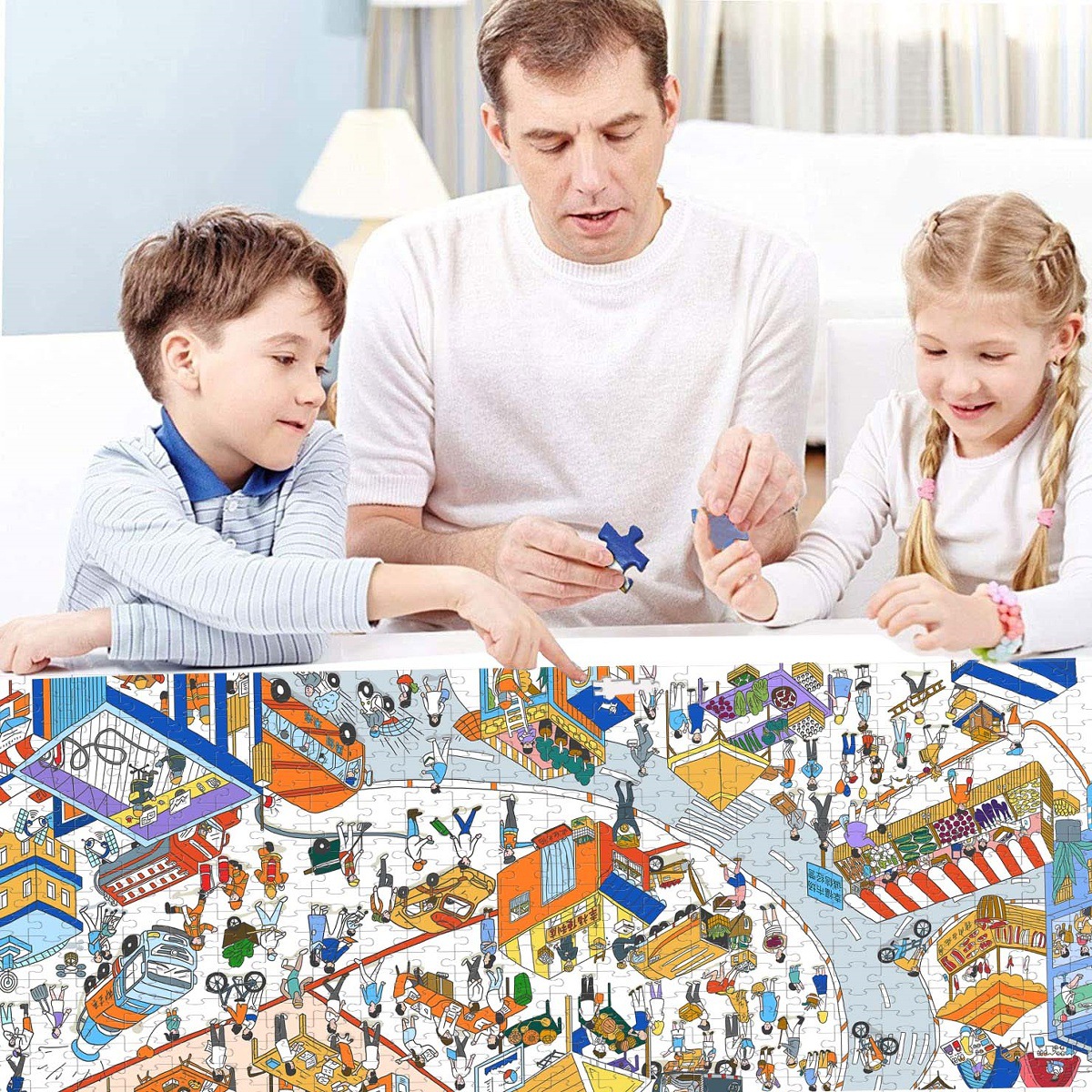 마을 주말 500 조각 나무 성인 직소 퍼즐 압축 압축 유아 및 어린이 조립 건물 블록 퍼즐 수제 DIY 장난감스토어 가기