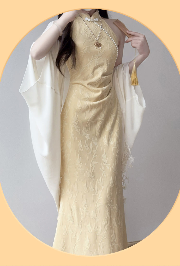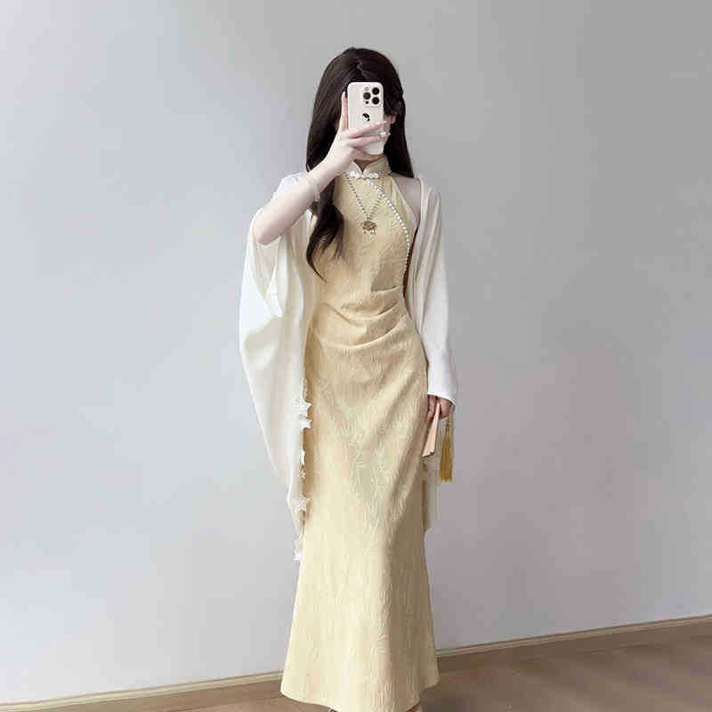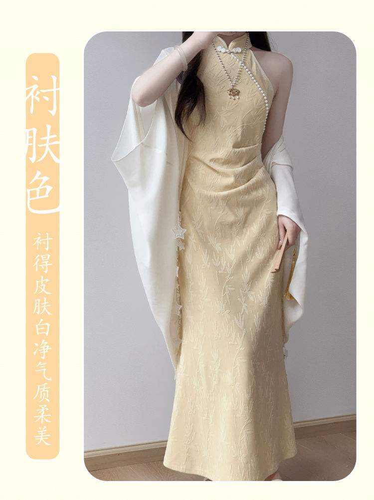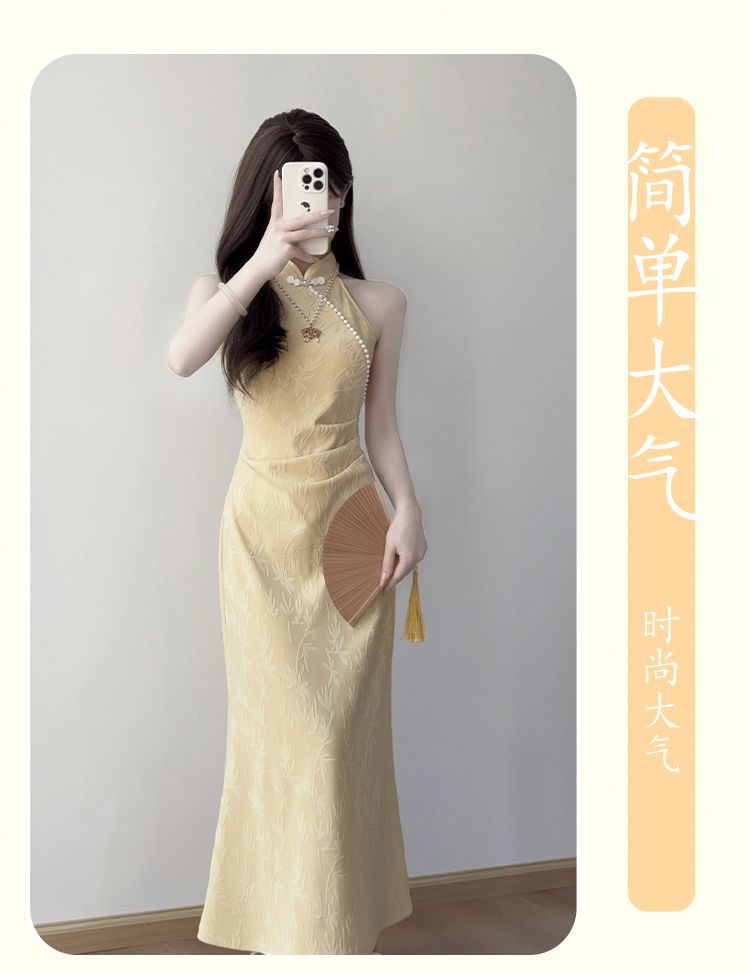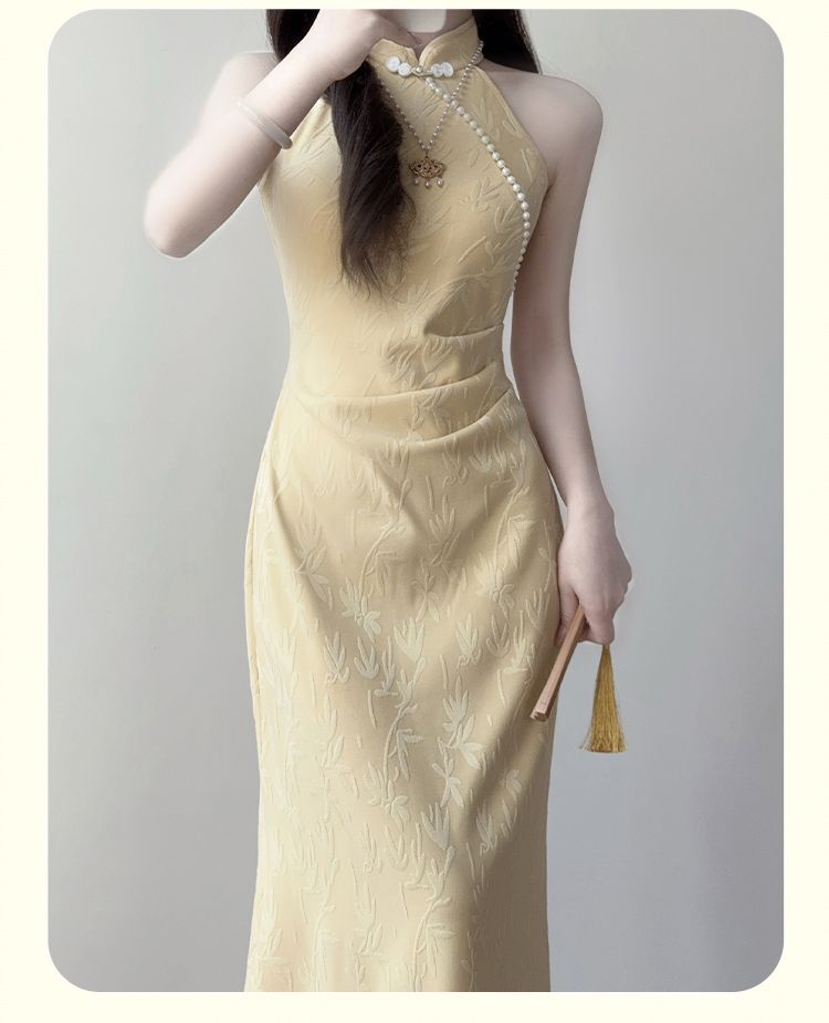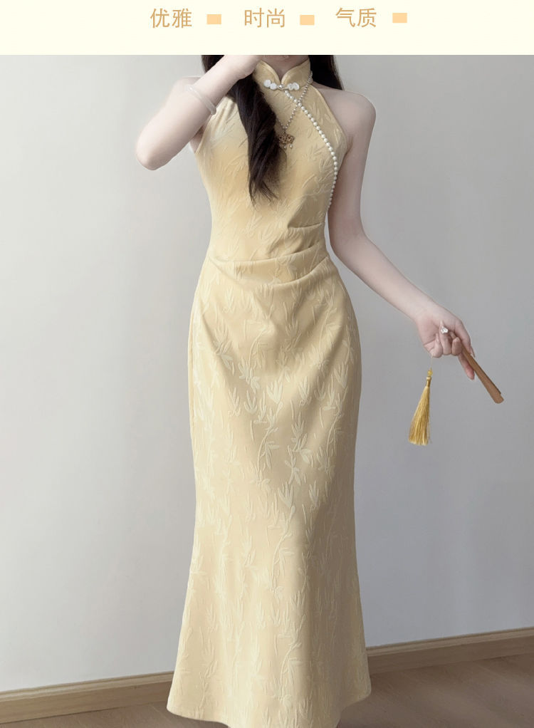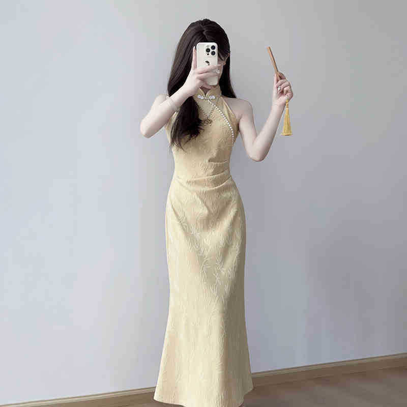 개량된 청삼 2025 신형 젊은 소녀 신형 중국 스타일 원피스 목에 매달린 민소매 높은 우아함