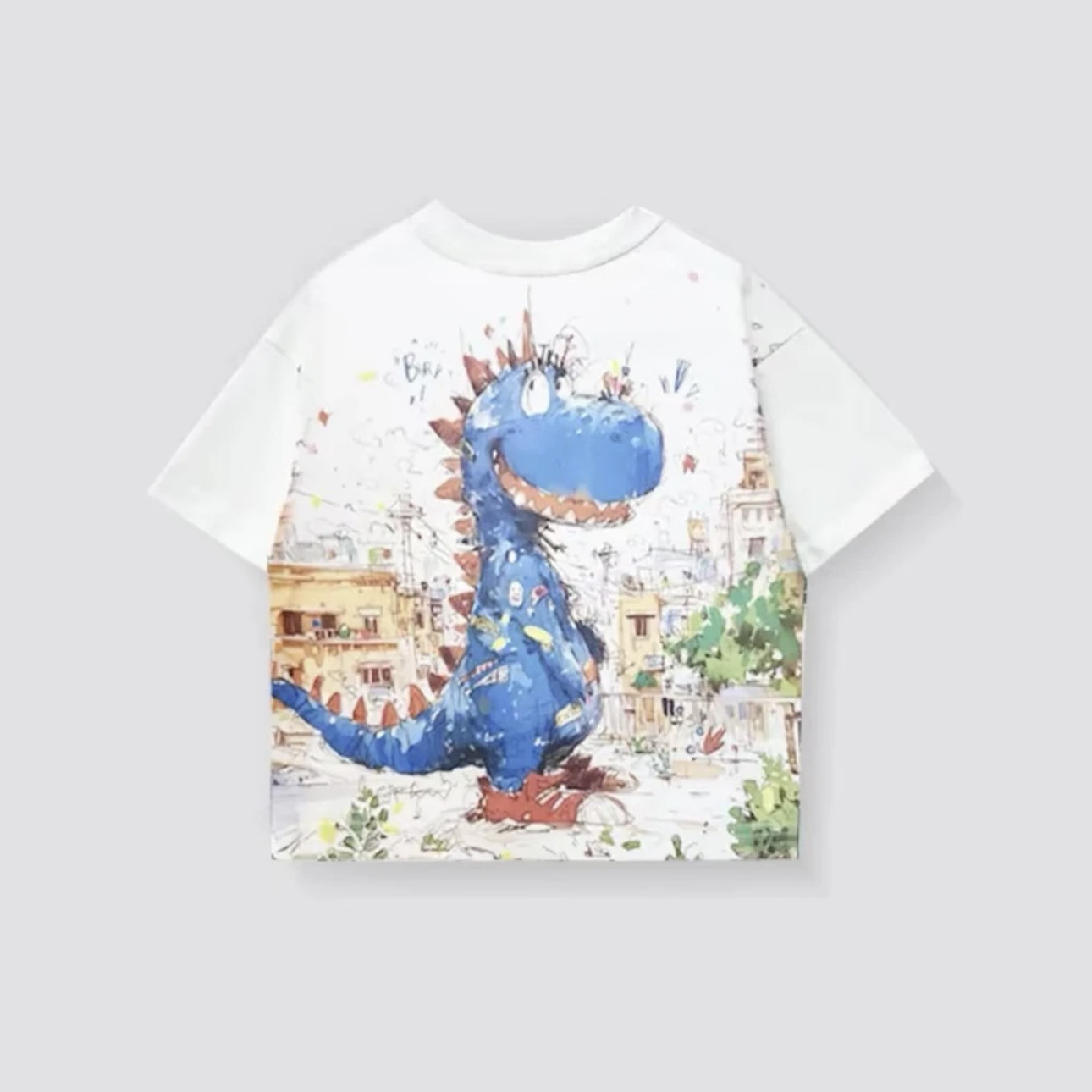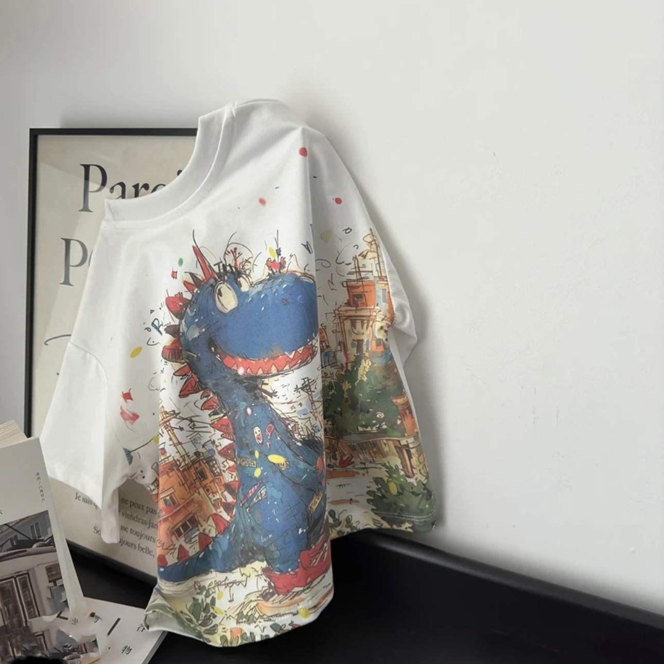 새로운 어린이 여름 캐주얼 라운드 넥 디지털 인쇄 공룡 반팔 티셔츠 소년의 유행 외부 면화 탑 착용