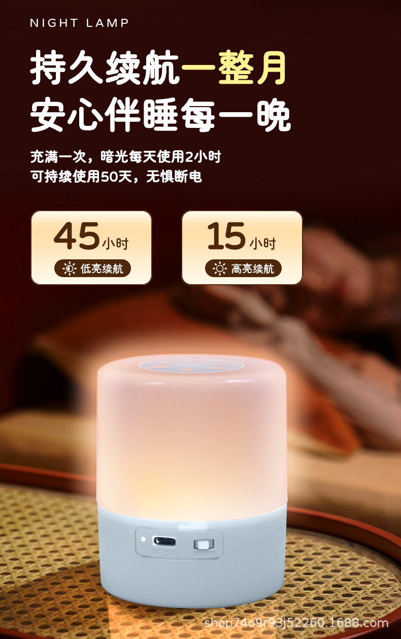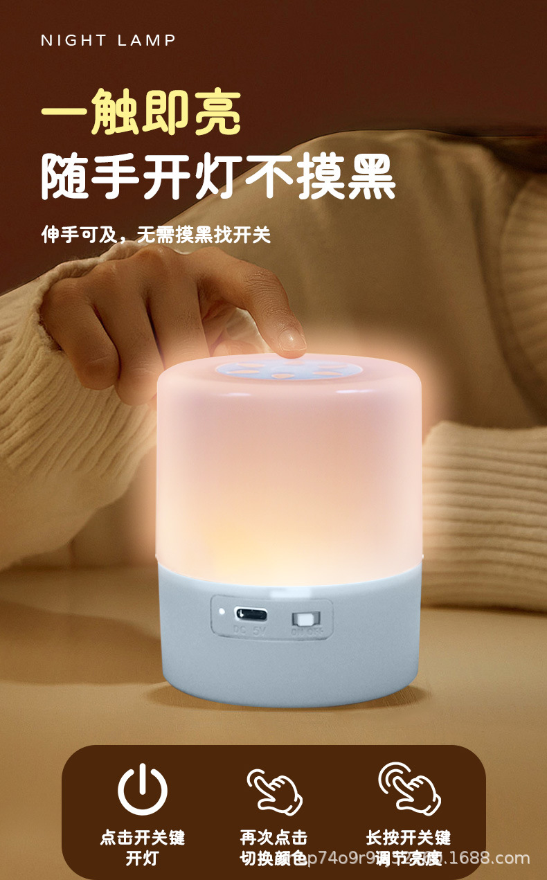 국경 간 새로운 충전식 터치 led 야간 조명 먹이 침대 옆 램프 기숙사 책상 램프 분위기 팻 라이트