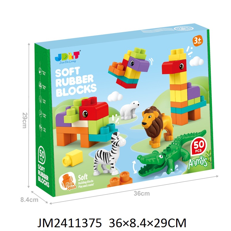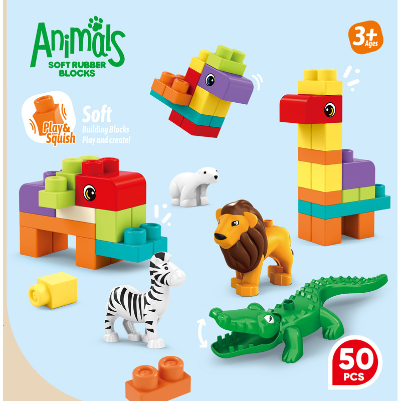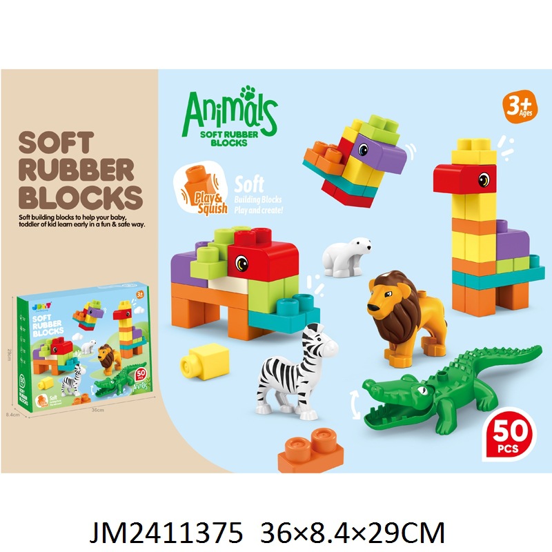 어린이 퍼즐 빌딩 블록 장난감 큰 입자 부드러운 접착제 TPR 빌딩 블록 세트 50 조각 세트스토어 가기