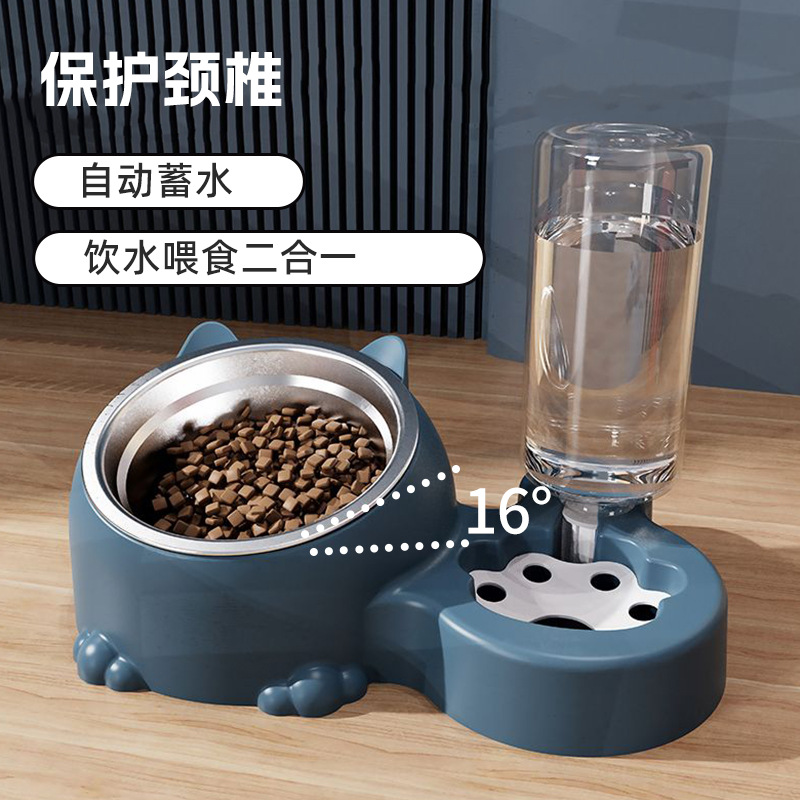 고양이 그릇 2 대 1 더블 그릇 자동 마시는 고양이 먹이 개 먹이 분지 애완 동물 보편적 인 그릇 목 보호 방지 노크 피더