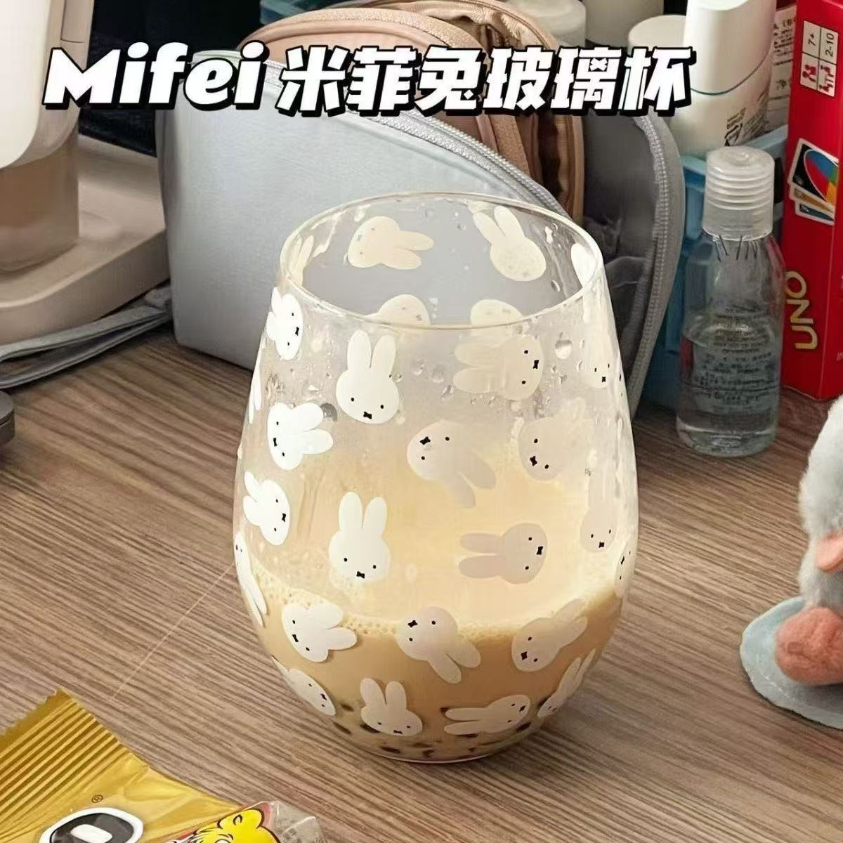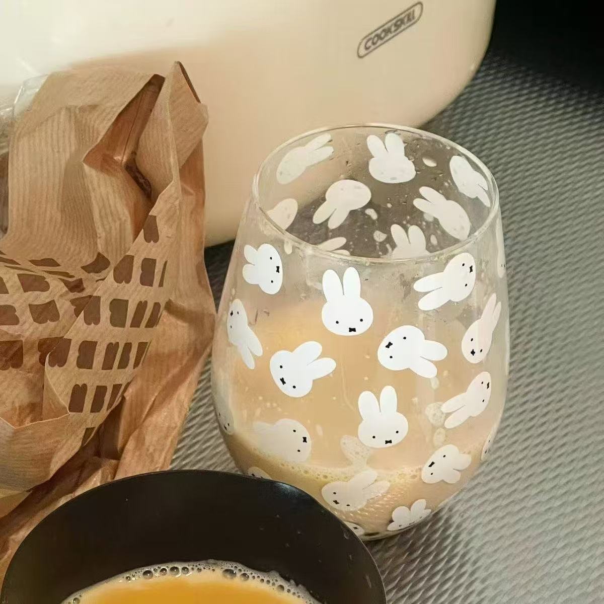 귀여운 미피 토끼 인쇄 유리 컵 큰 배 컵 차 우유 커피 와인 주스 컵 여자 친구 선물스토어 가기