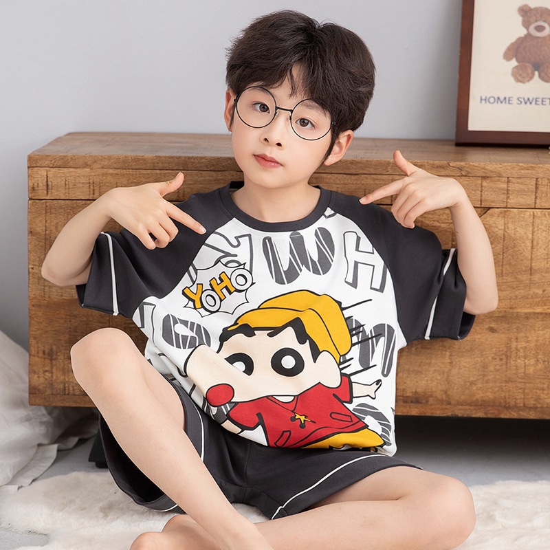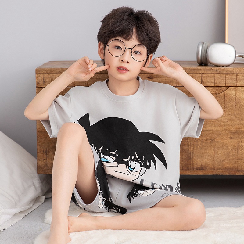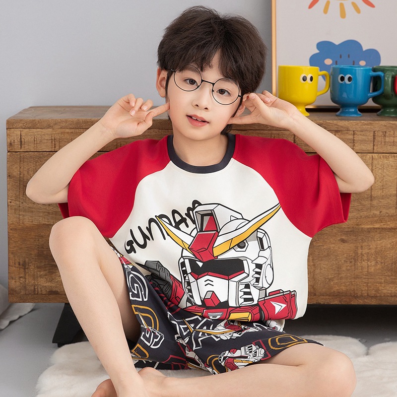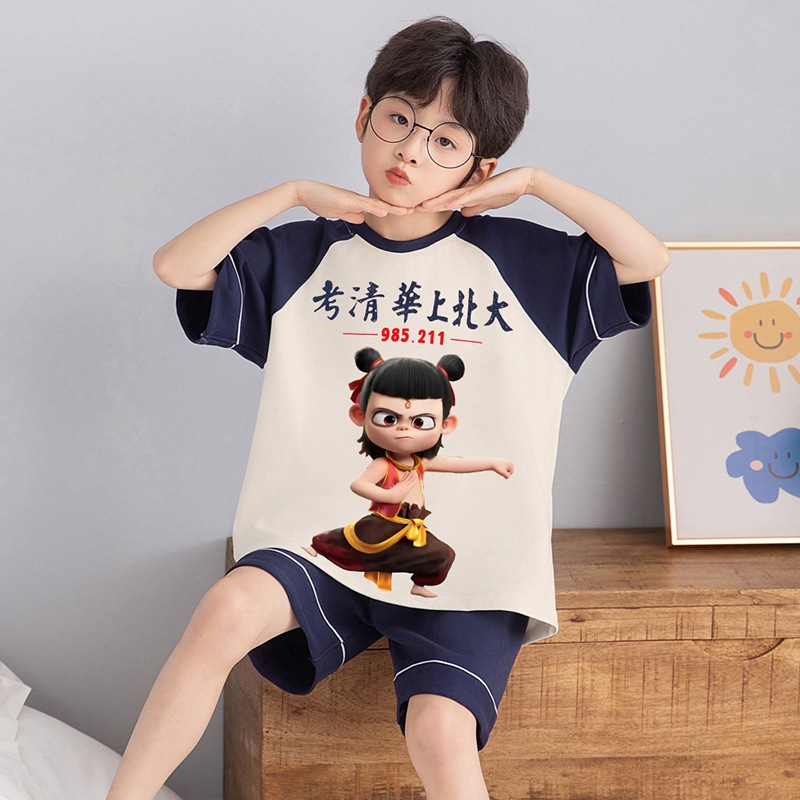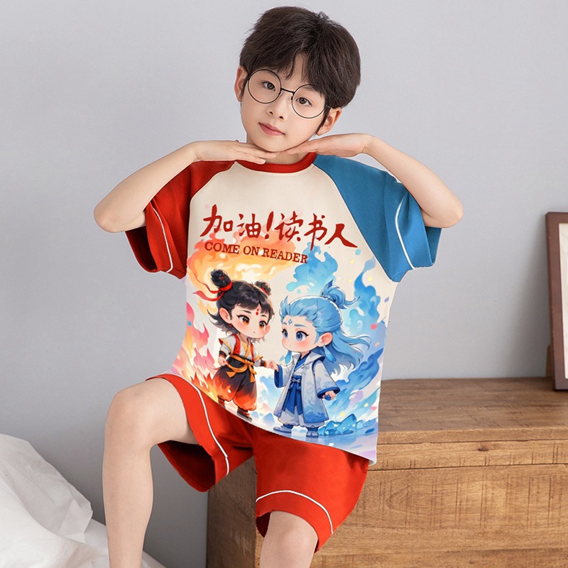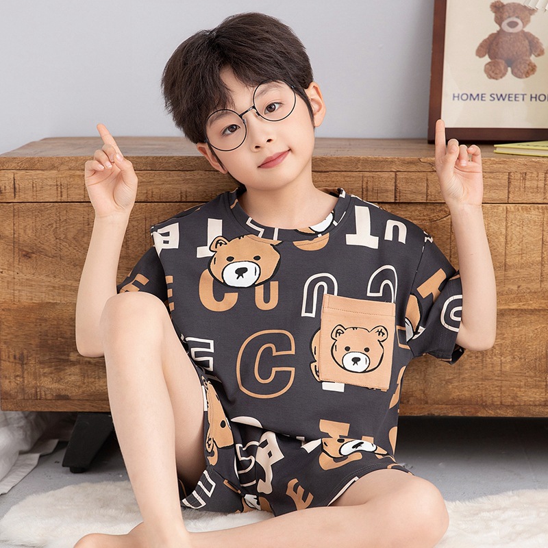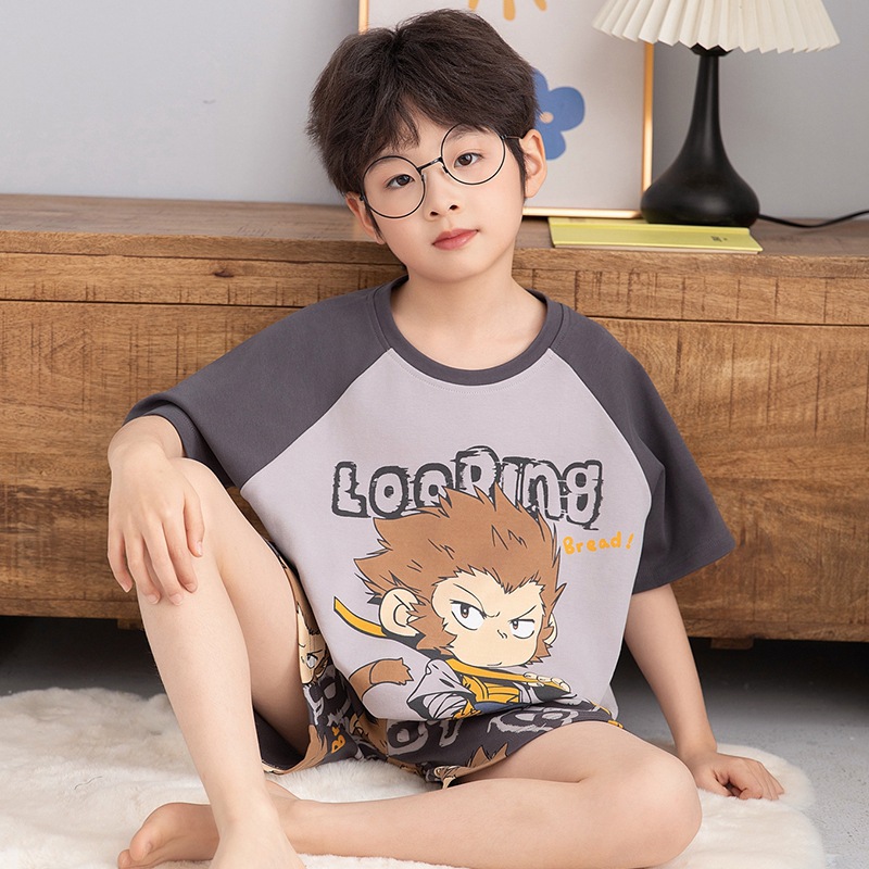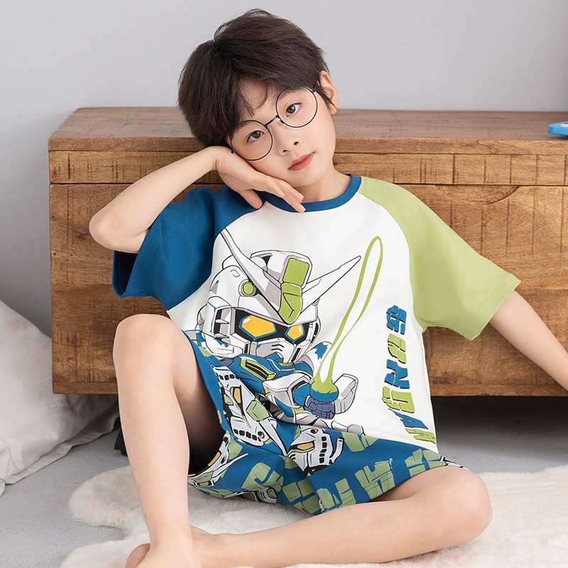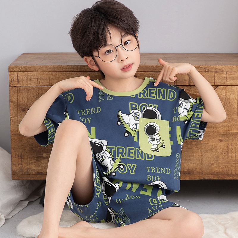소년 잠옷 반팔 반바지 순면 여름 얇은 새 만화 어린이 아기 십대 홈 옷