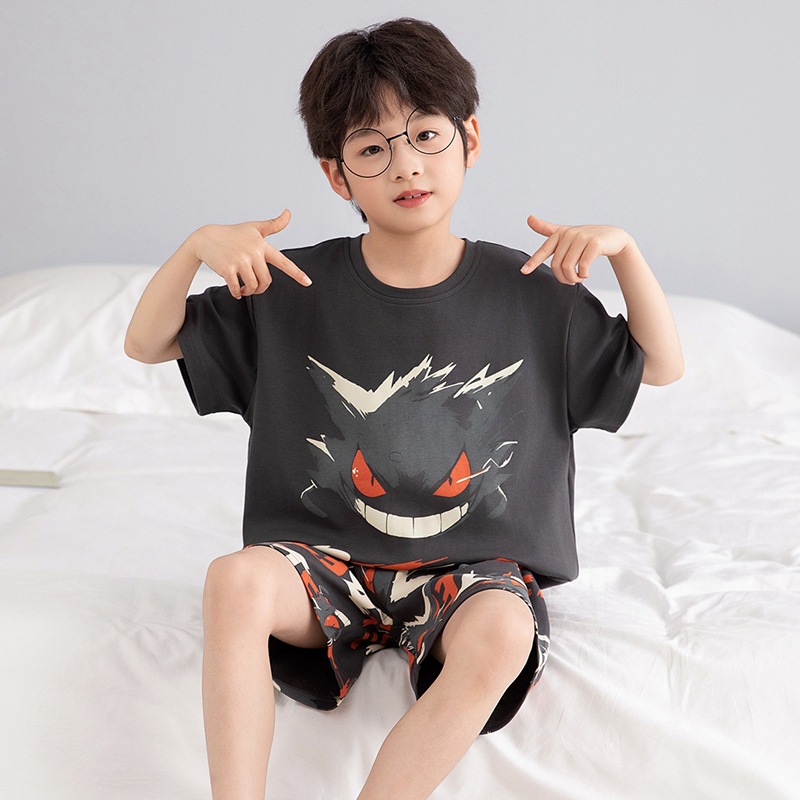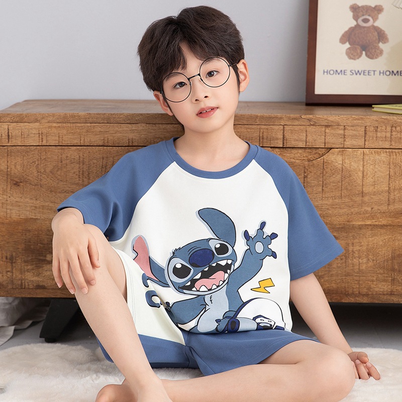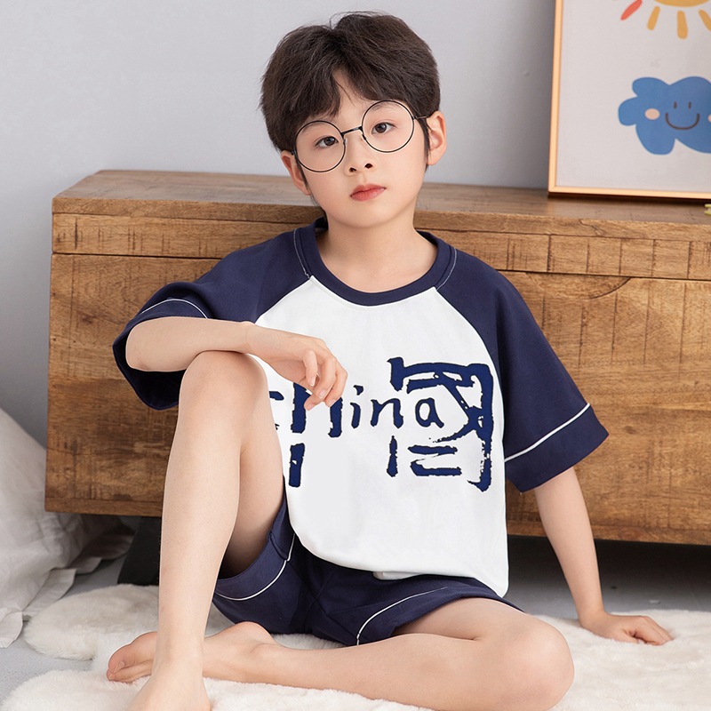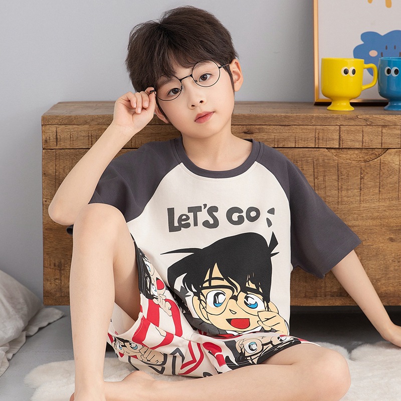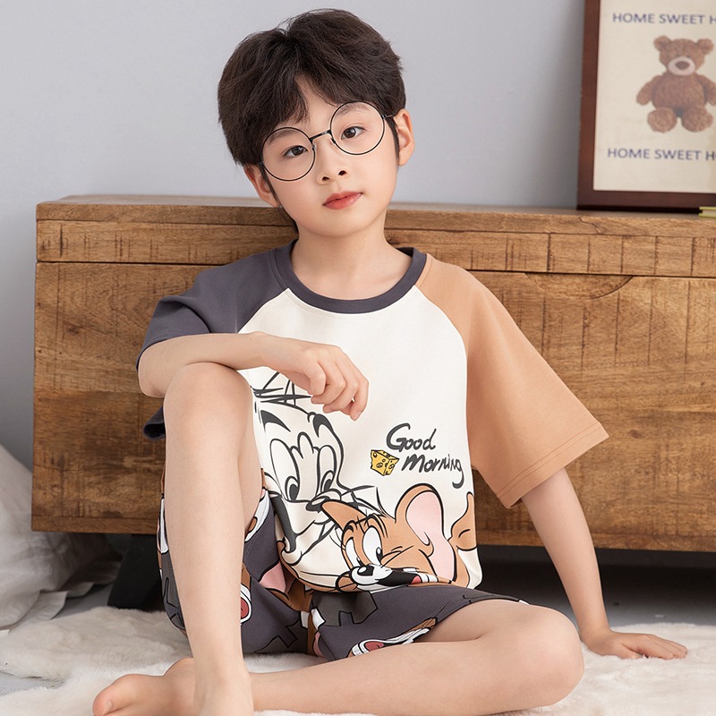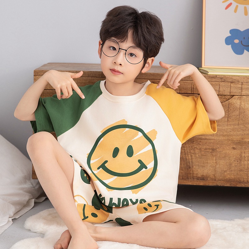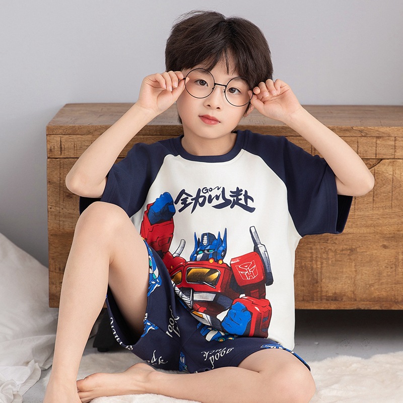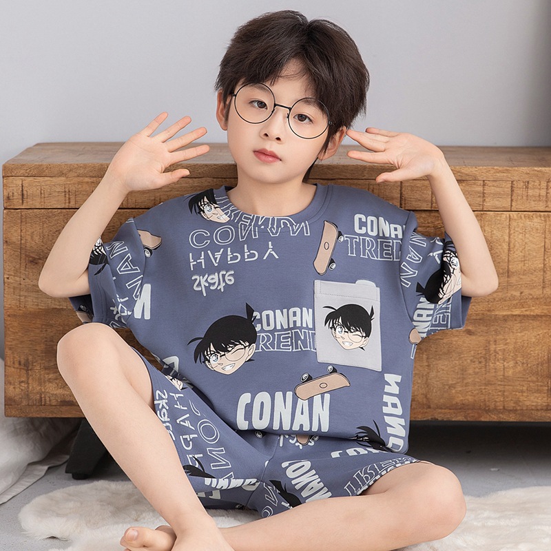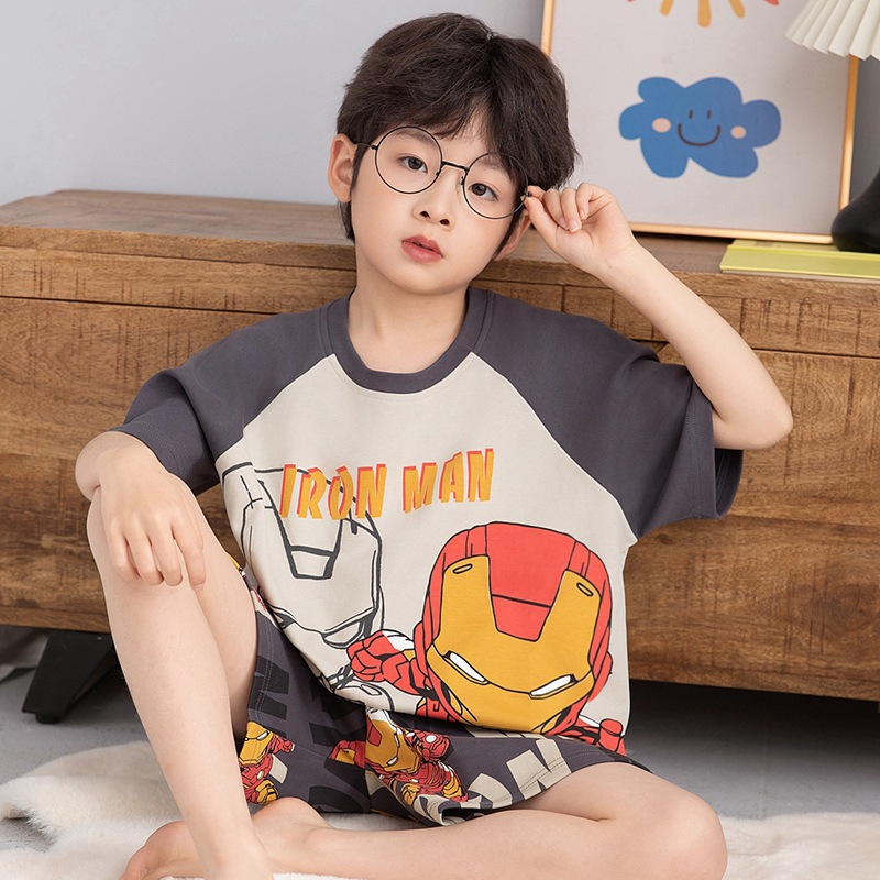 소년 잠옷 반팔 반바지 순면 여름 얇은 새 만화 어린이 아기 십대 홈 옷