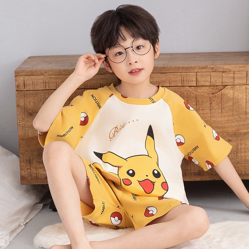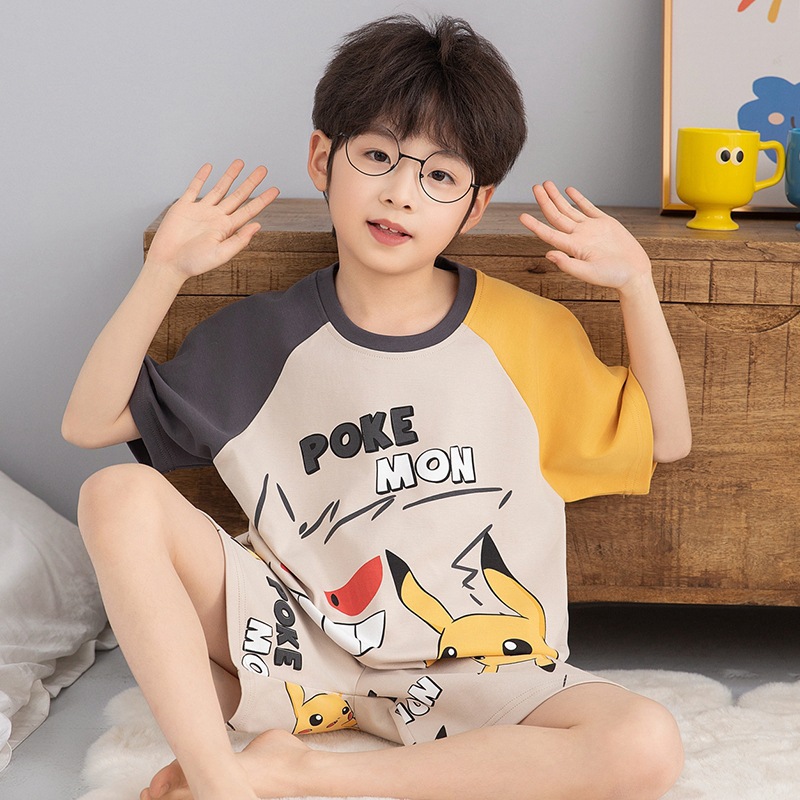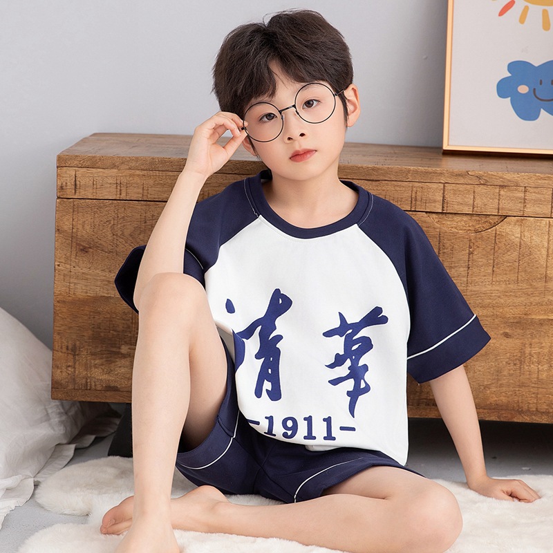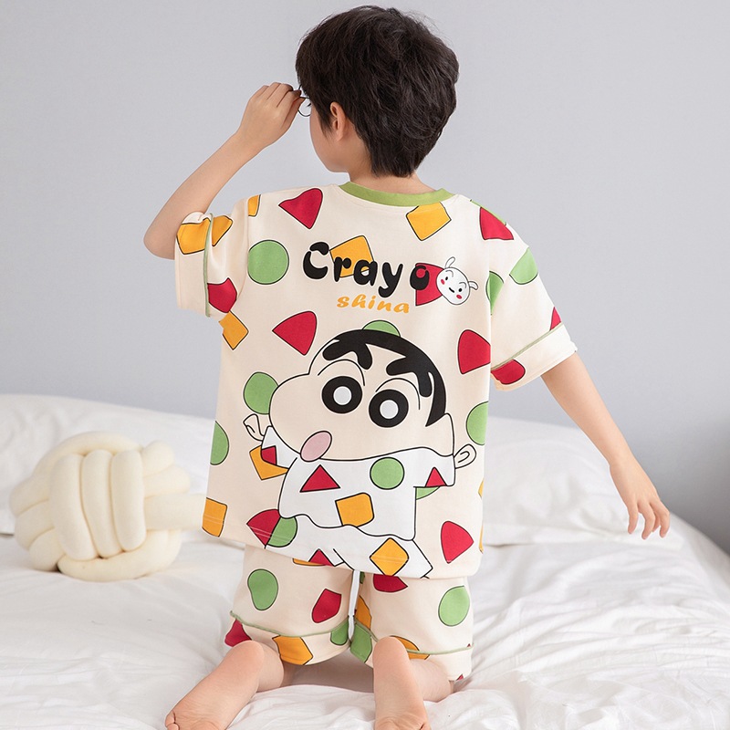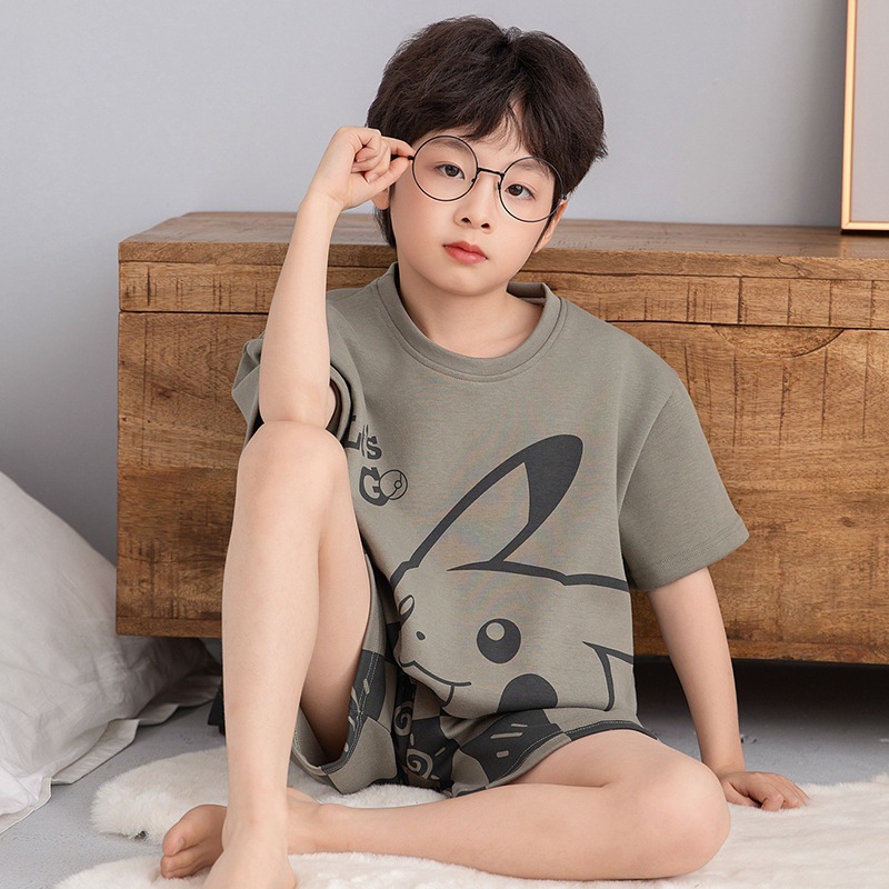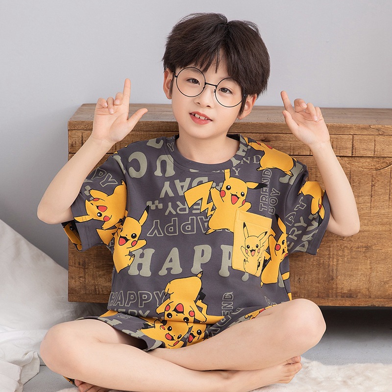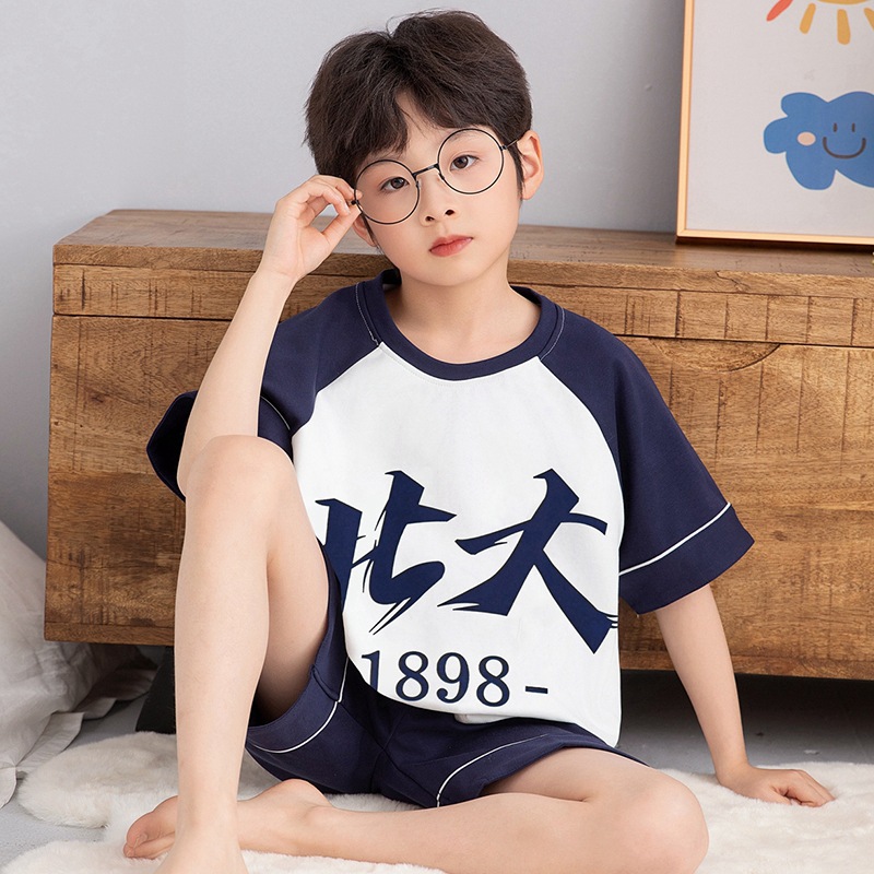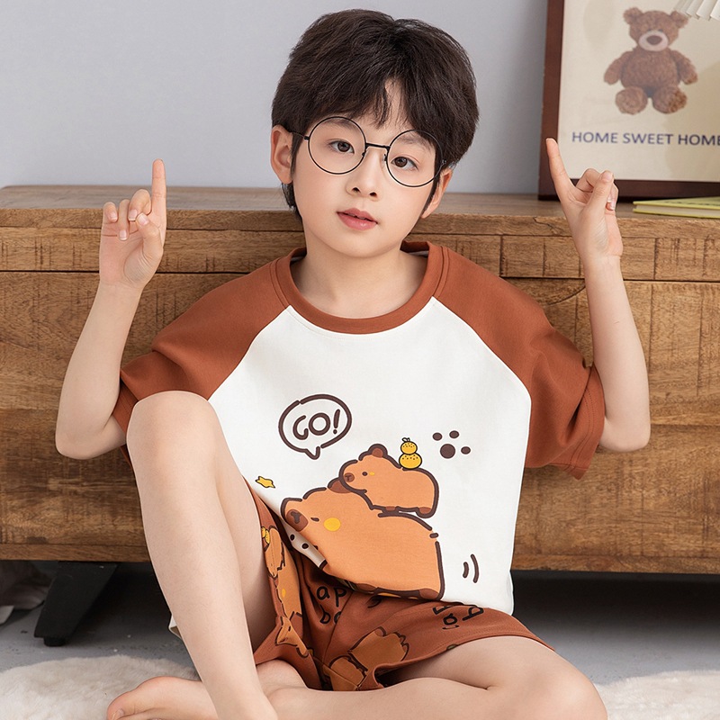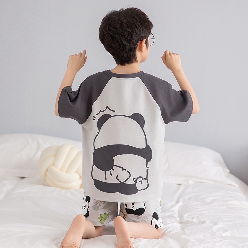 소년 잠옷 반팔 반바지 순면 여름 얇은 새 만화 어린이 아기 십대 홈 옷