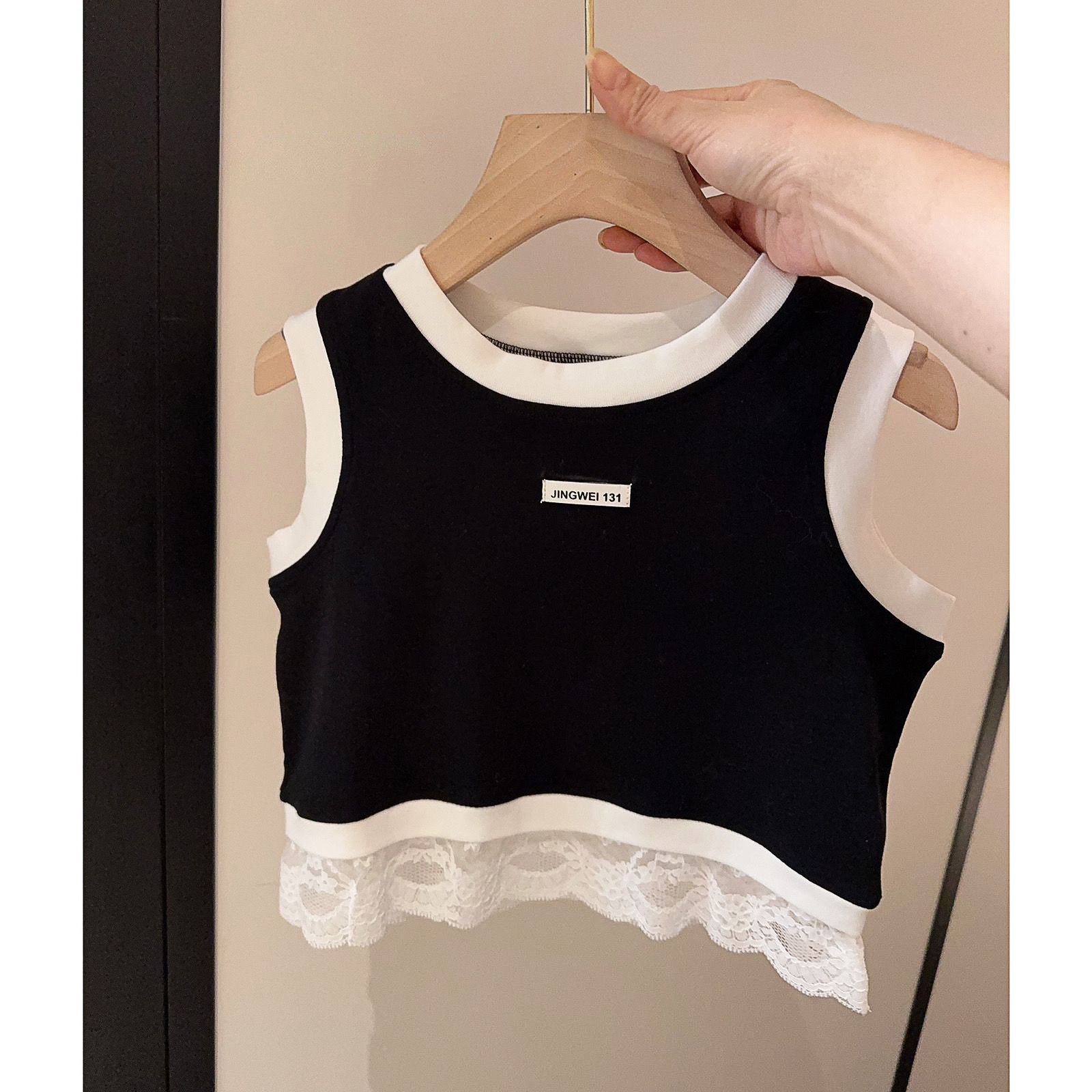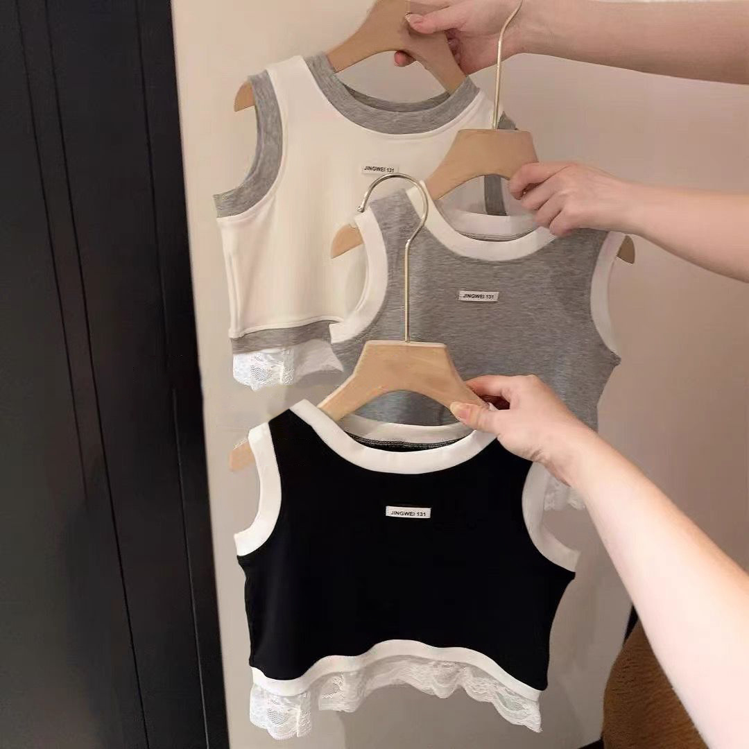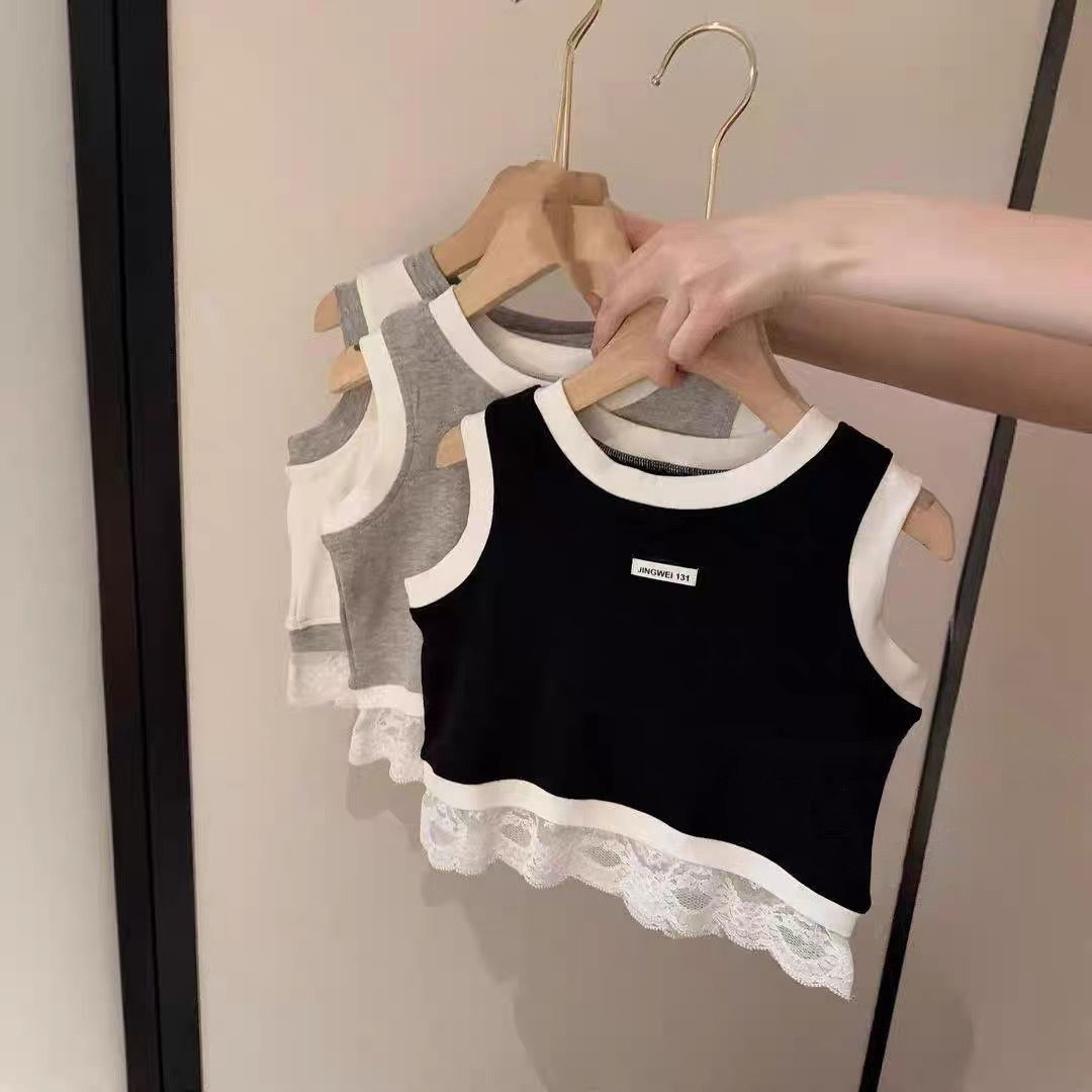 한국 아동복 소녀 레이스 조끼 여름 유행 바느질 캐주얼 어린이 민소매 서양식 스포츠 스타일 타이드 티셔츠스토어 가기