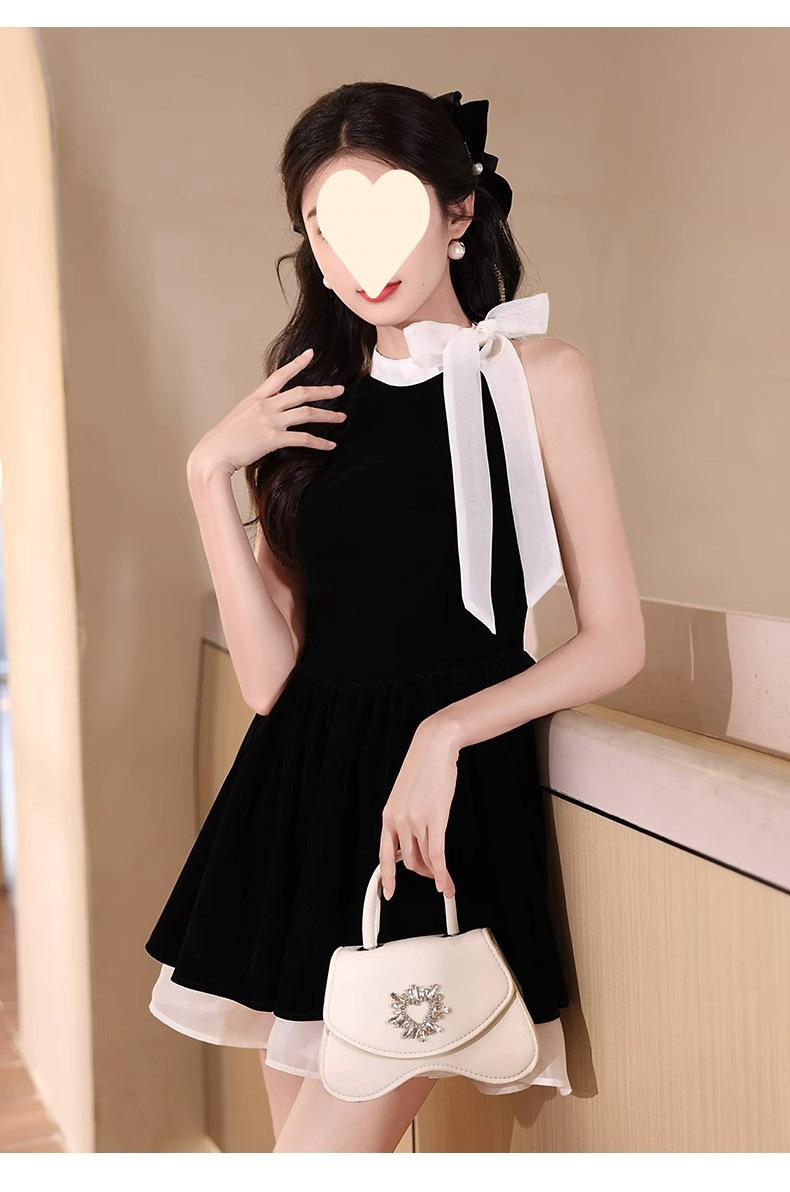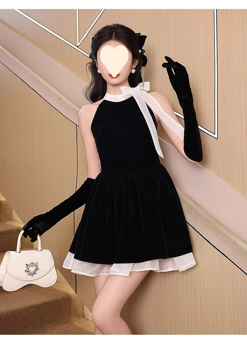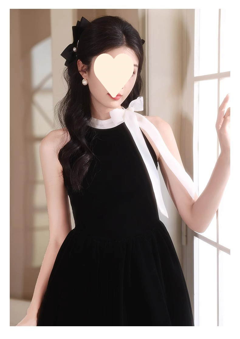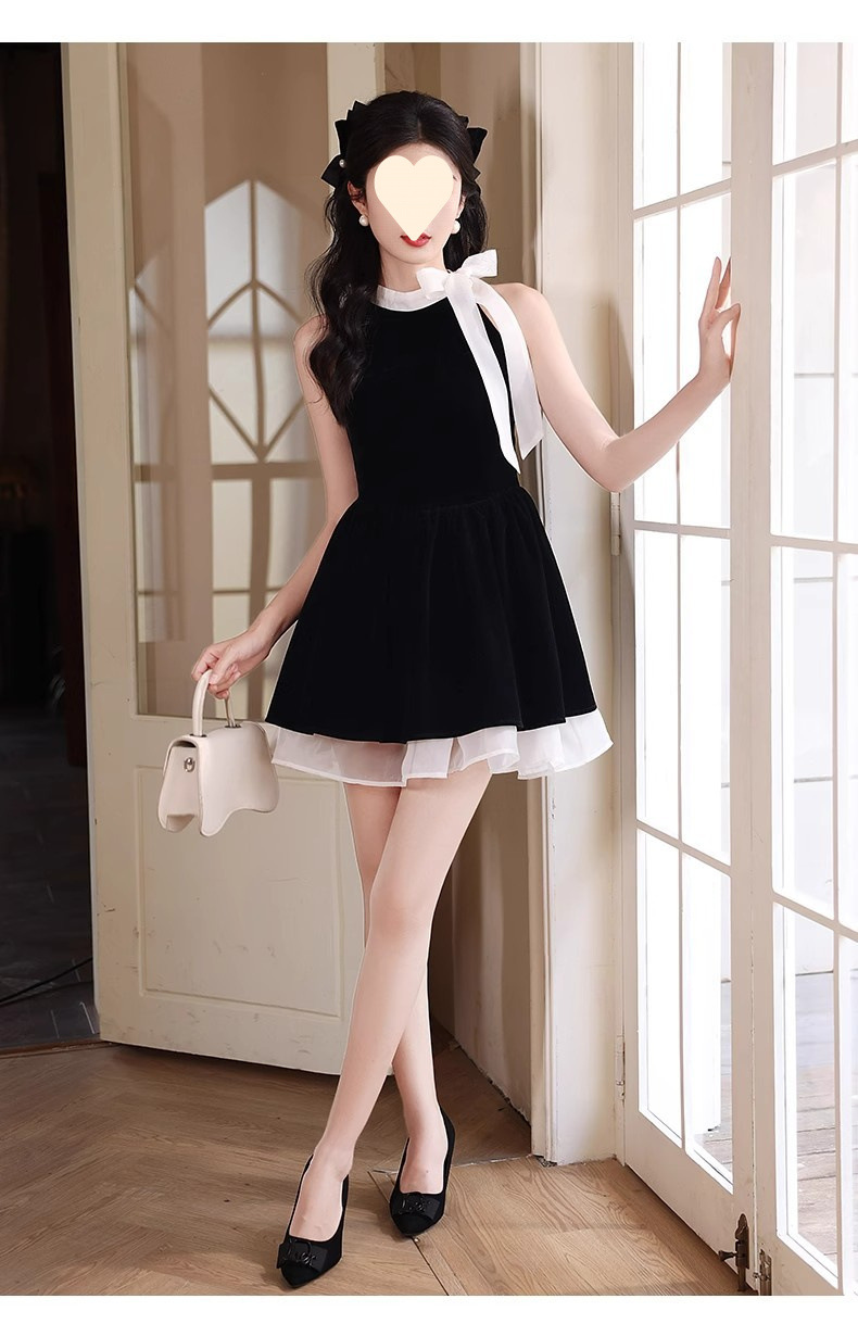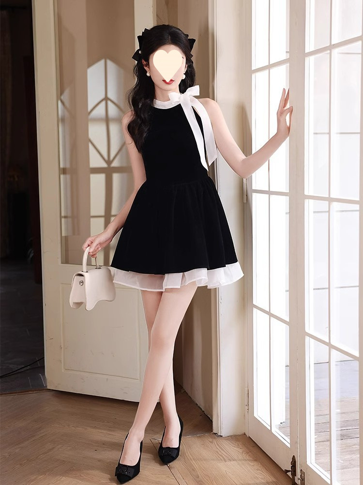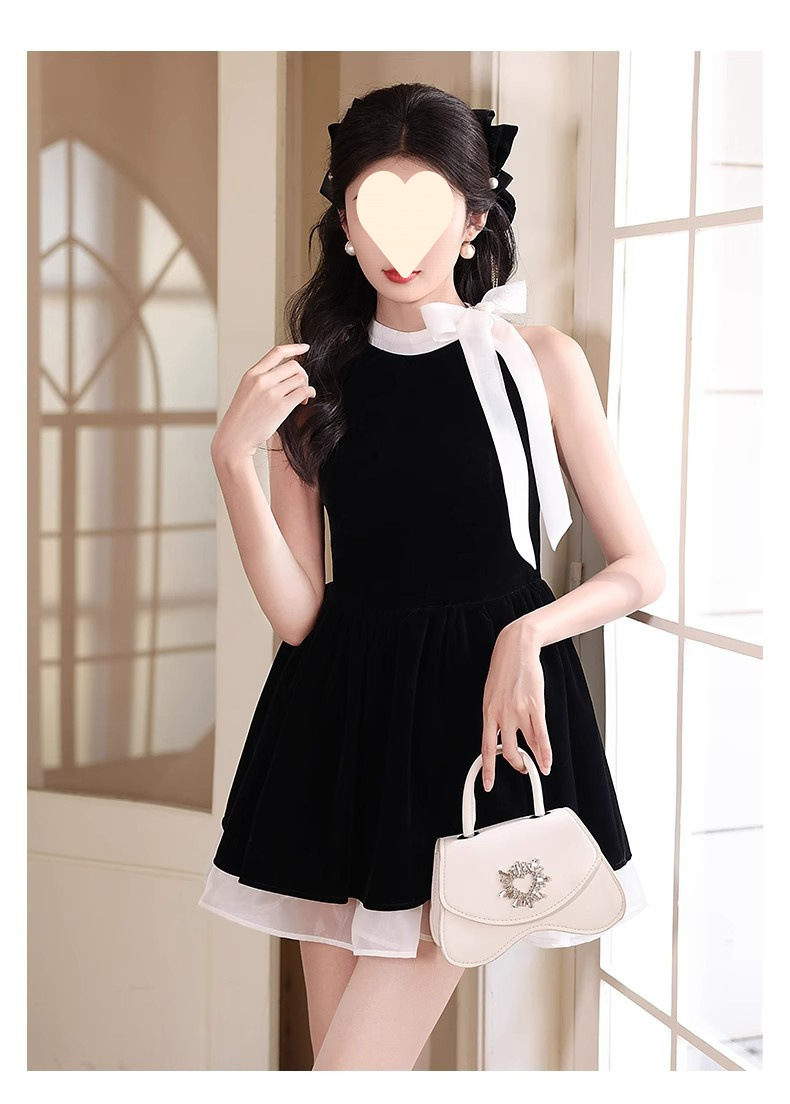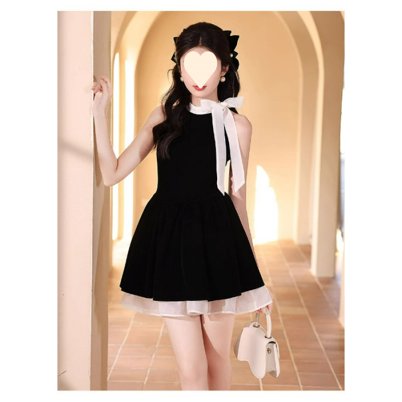 순수한 욕망 민소매 목 교수형 원피스 여성 여름 프랑스 우아한 하이 엔드 쇼트 스커트와 활 허리