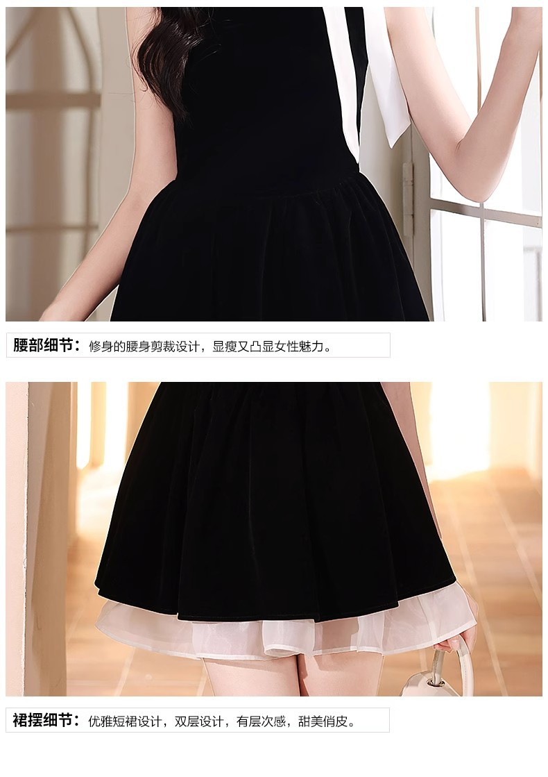 순수한 욕망 민소매 목 교수형 원피스 여성 여름 프랑스 우아한 하이 엔드 쇼트 스커트와 활 허리스토어 가기