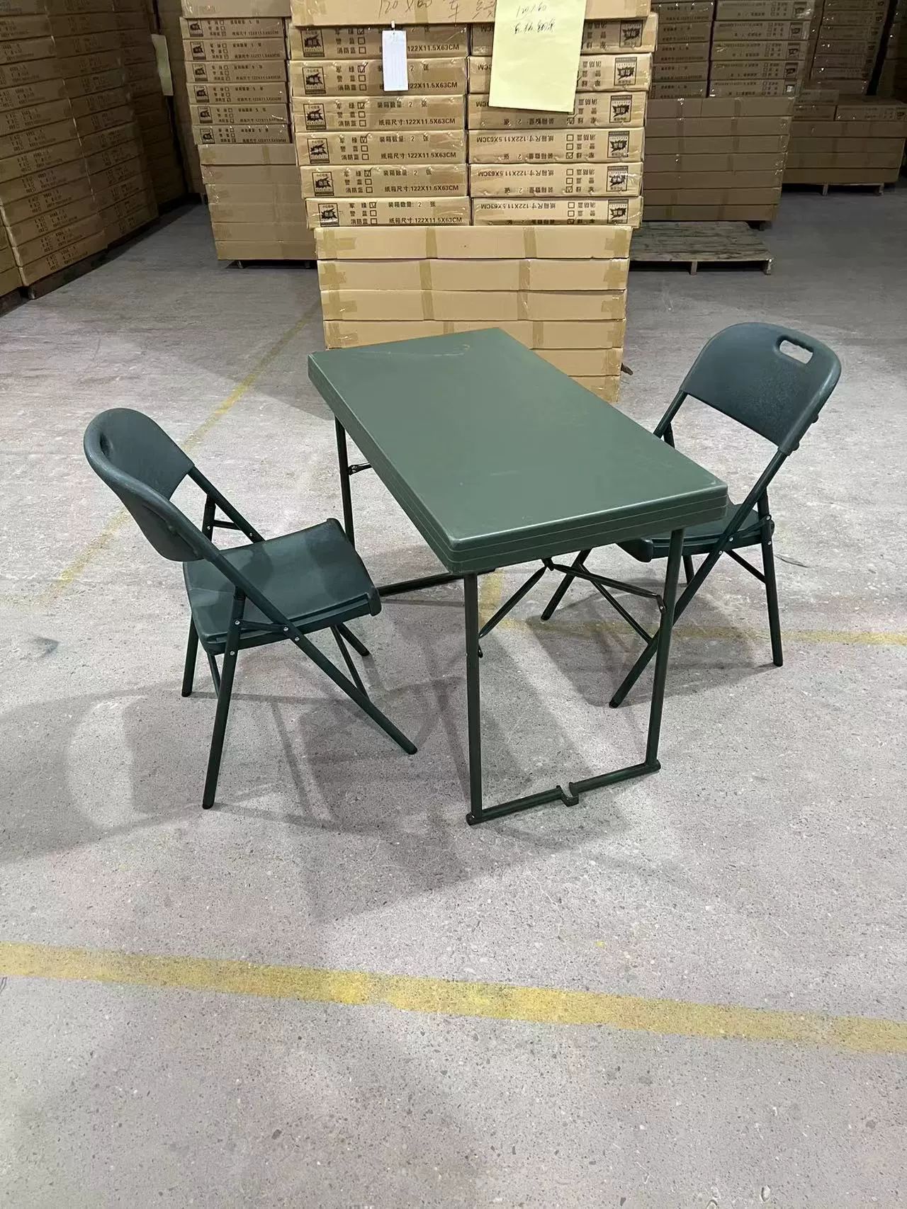 • 테이블 1개와 의자 2개(밀리터리 그린 블로우 성형 의자 + 싱글 테이블)