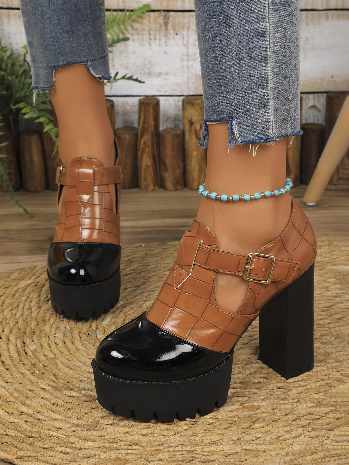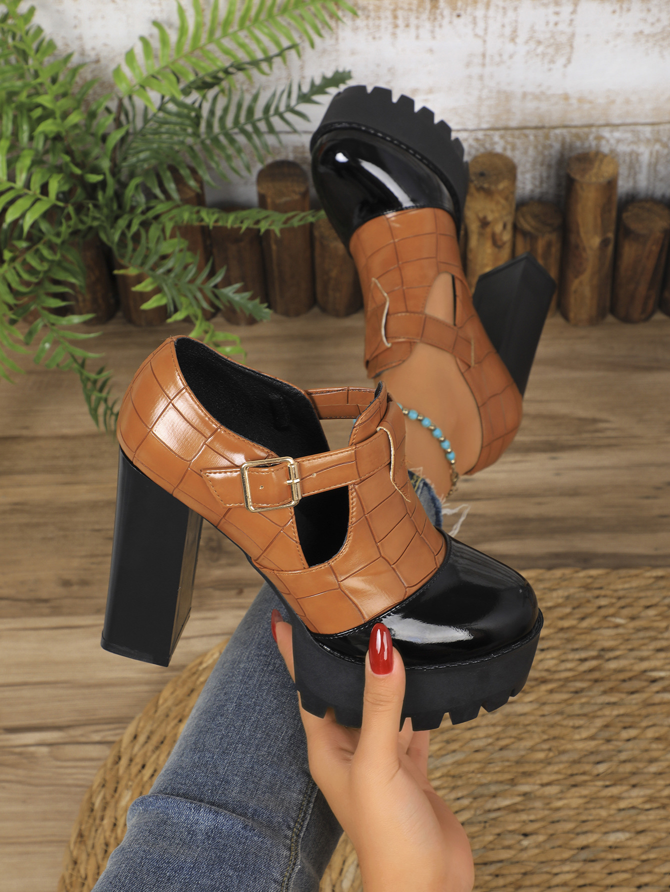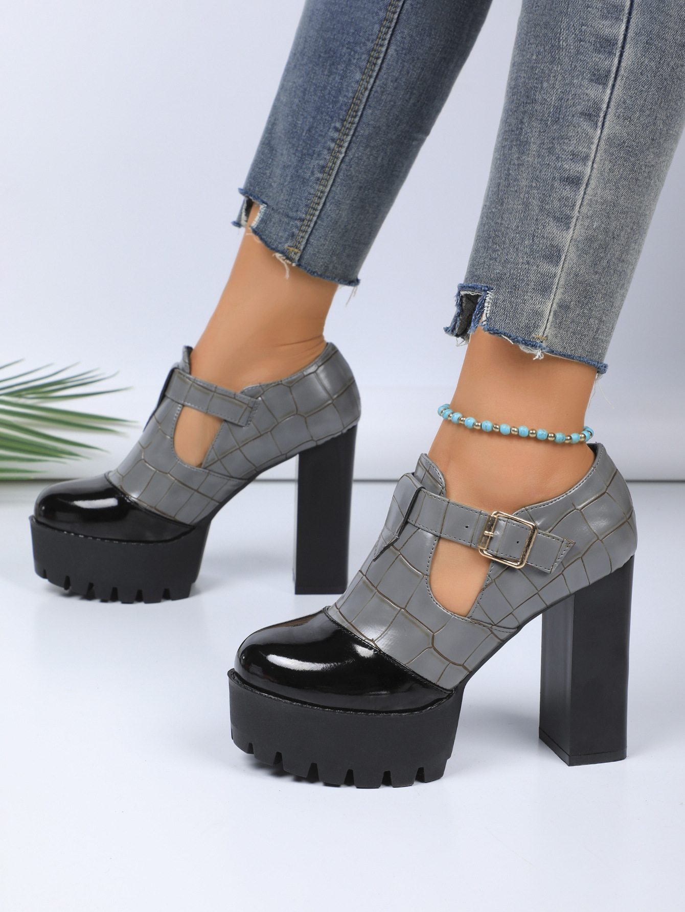 국경 간 유럽과 미국의 두꺼운 발 뒤꿈치 기질 깊은 입 신발 2025 봄 새로운 플러스 사이즈 컬러 매칭 전문 하이힐 신발 여성스토어 가기