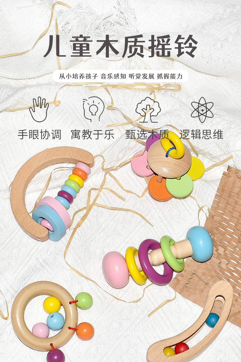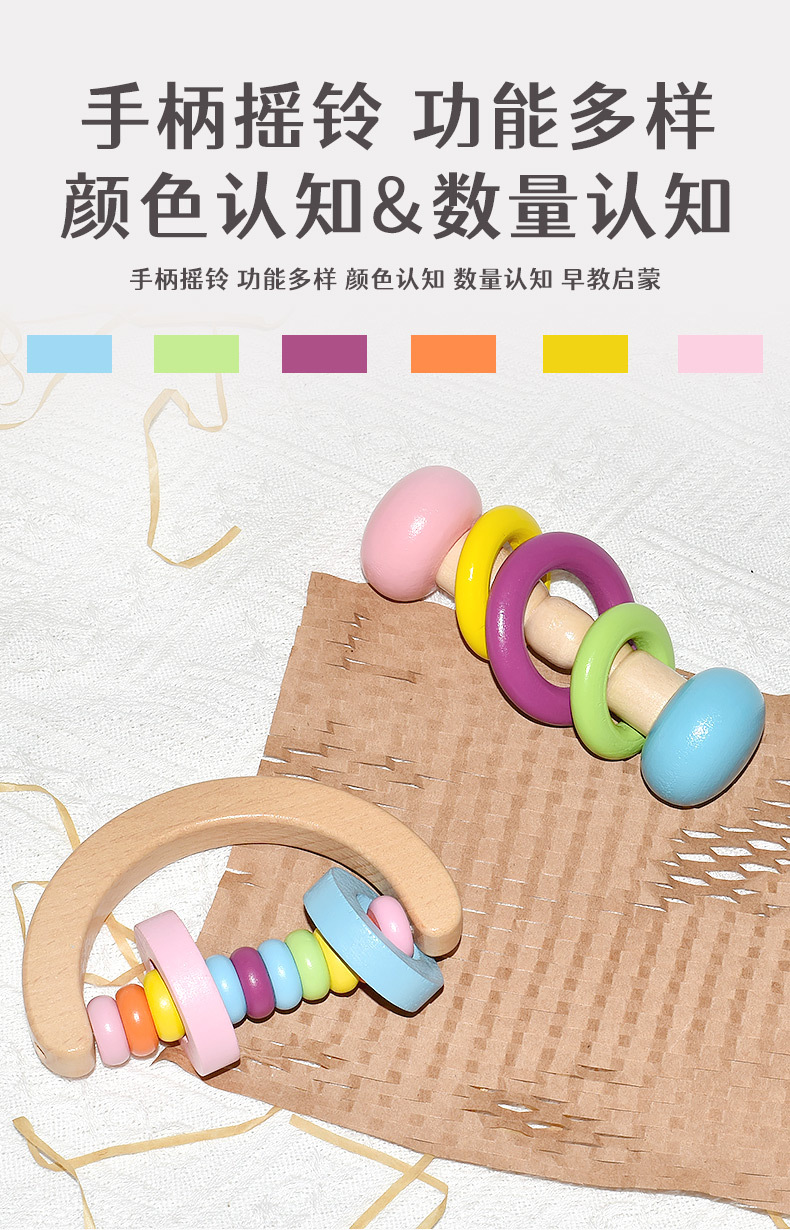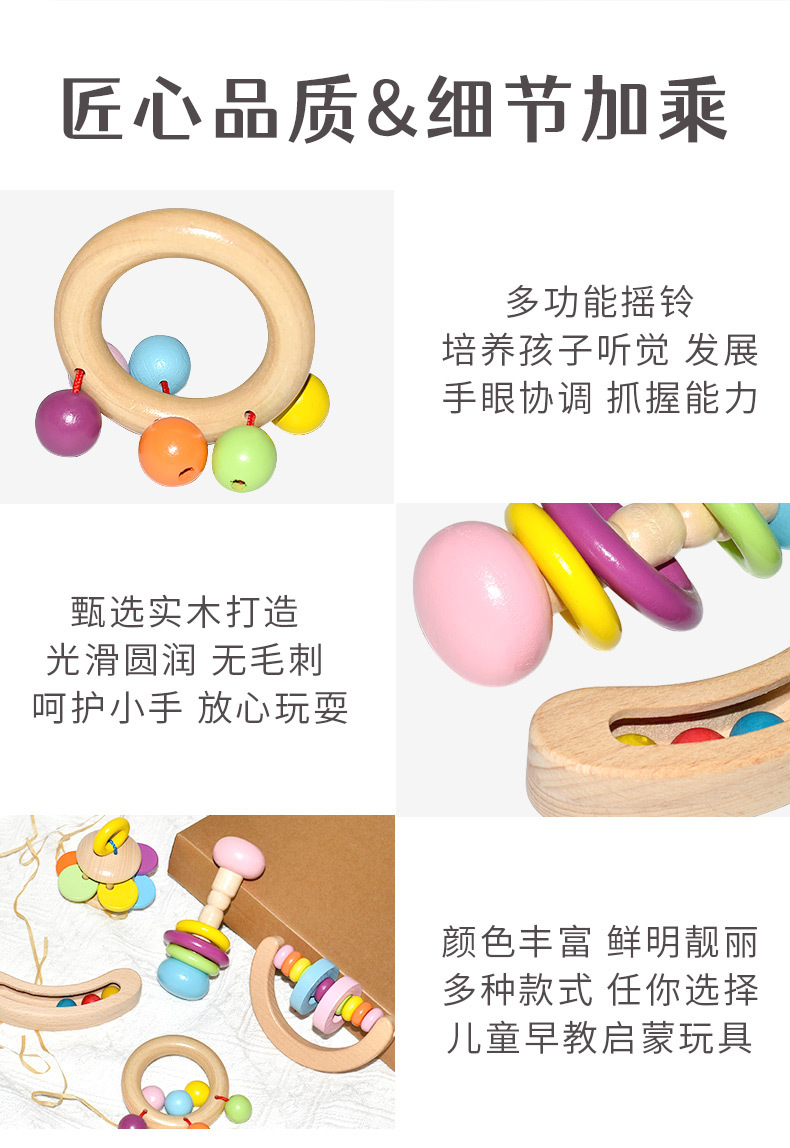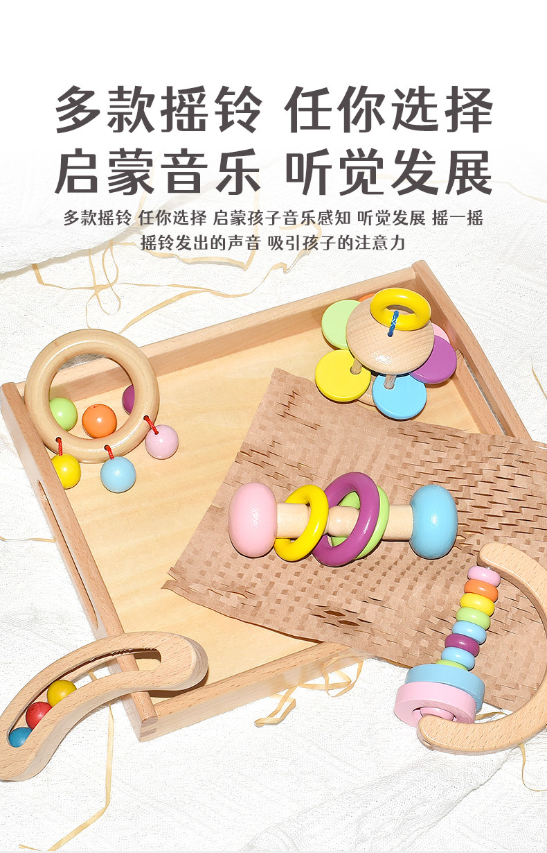 Muzhile 어린이 퍼즐 몬테소리 악기 가르치는 장난감 장난감 나무 핸드벨 진정 잡기를 물릴 수 있습니다
