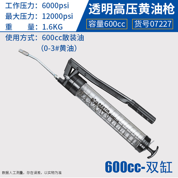 • 07227 이중 실린더 투명 고압 그리스 건 600CC