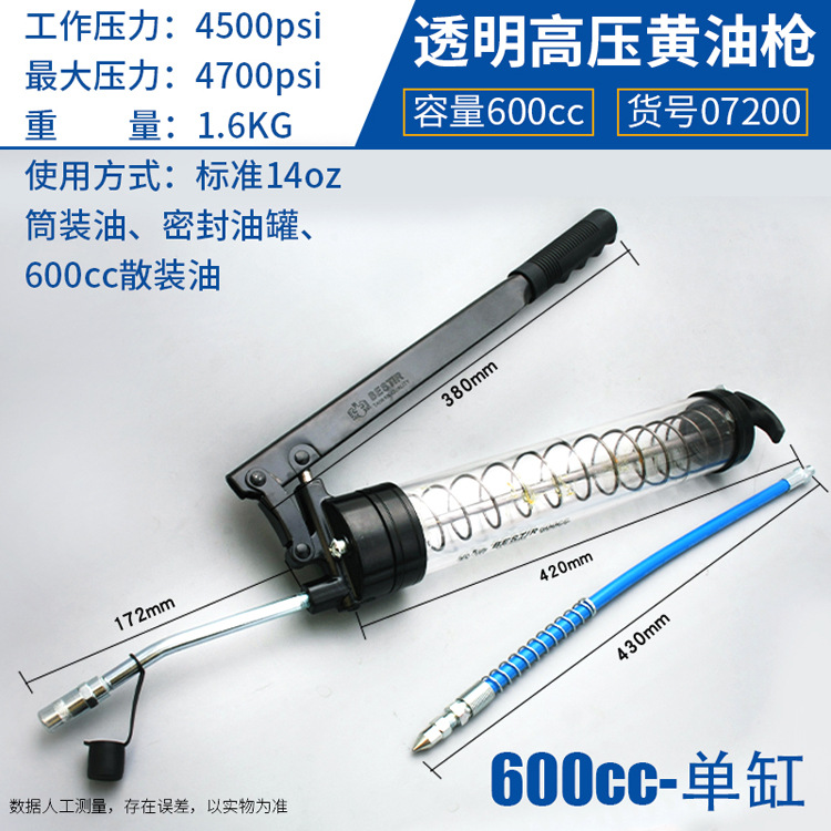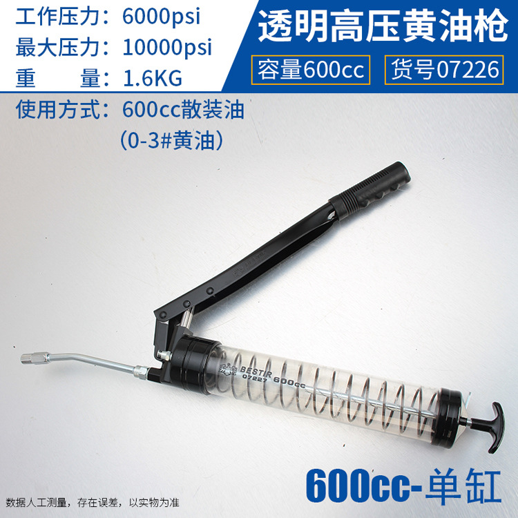 • 07226 단일 실린더 투명 고압 그리스 건 600CC