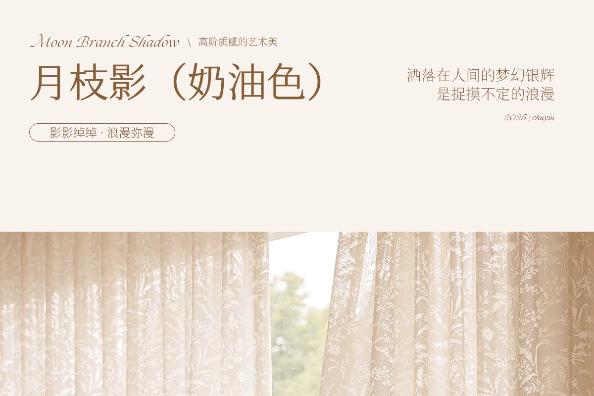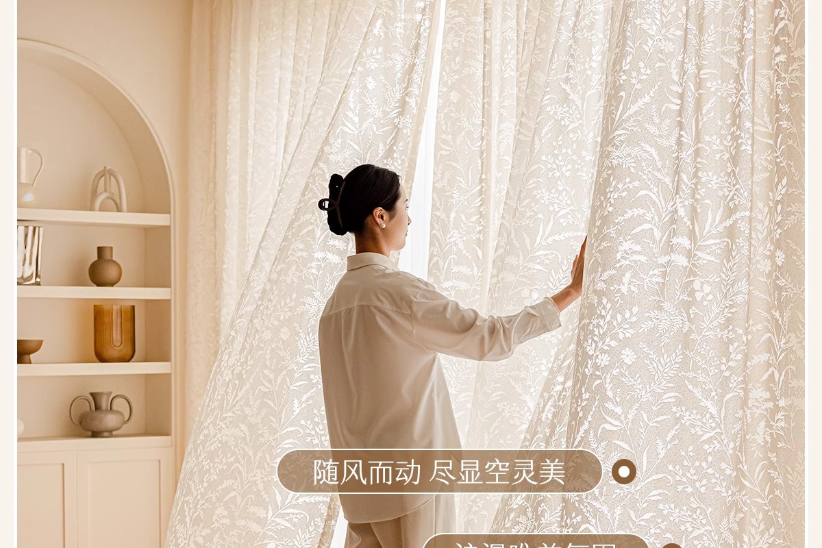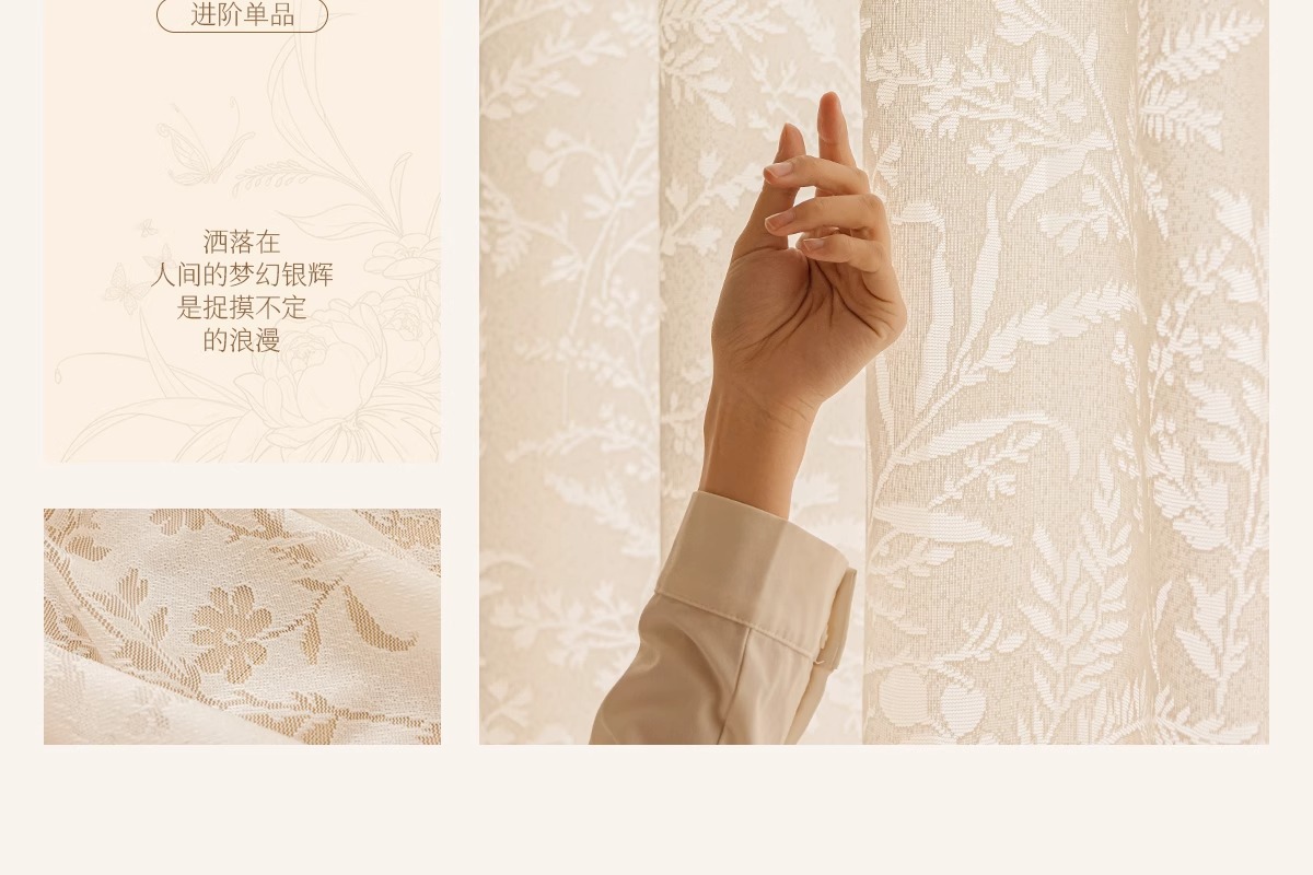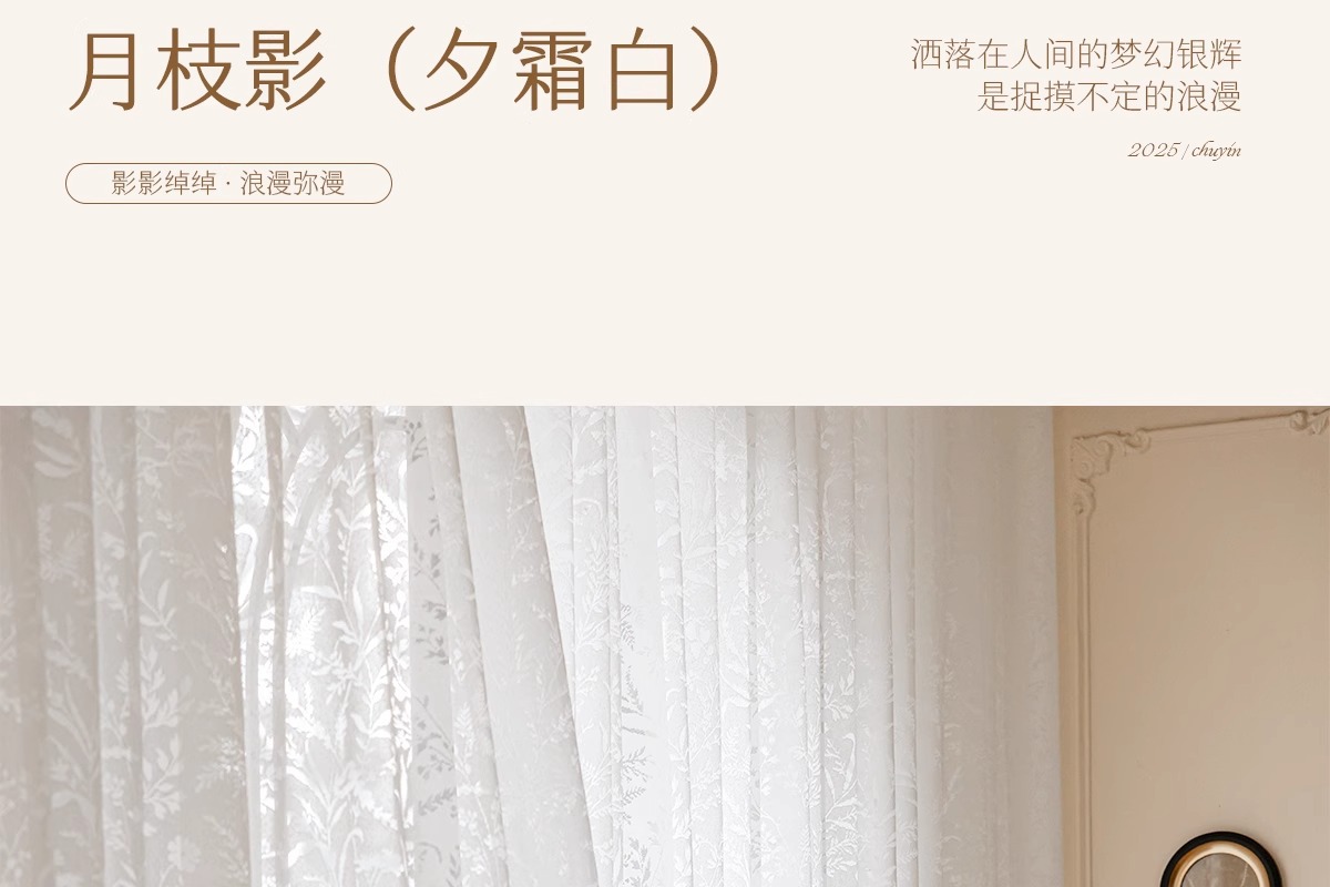 달 분기 그림자 커튼 프랑스 속이 빈 2025 새로운 발코니 거실 창 화면 투명 불투명 크림 원사스토어 가기