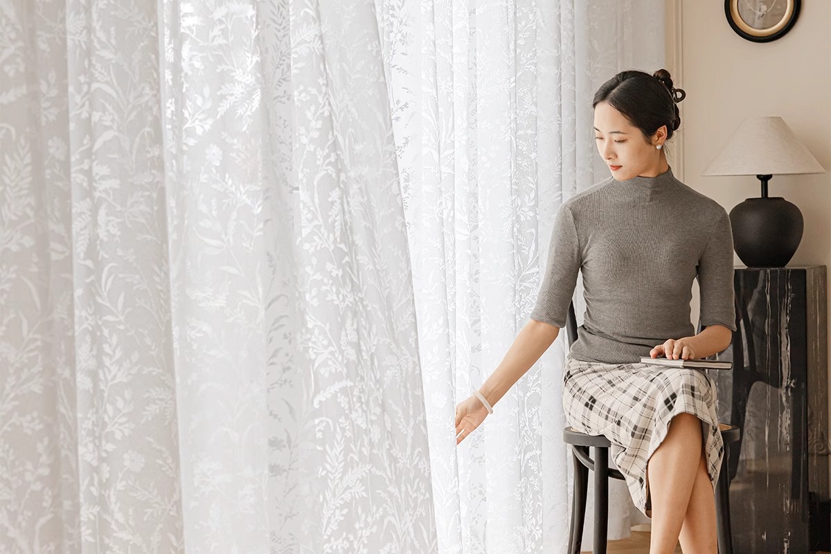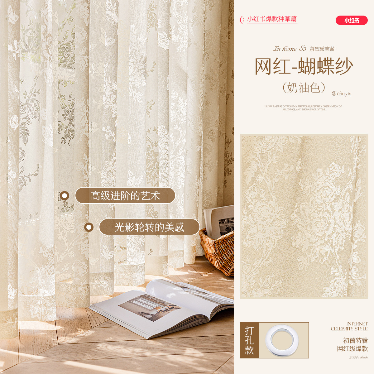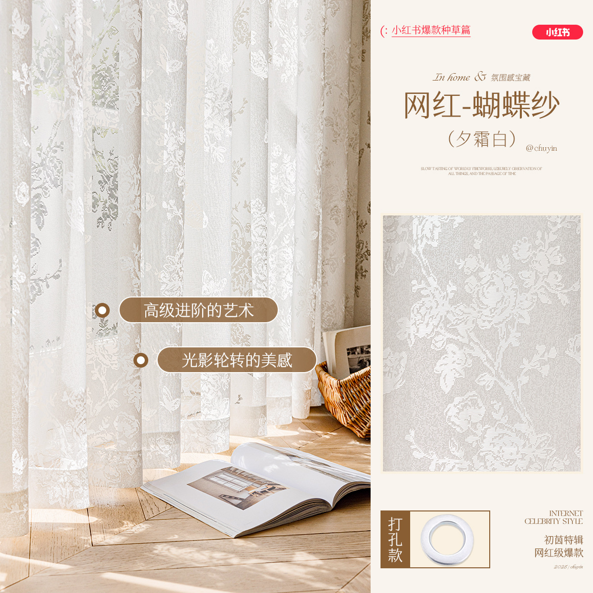 달 분기 그림자 커튼 프랑스 속이 빈 2025 새로운 발코니 거실 창 화면 투명 불투명 크림 원사스토어 가기