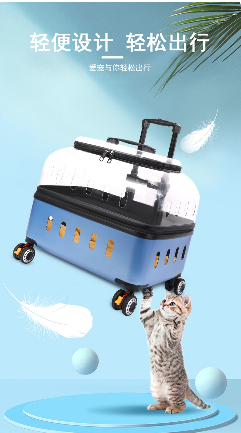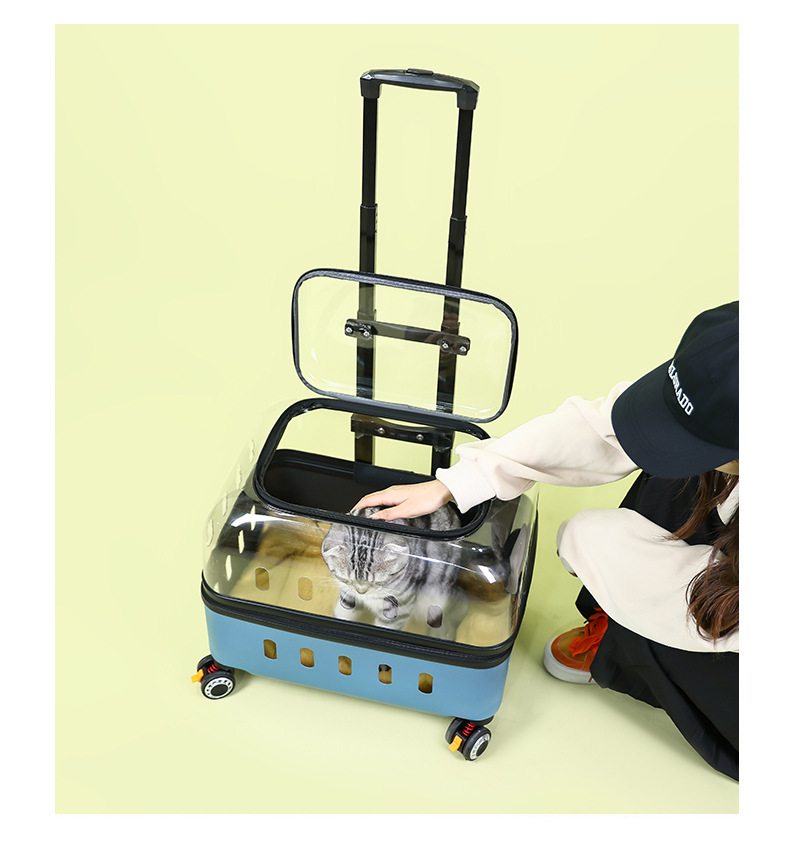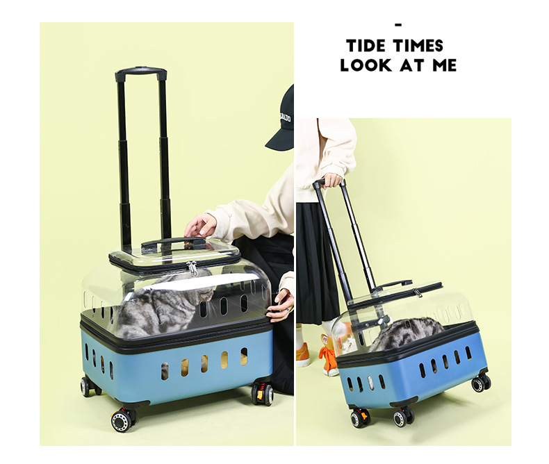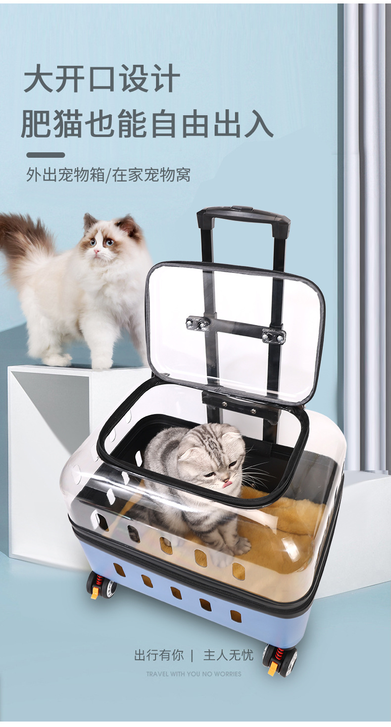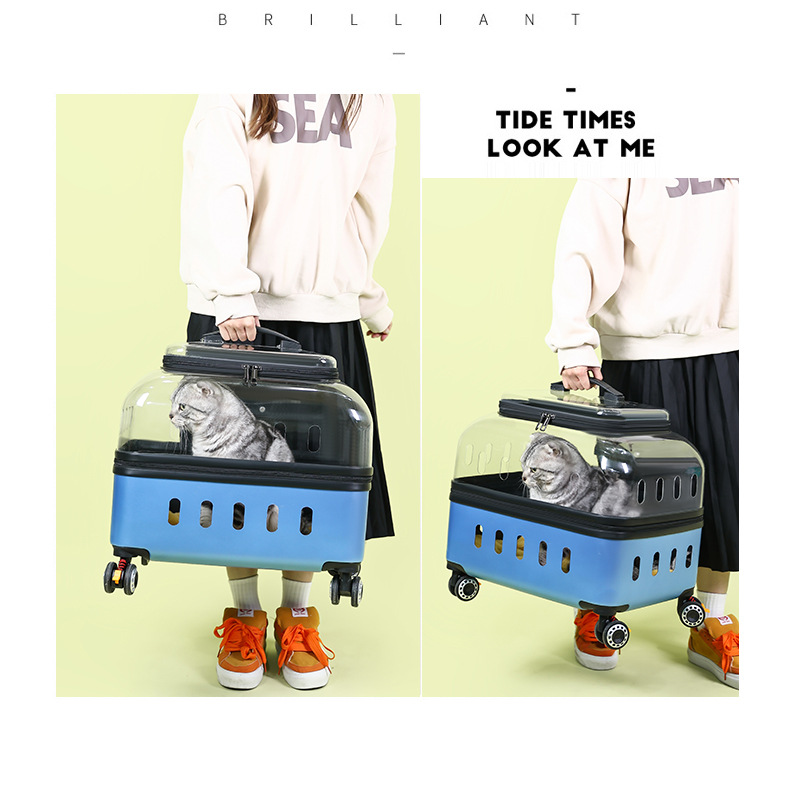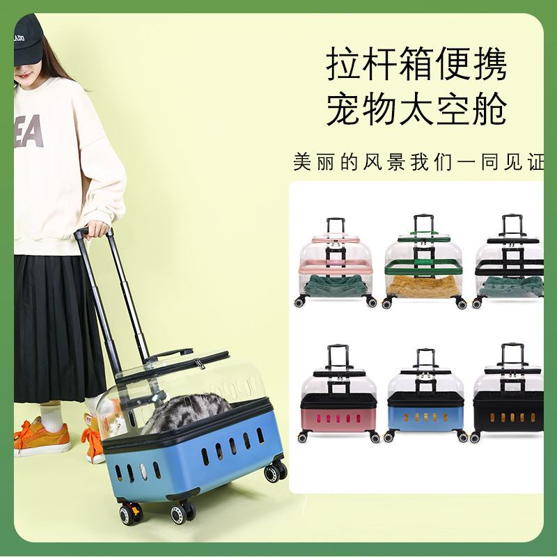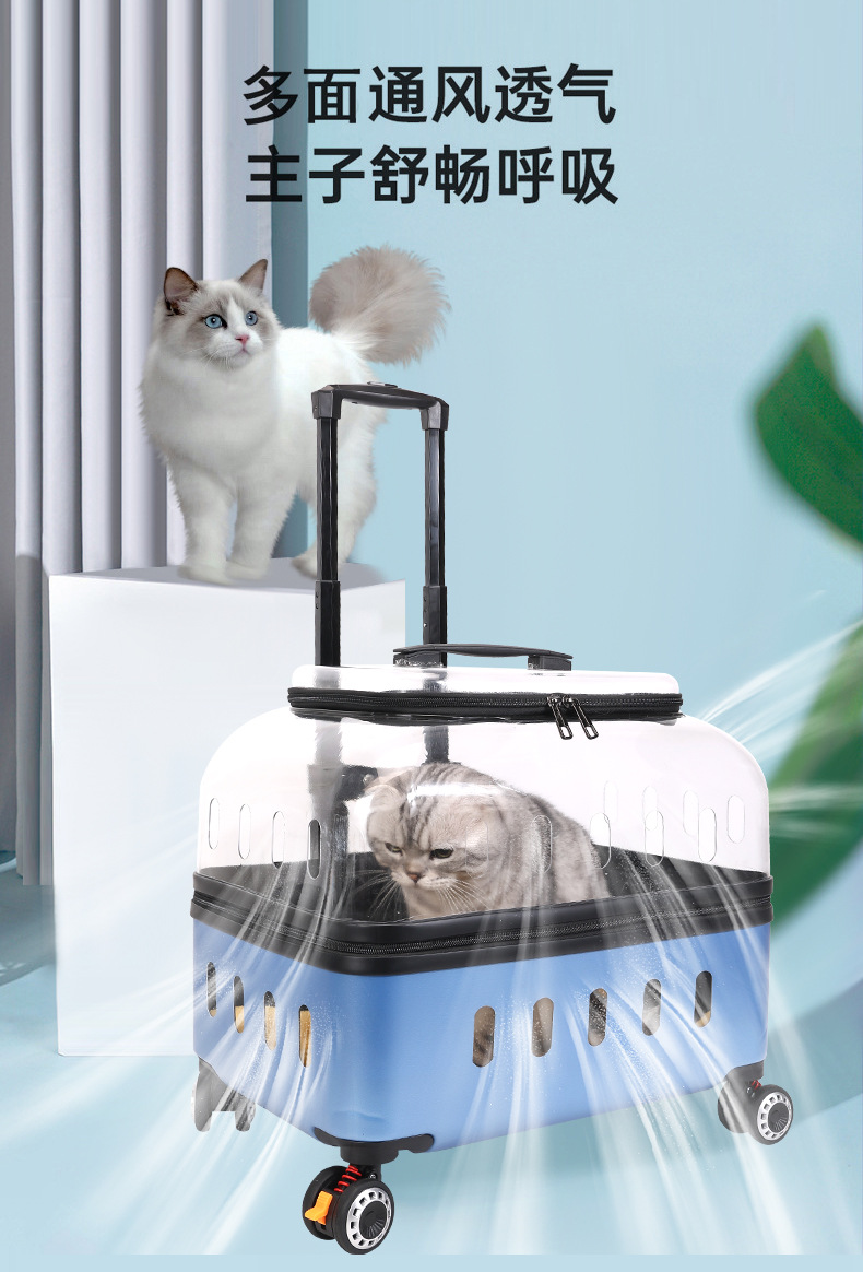 ◉ 국경을 넘는 고양이 트롤리 박스, 외출용 고양이 가방, 개 투명 애완동물 가방, 새로운 휴대용 체크인 항공 박스 도매