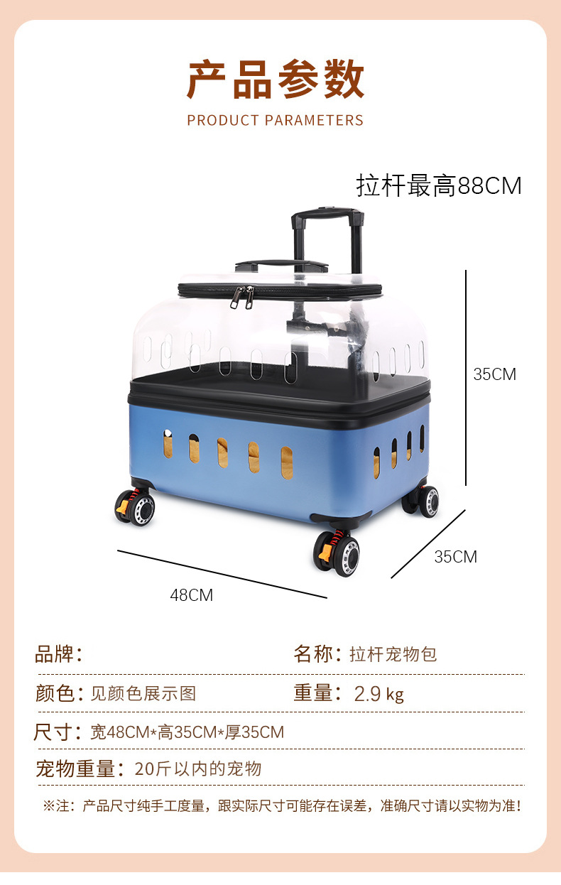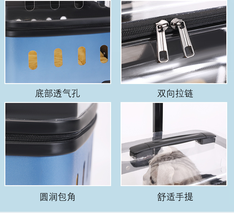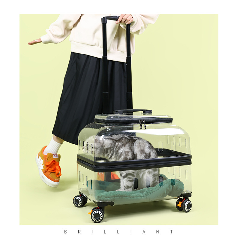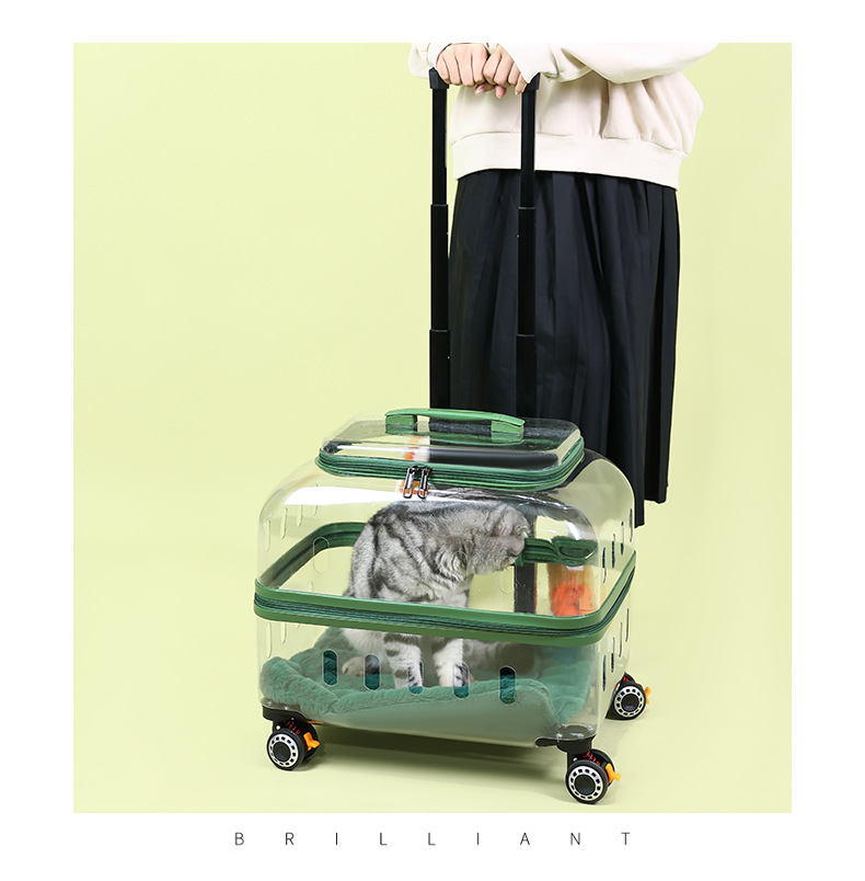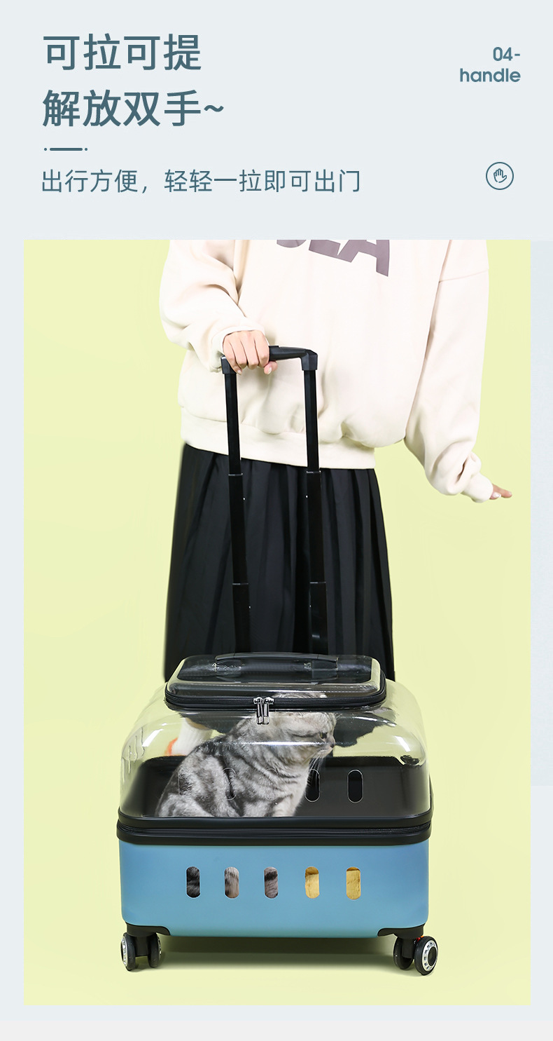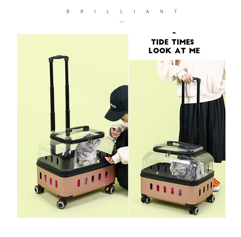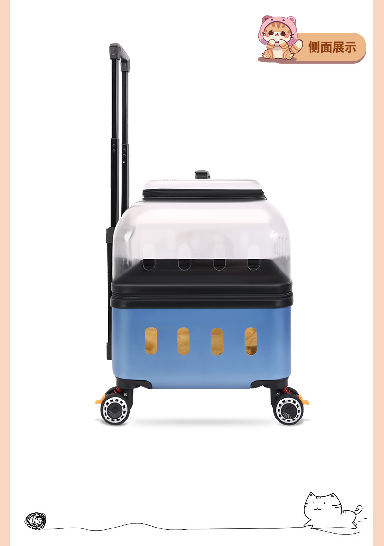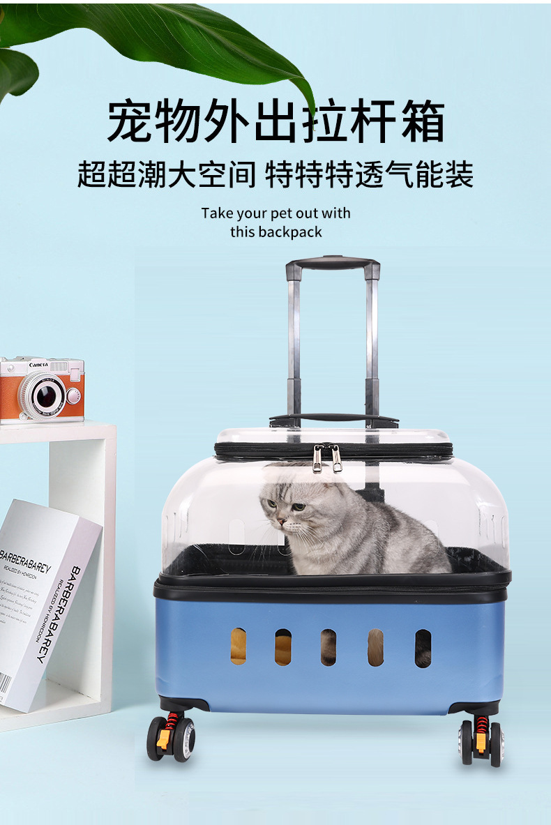 ◉ 국경을 넘는 고양이 트롤리 박스, 외출용 고양이 가방, 개 투명 애완동물 가방, 새로운 휴대용 체크인 항공 박스 도매