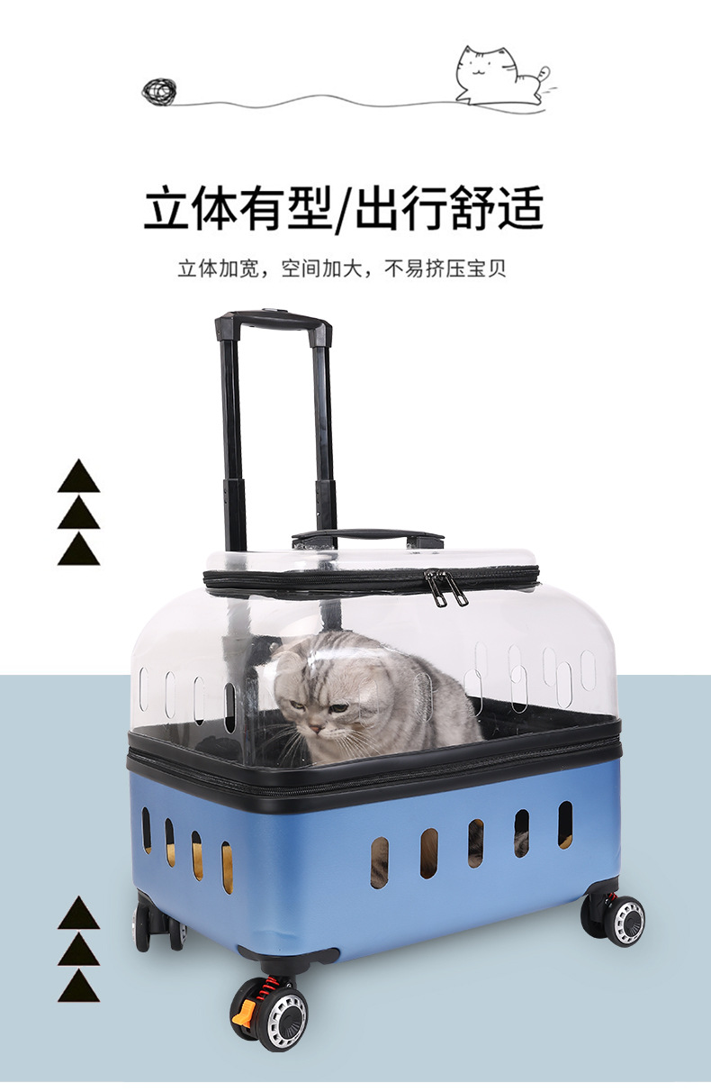 ◉ 국경을 넘는 고양이 트롤리 박스, 외출용 고양이 가방, 개 투명 애완동물 가방, 새로운 휴대용 체크인 항공 박스 도매스토어 가기