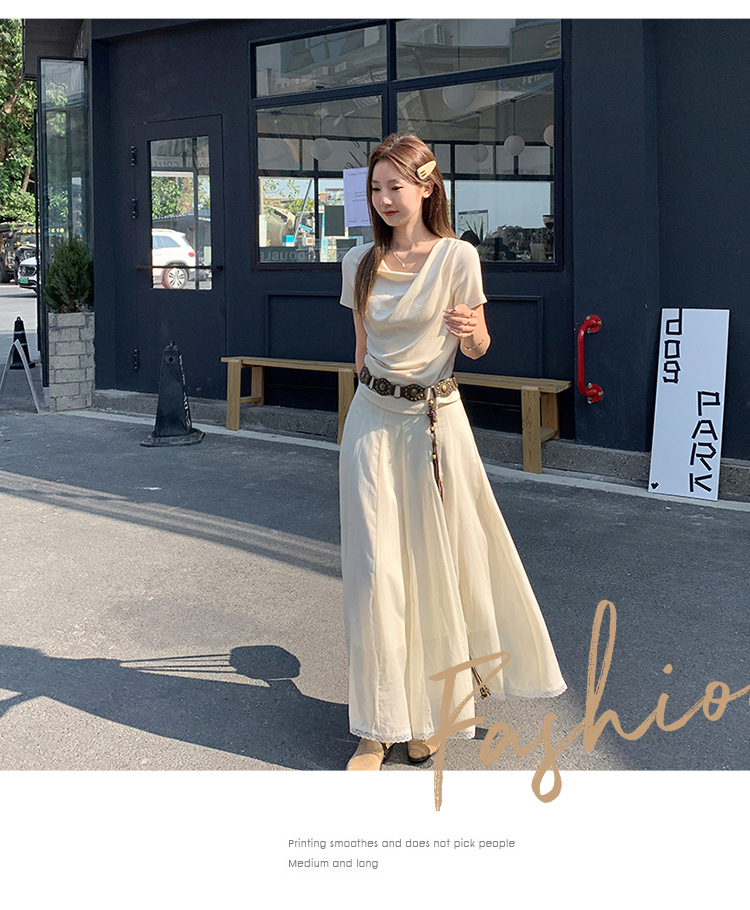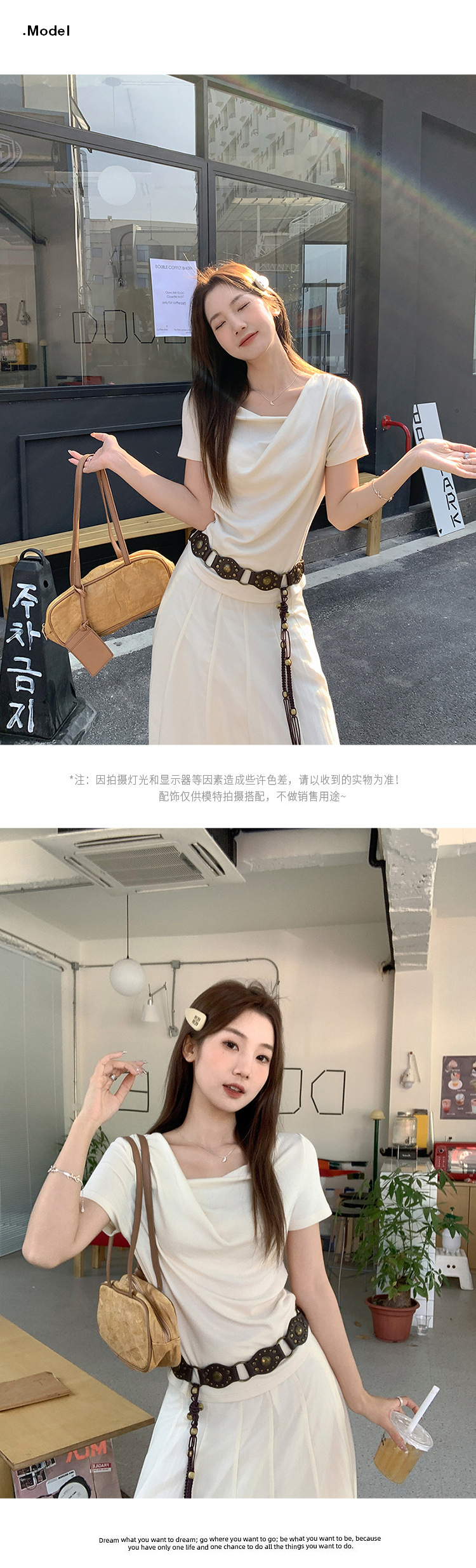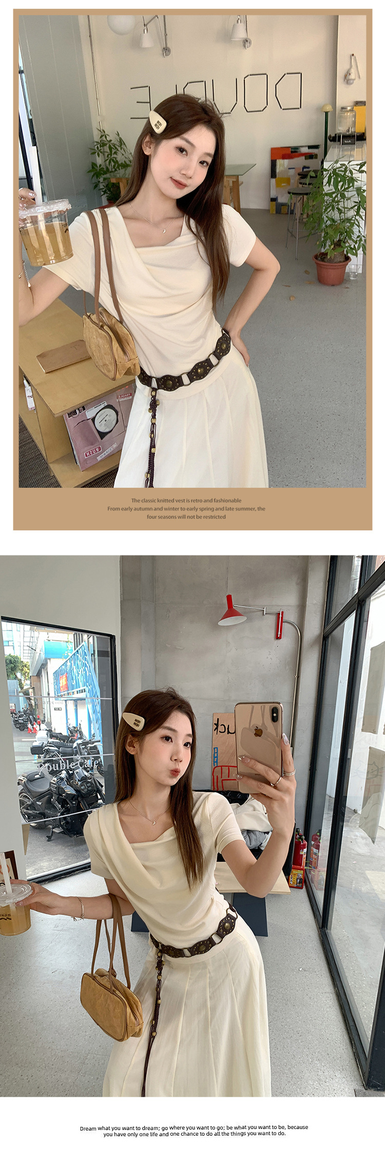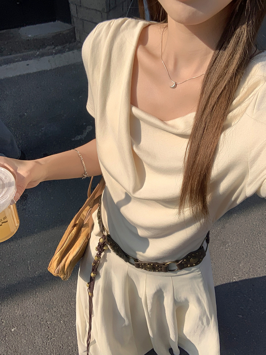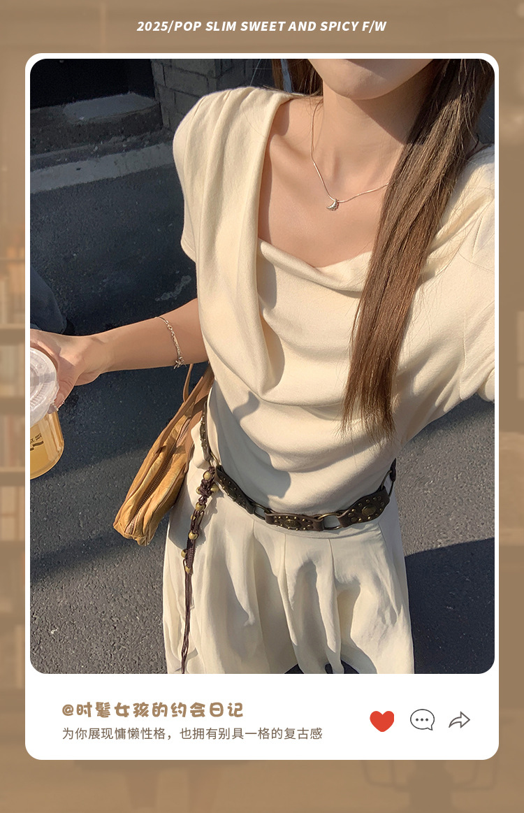 부드러운 주름과 불규칙한 원라인 네크라인이 돋보이는 여성용 오프숄더 반팔 티셔츠, 2026년 여름 신상, 독특한 디자인의 탑