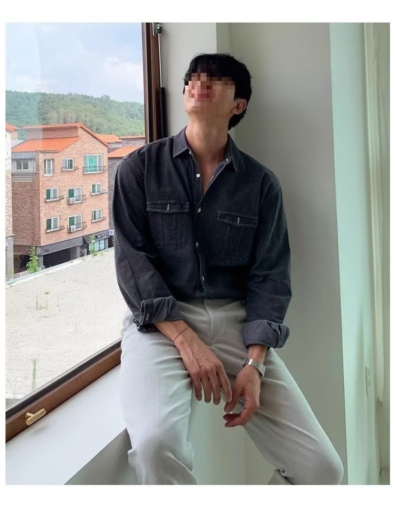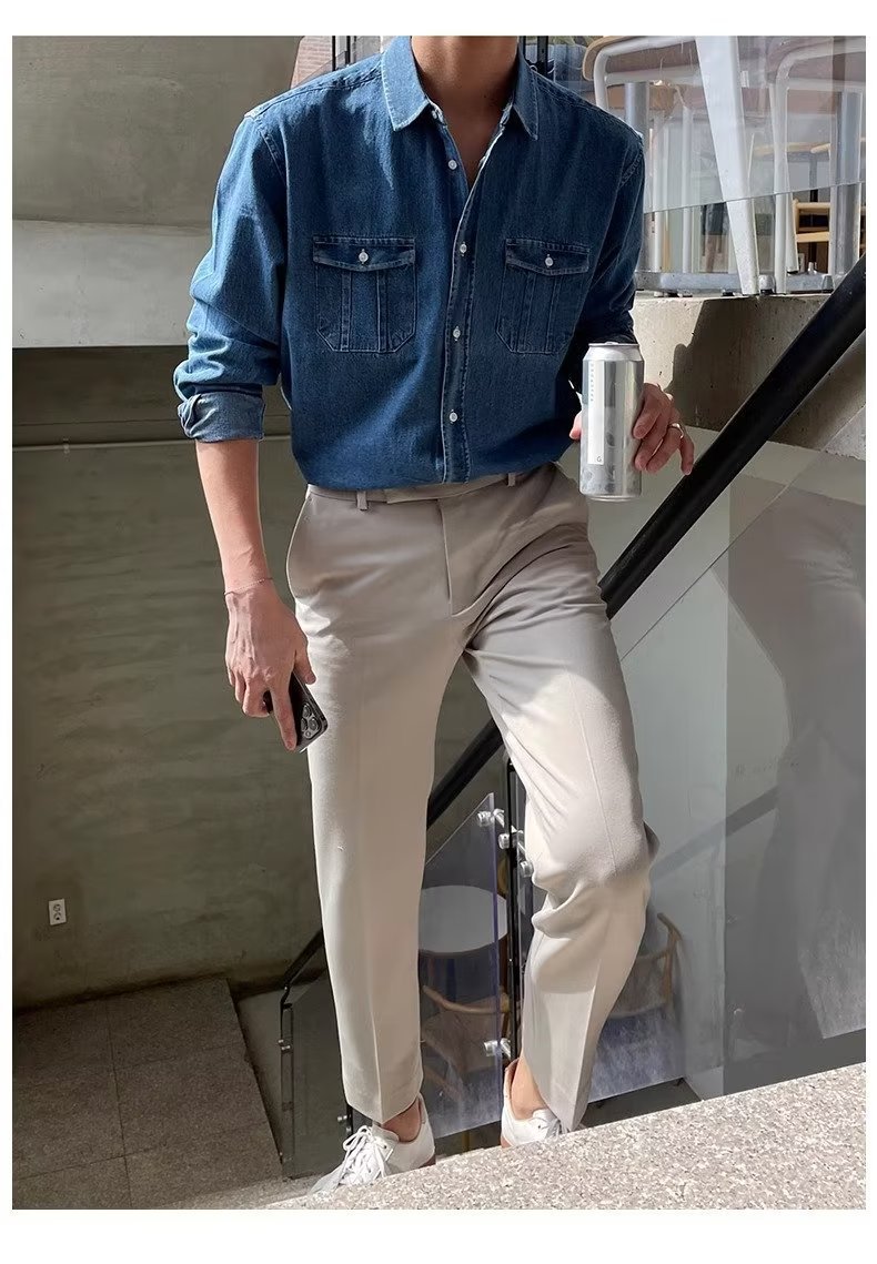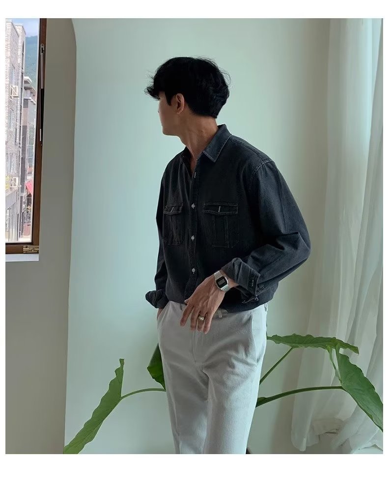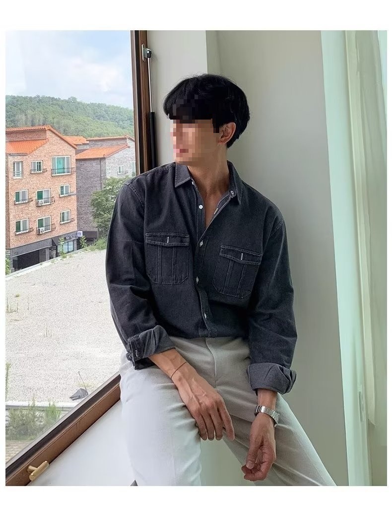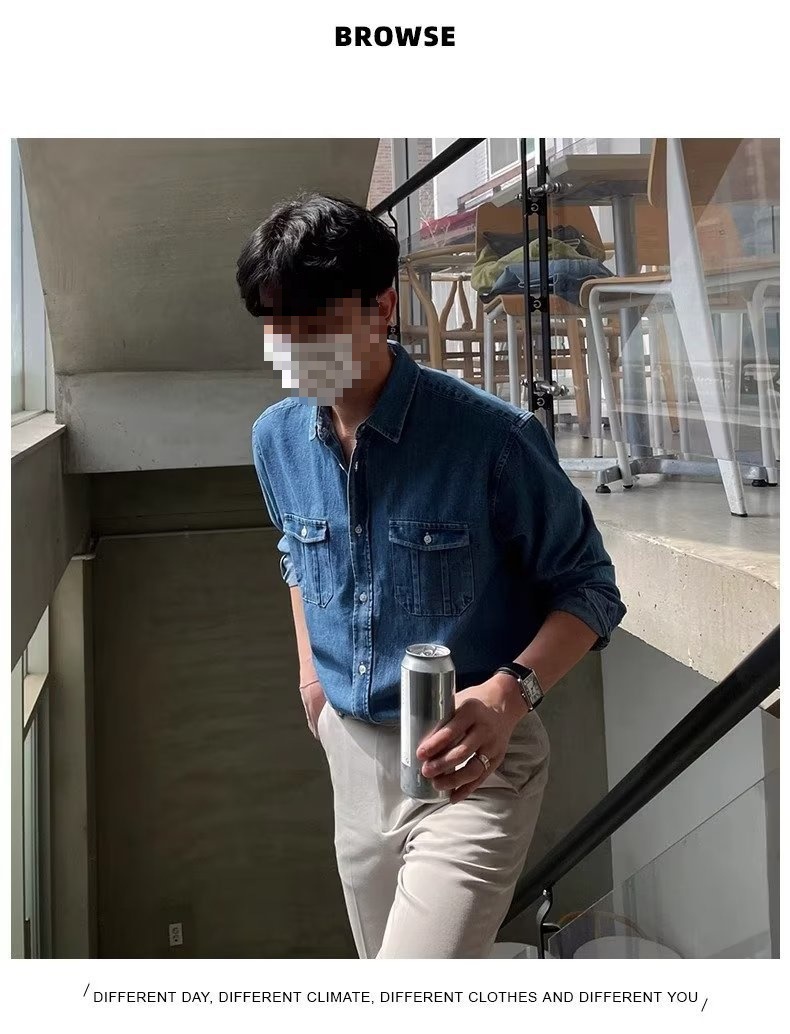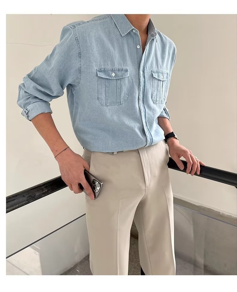 2024 년 씻은 올드 데님 셔츠 남자 봄 한국식 루즈 하이 엔드 긴팔 작품 셔츠 올매치스토어 가기