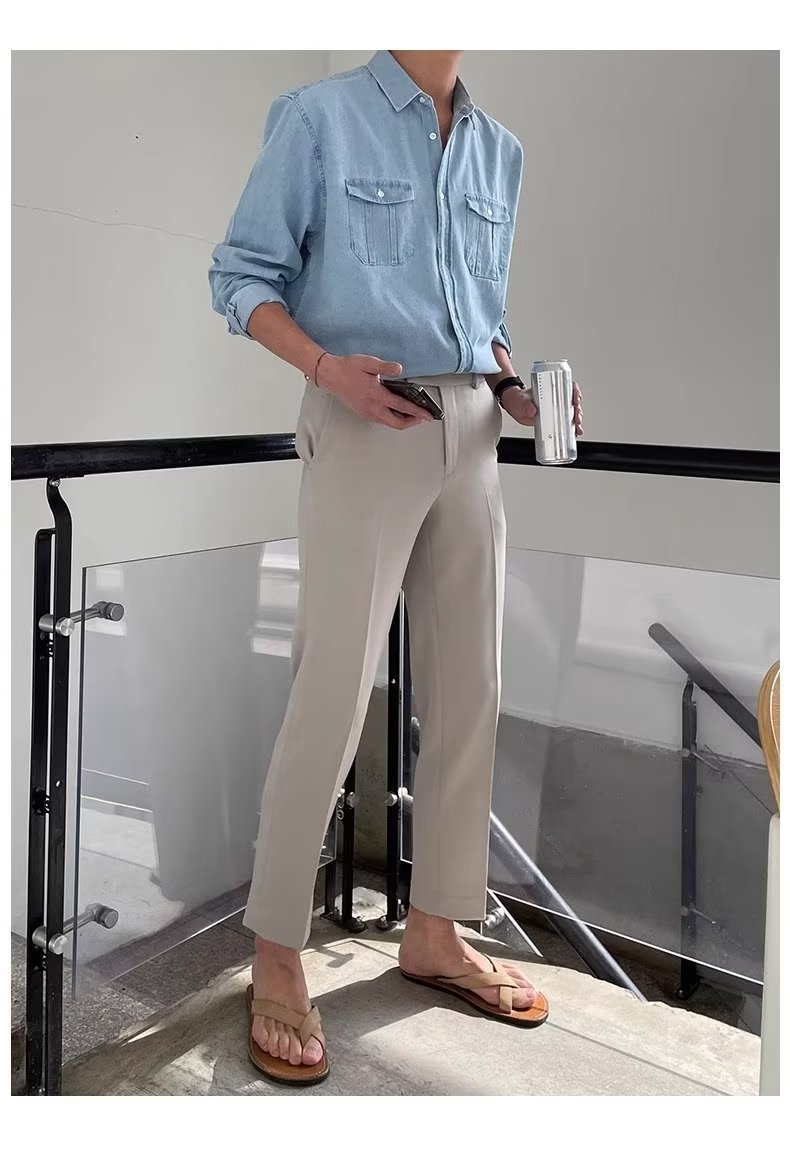 2024 년 씻은 올드 데님 셔츠 남자 봄 한국식 루즈 하이 엔드 긴팔 작품 셔츠 올매치
