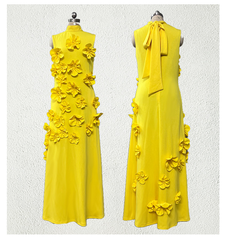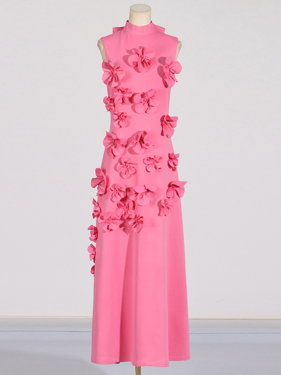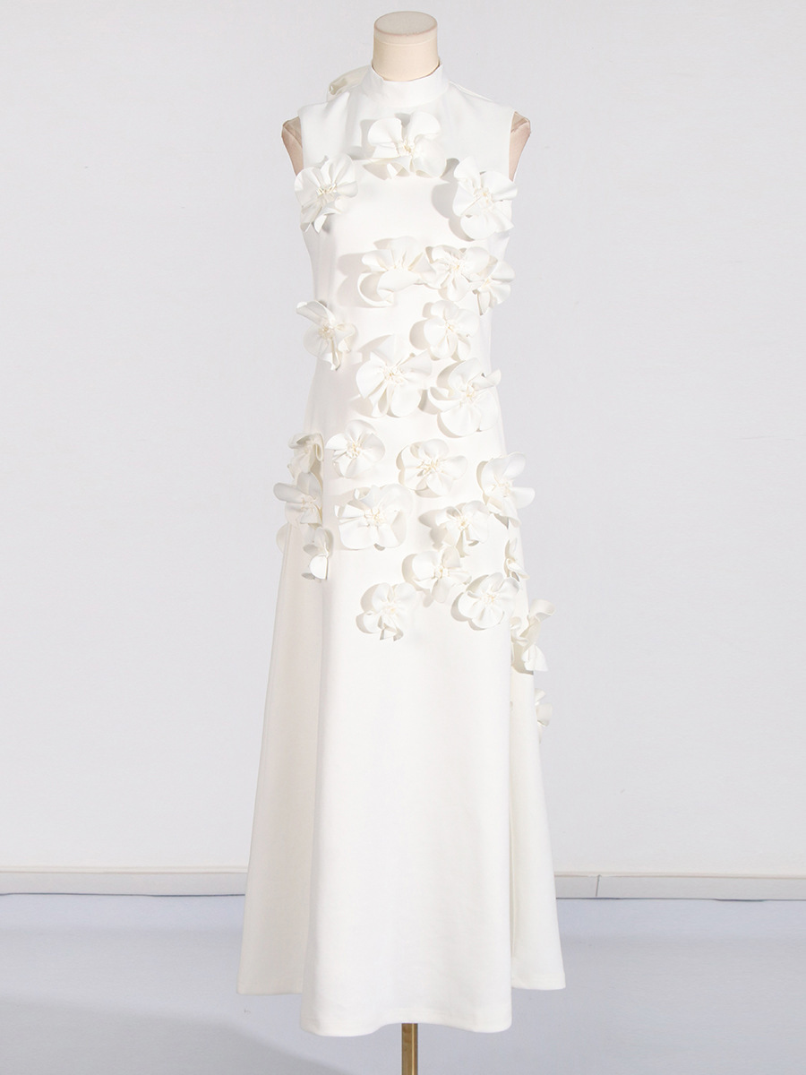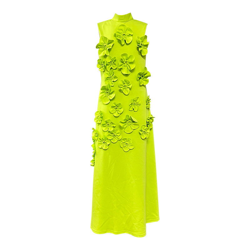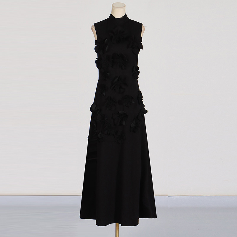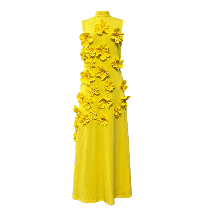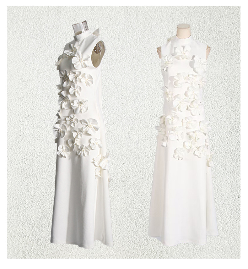 유럽과 미국의 새로운 패션 연예인 원피스 3 차원 꽃 높은 허리 슬림 핏 원피스 민소매 하이 엔드 원피스스토어 가기