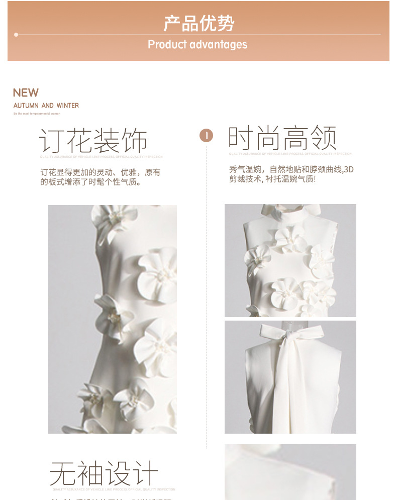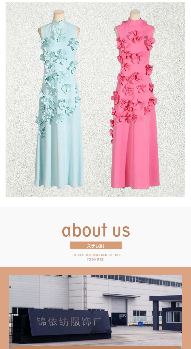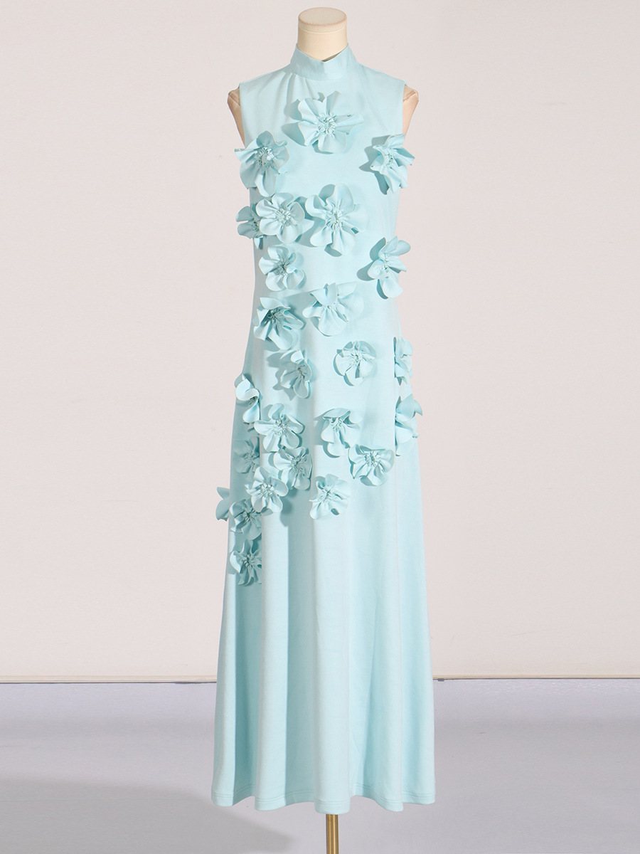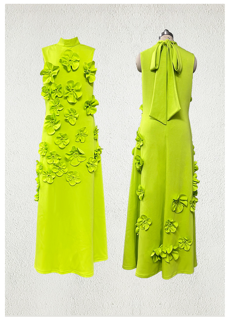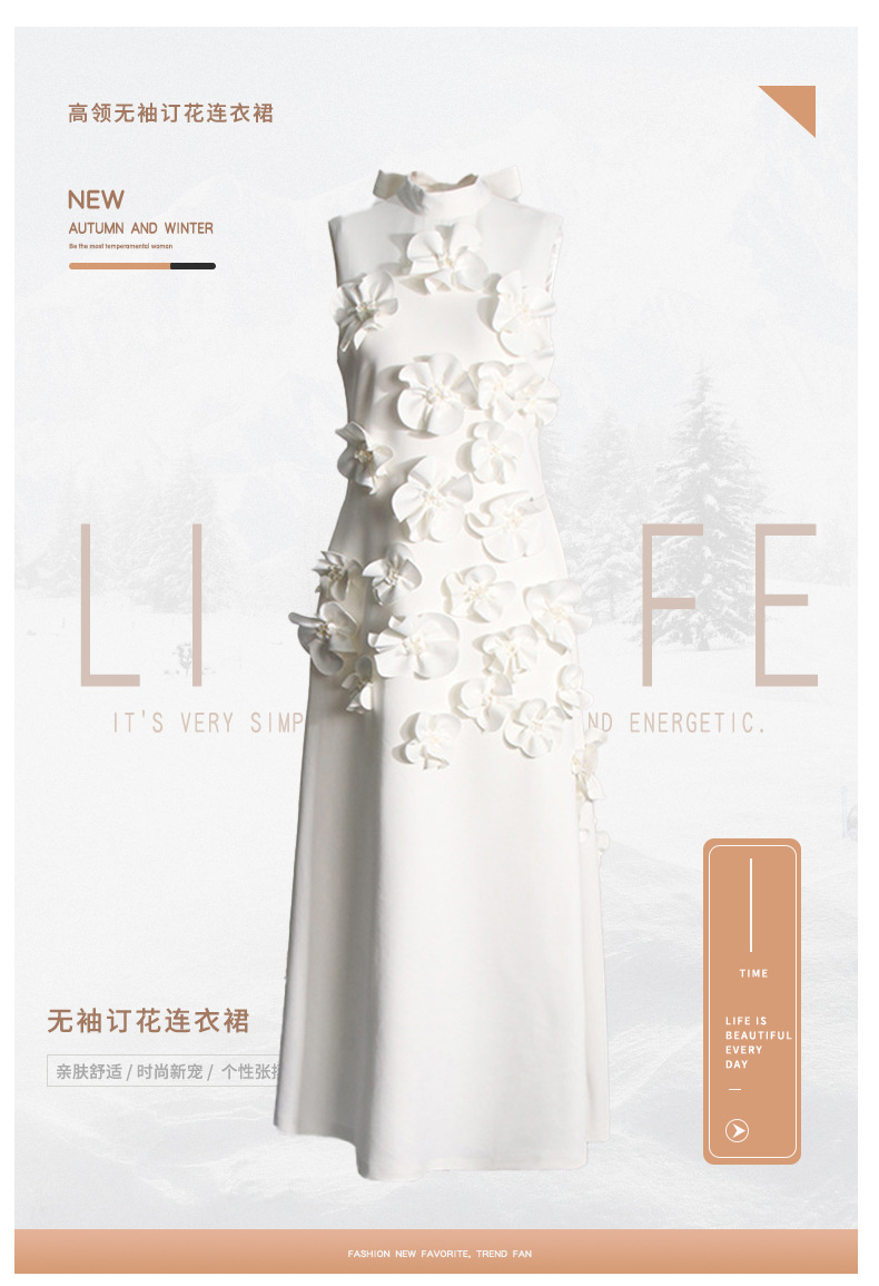 유럽과 미국의 새로운 패션 연예인 원피스 3 차원 꽃 높은 허리 슬림 핏 원피스 민소매 하이 엔드 원피스스토어 가기