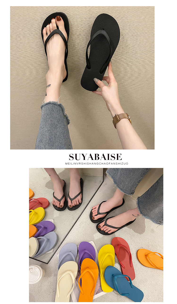 플립 플롭 여성 인스 타 그램 스타일 여름 겉옷 패션 올 매치 사이버 연예인 솔리드 컬러 샌들 플립 플롭 비치 슬리퍼 미끄럼 방지 욕실