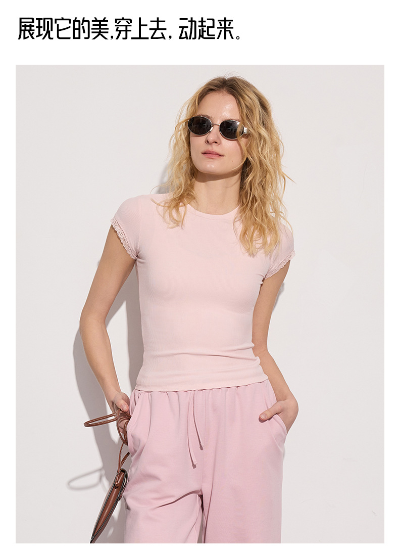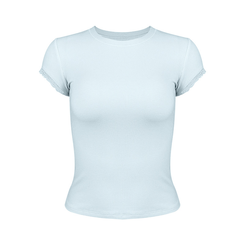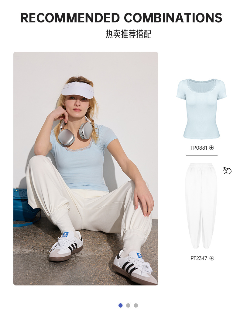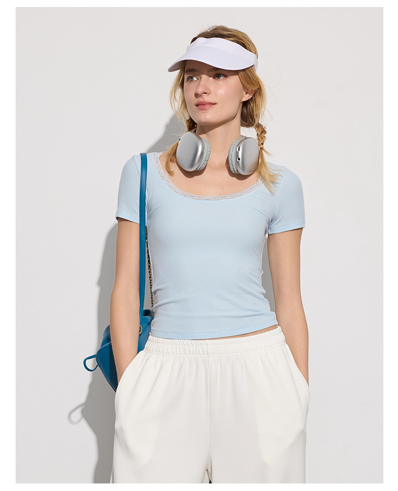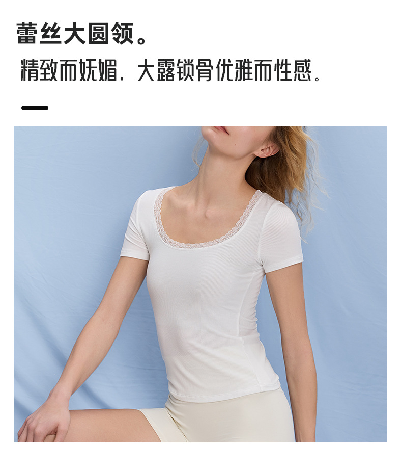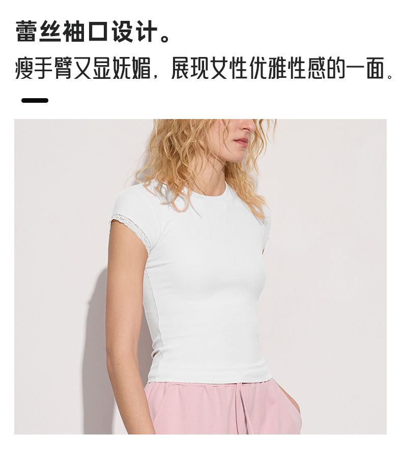 봄 여름 신상 여성용 요가복, 라운드넥 레이스 반팔 티셔츠, 슬림핏 베이스레이어 스포츠 숏탑 피트니스웨어스토어 가기