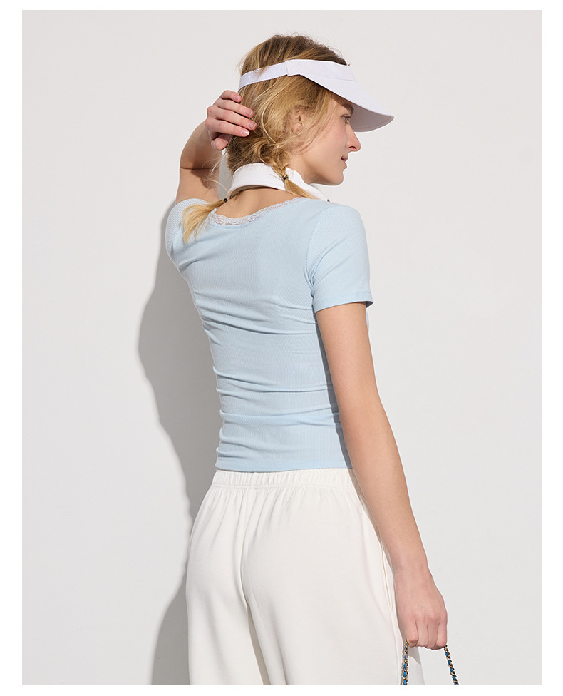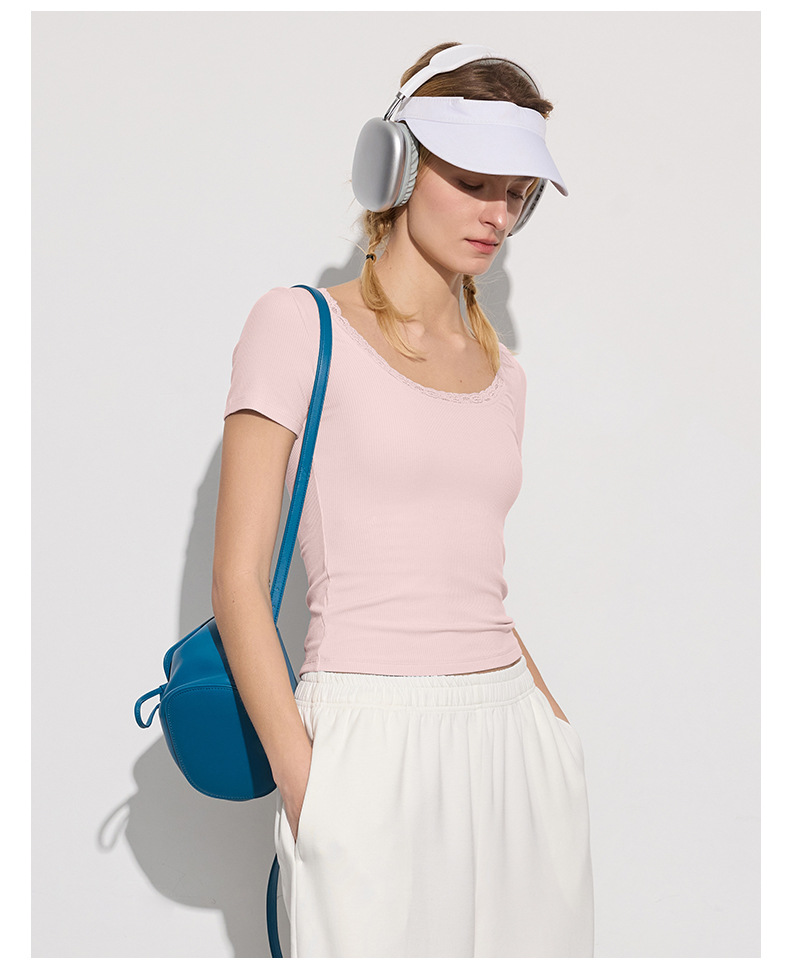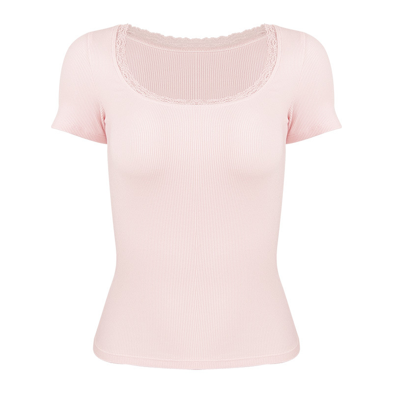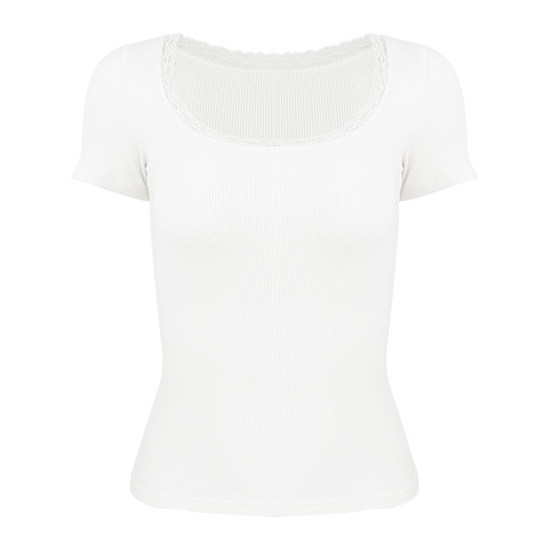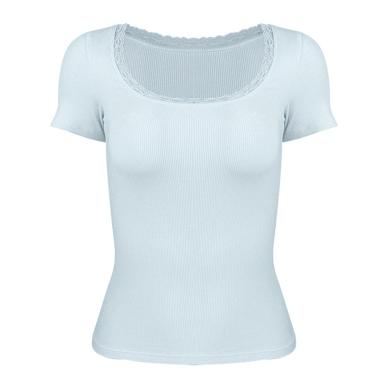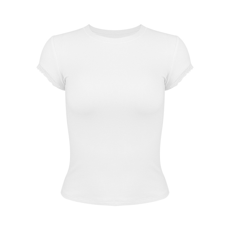봄 여름 신상 여성용 요가복, 라운드넥 레이스 반팔 티셔츠, 슬림핏 베이스레이어 스포츠 숏탑 피트니스웨어스토어 가기