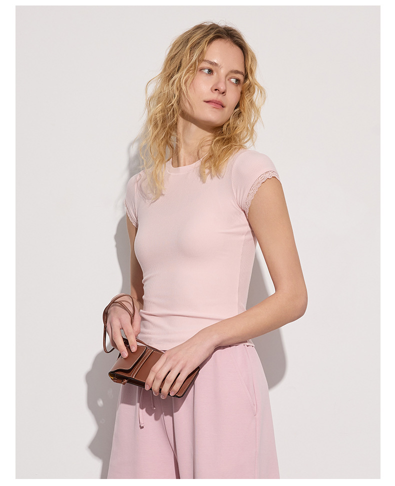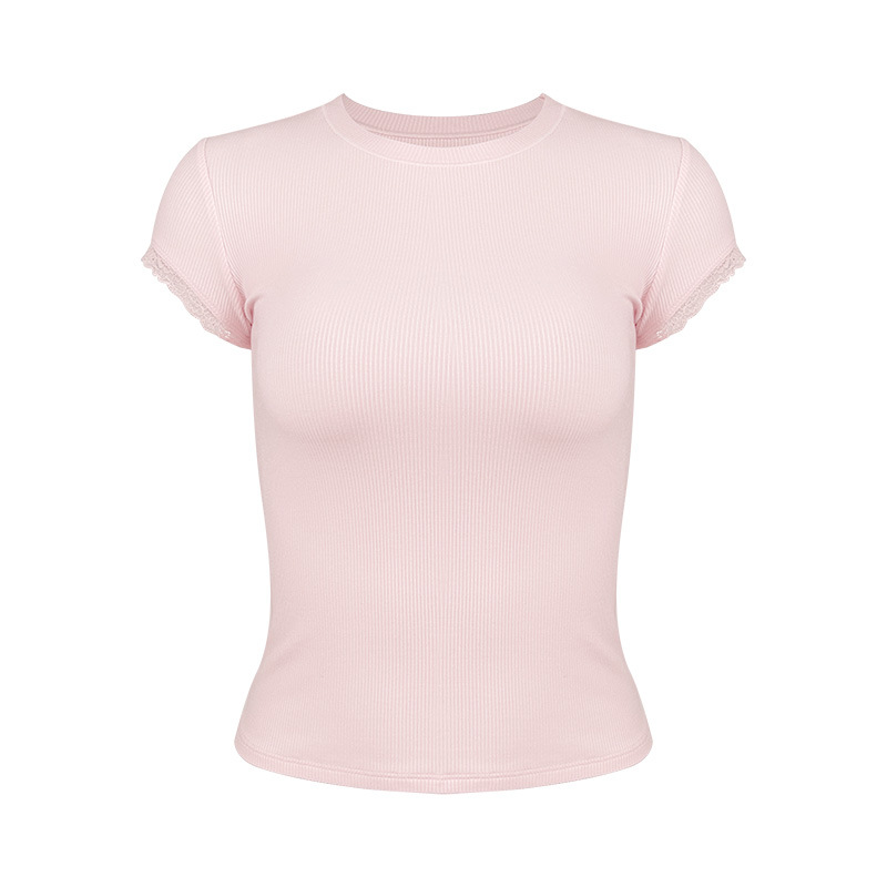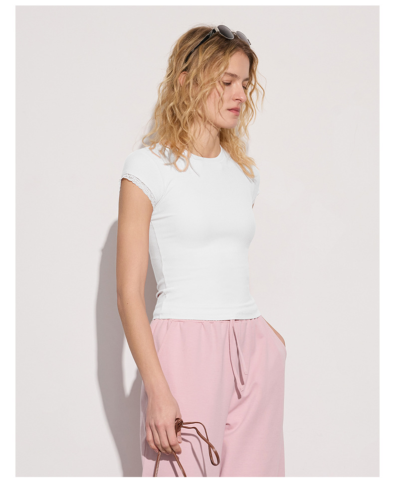 봄 여름 신상 여성용 요가복, 라운드넥 레이스 반팔 티셔츠, 슬림핏 베이스레이어 스포츠 숏탑 피트니스웨어