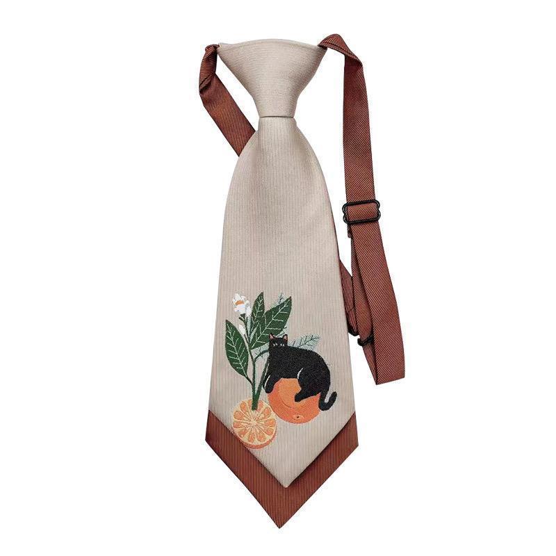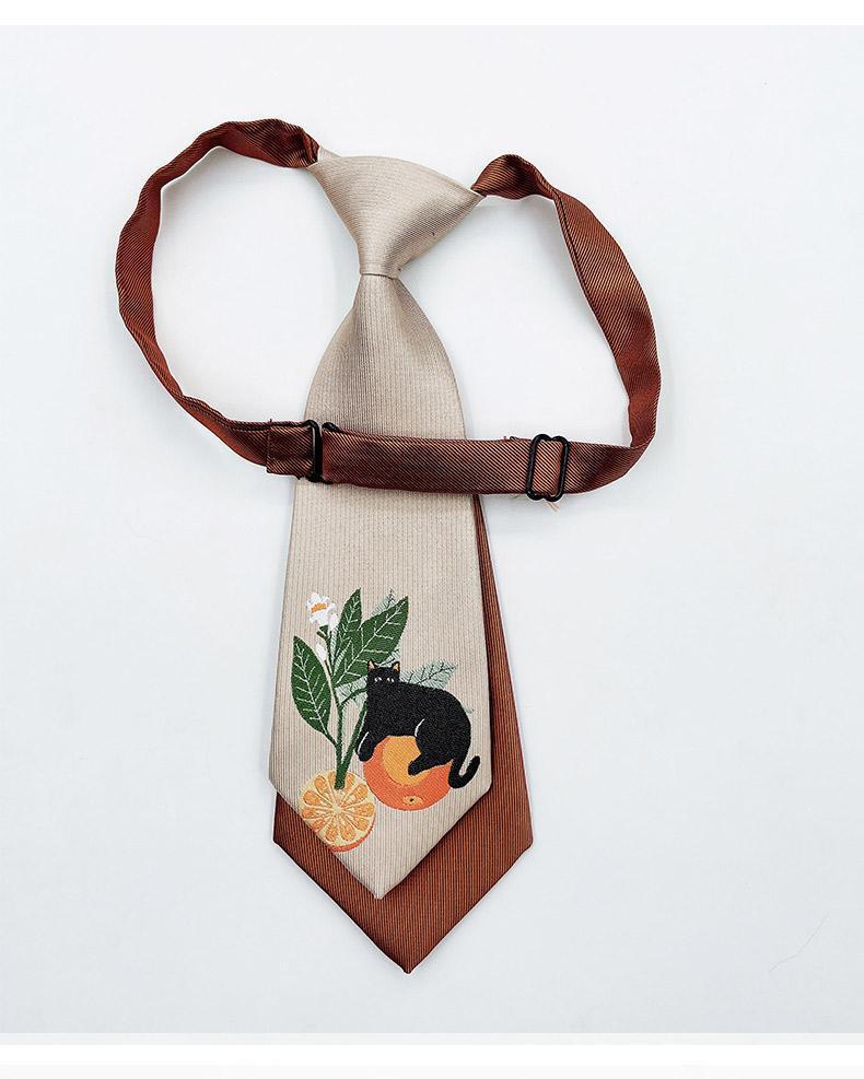 자수 더블 레이어 넥타이-무료 작은 넥타이 다크 브라운 달콤한 쿨 칼리지 JK 소녀 짧은 액세서리 오렌지 고양이