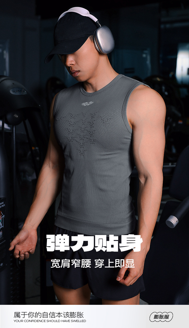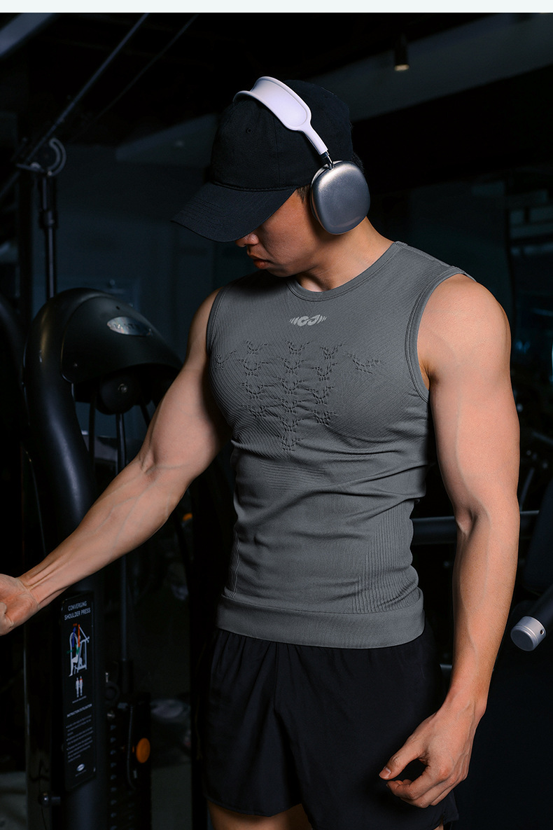 피트니스 의류 남자 여름 스포츠 원활한 압축 통기성 빠른 건조 조끼 야외 사이클링 훈련 의류 농구 러닝 티셔츠