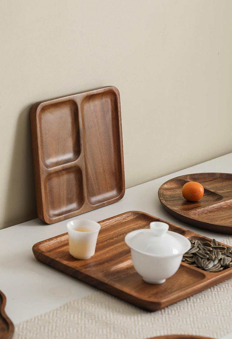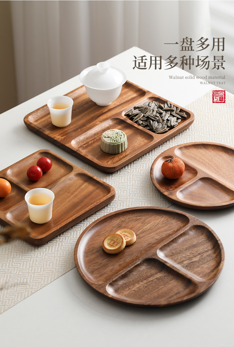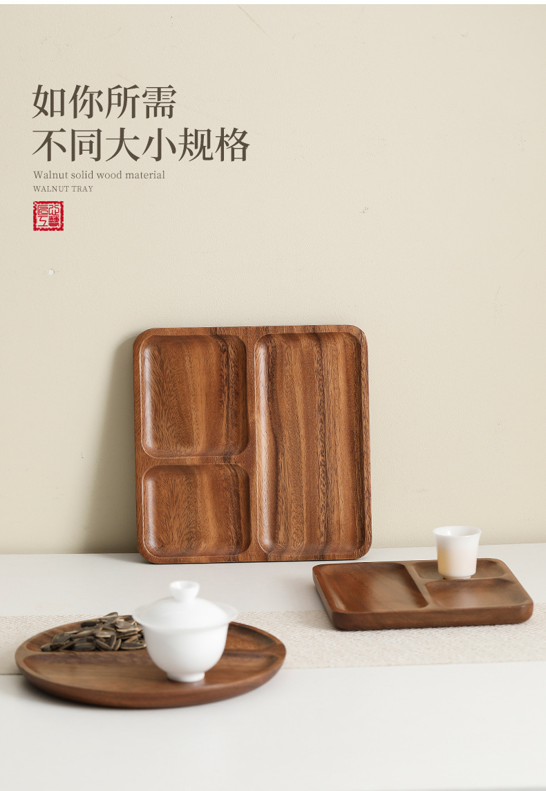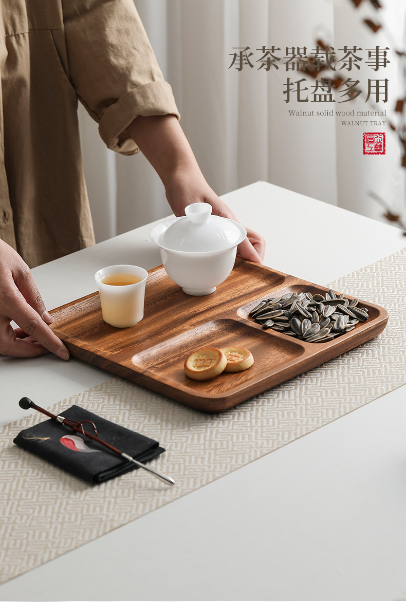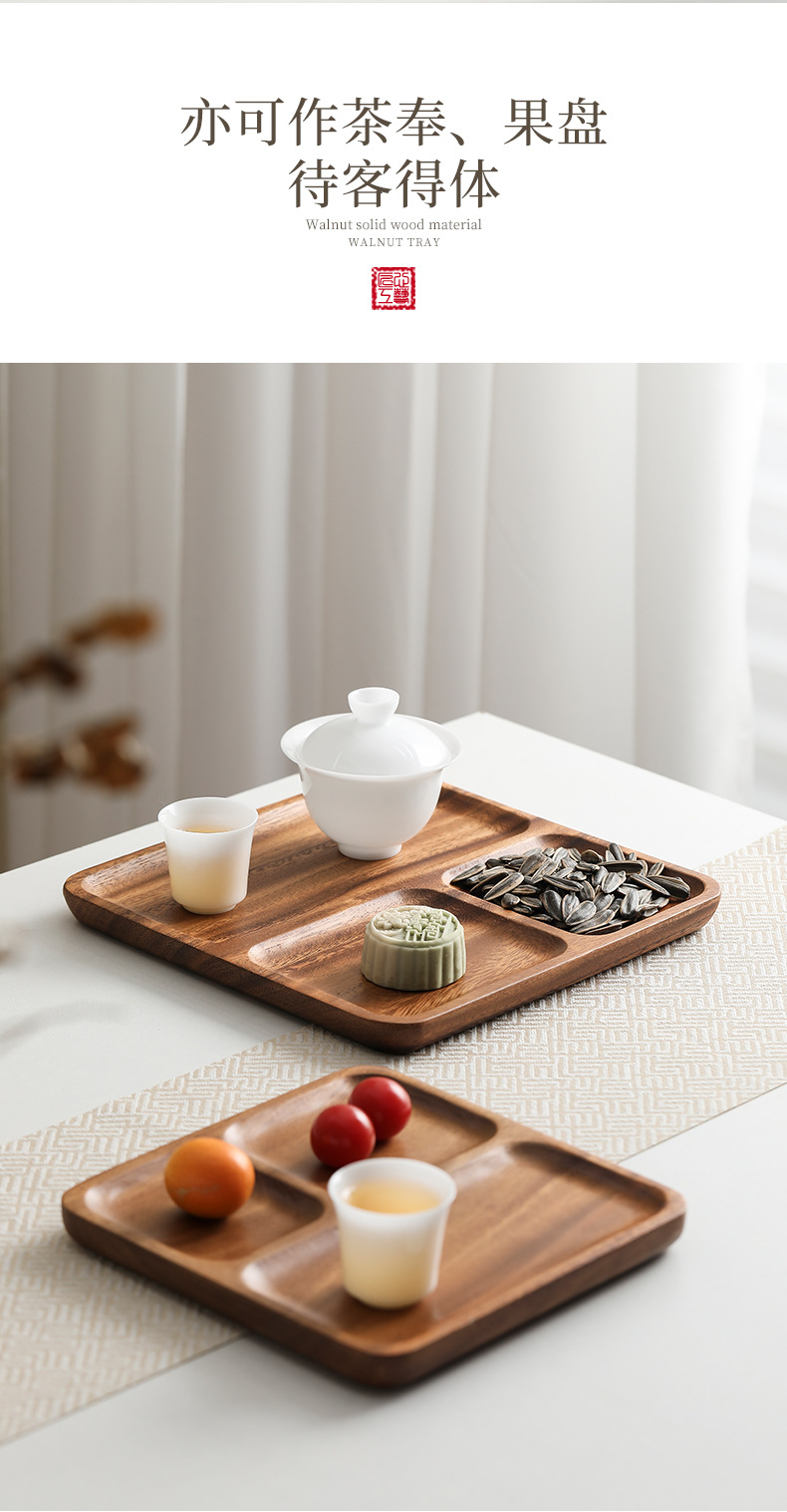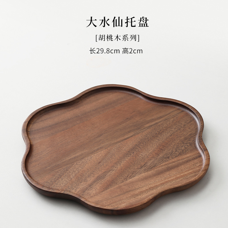 일본식 호두 트레이 솔리드 우드 특수 모양의 트레이 마른 식탁 차 트레이 접시 접시 직사각형 나무 아침 식사 접시