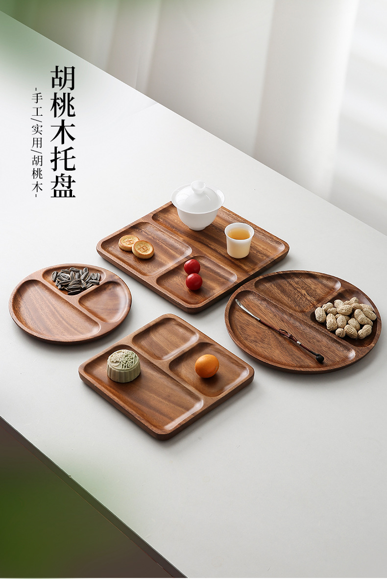 일본식 호두 트레이 솔리드 우드 특수 모양의 트레이 마른 식탁 차 트레이 접시 접시 직사각형 나무 아침 식사 접시스토어 가기