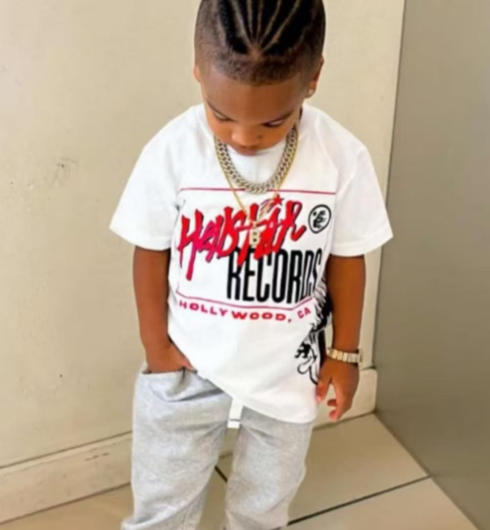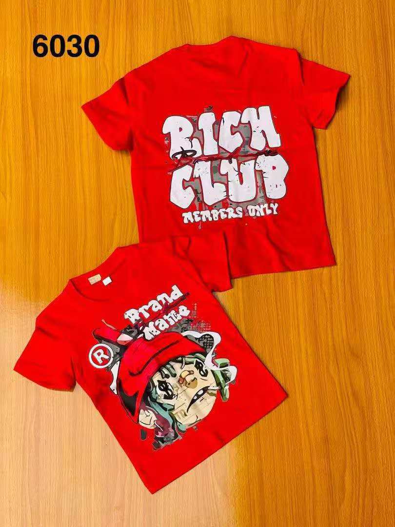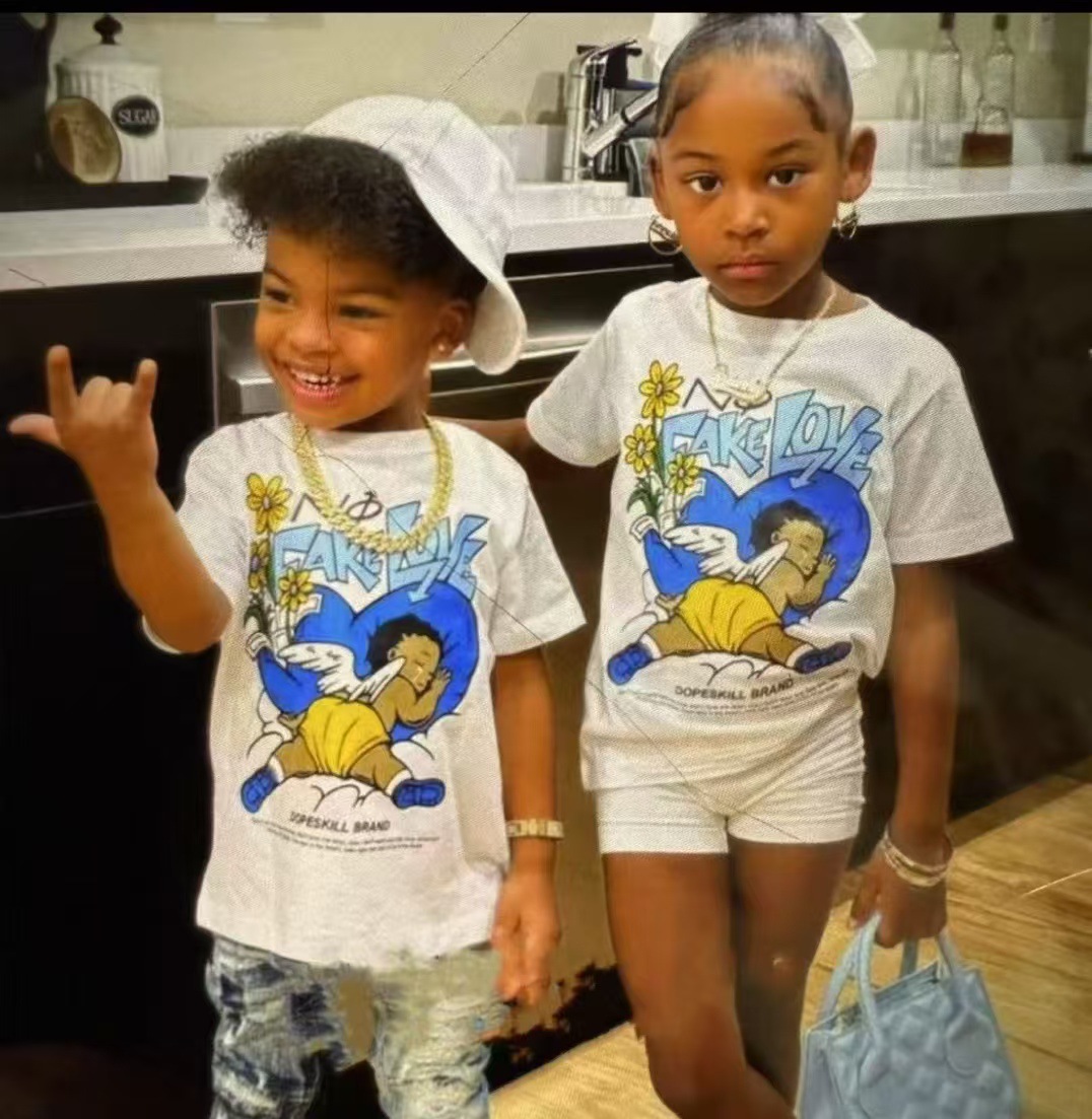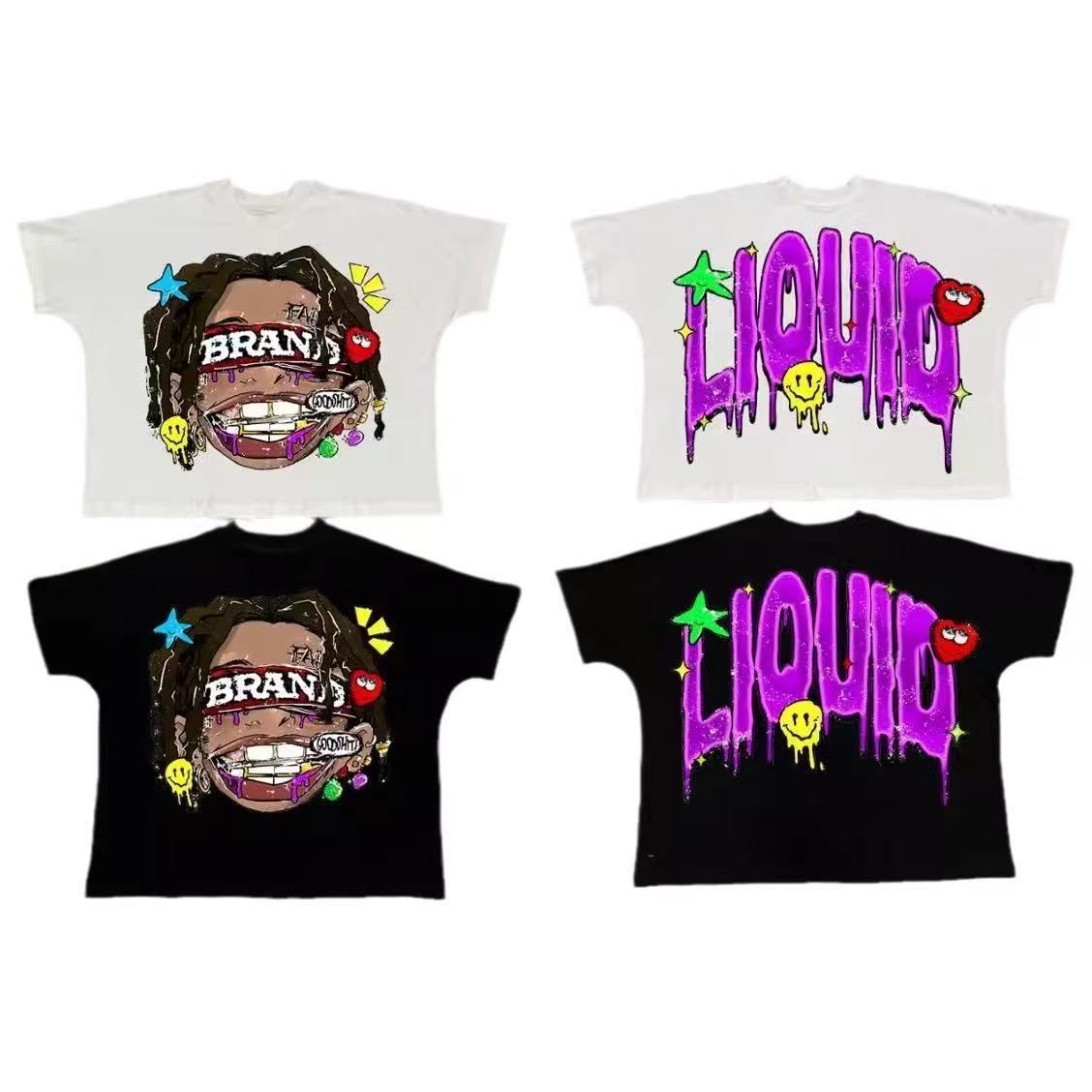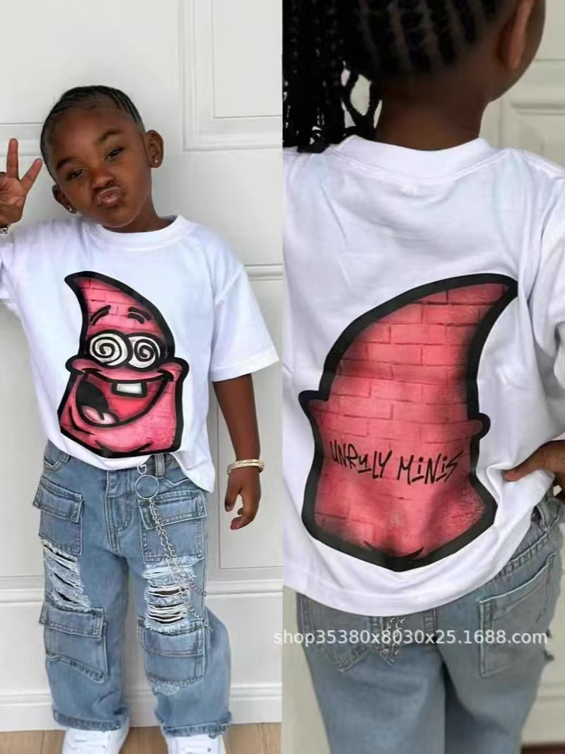 트렌디 한 느슨한 둥근 목 국경 대외 무역 2025 여름 거리 힙합 인쇄 아동용 반팔 티셔츠 남녀스토어 가기