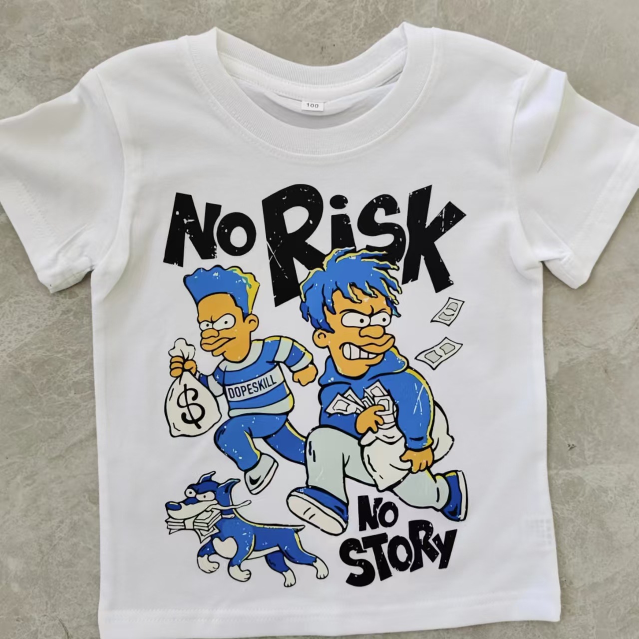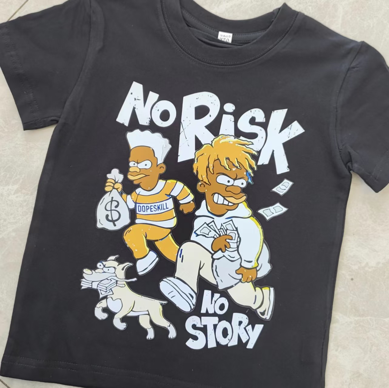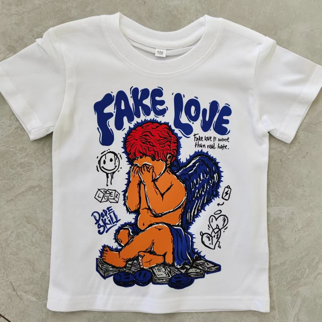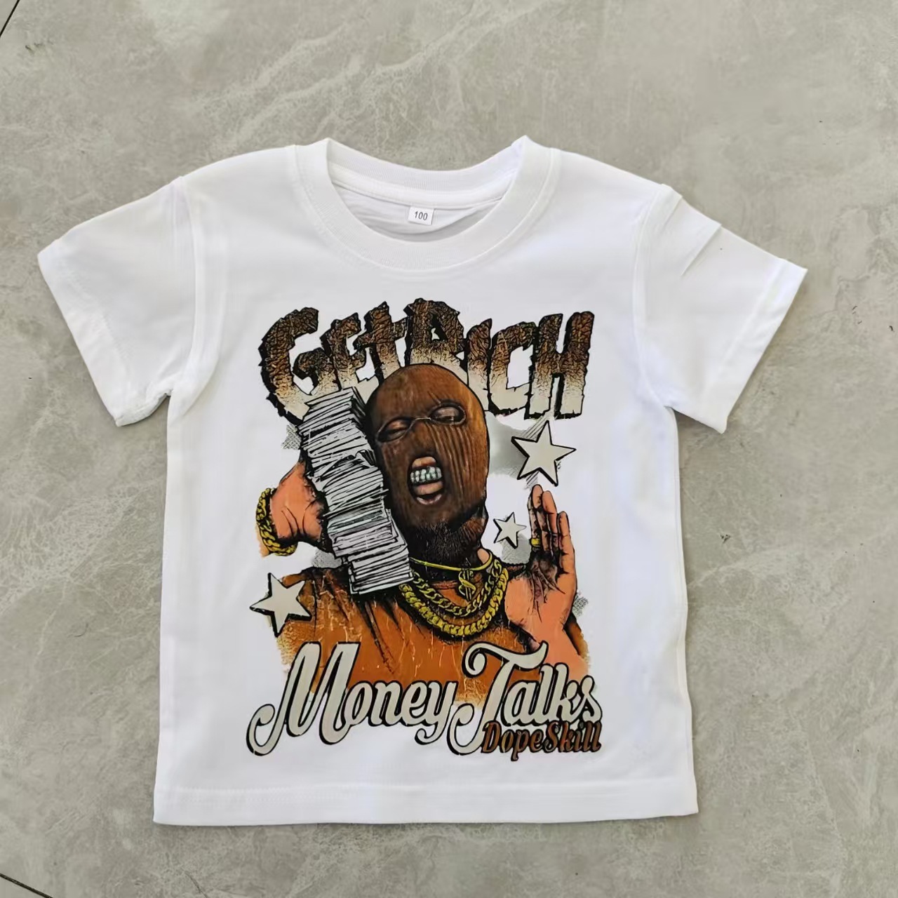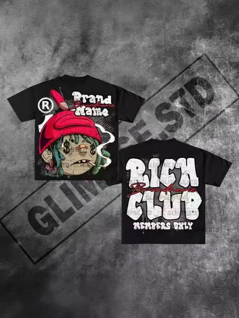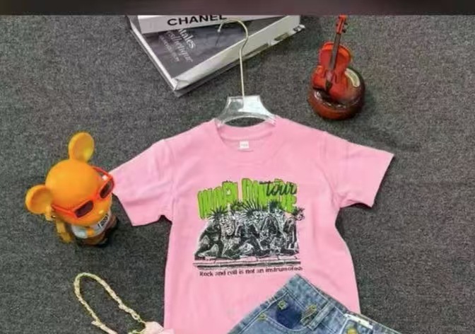 트렌디 한 느슨한 둥근 목 국경 대외 무역 2025 여름 거리 힙합 인쇄 아동용 반팔 티셔츠 남녀스토어 가기