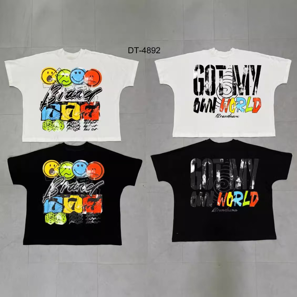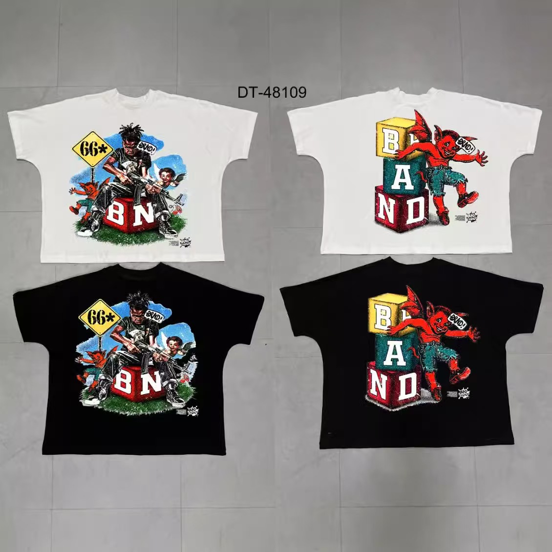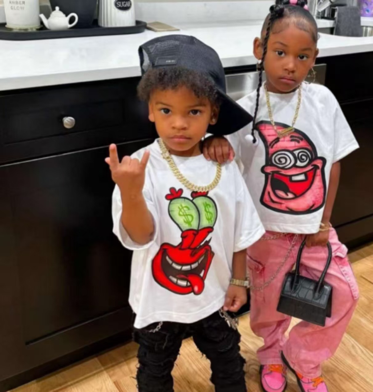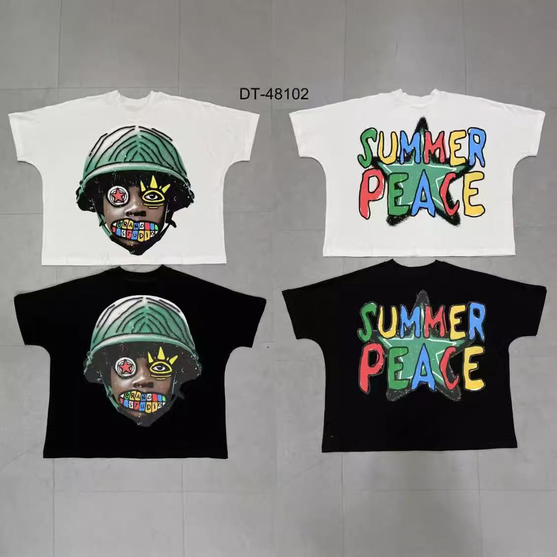 트렌디 한 느슨한 둥근 목 국경 대외 무역 2025 여름 거리 힙합 인쇄 아동용 반팔 티셔츠 남녀스토어 가기