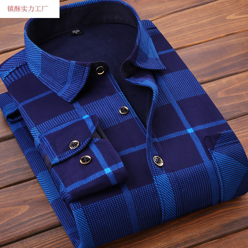 남자의 따뜻한 셔츠 기모 두꺼운 긴 소매 셔츠 중년 아빠 격자 무늬 인쇄 남자의 1/2스토어 가기