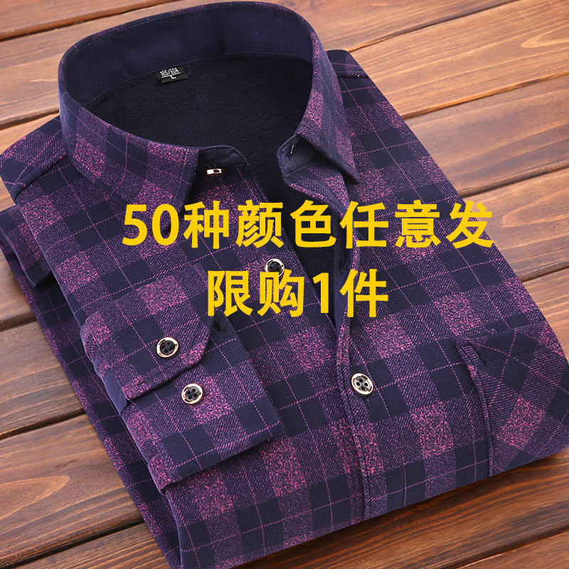 남자의 따뜻한 셔츠 기모 두꺼운 긴 소매 셔츠 중년 아빠 격자 무늬 인쇄 남자의 1/2