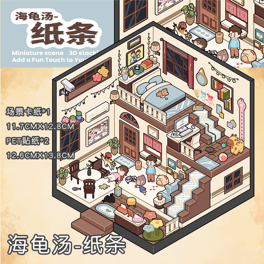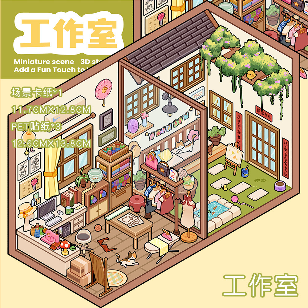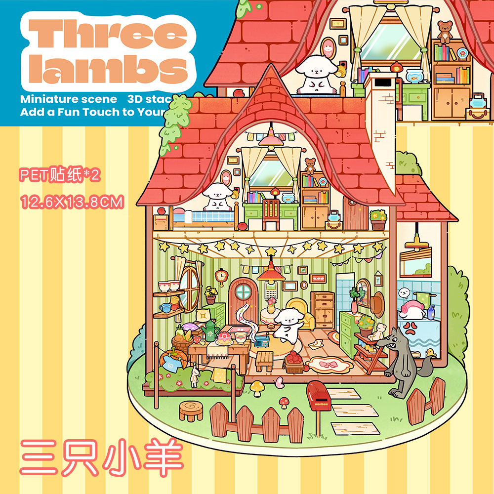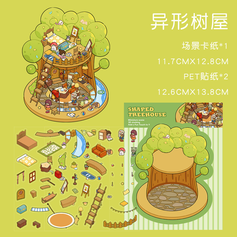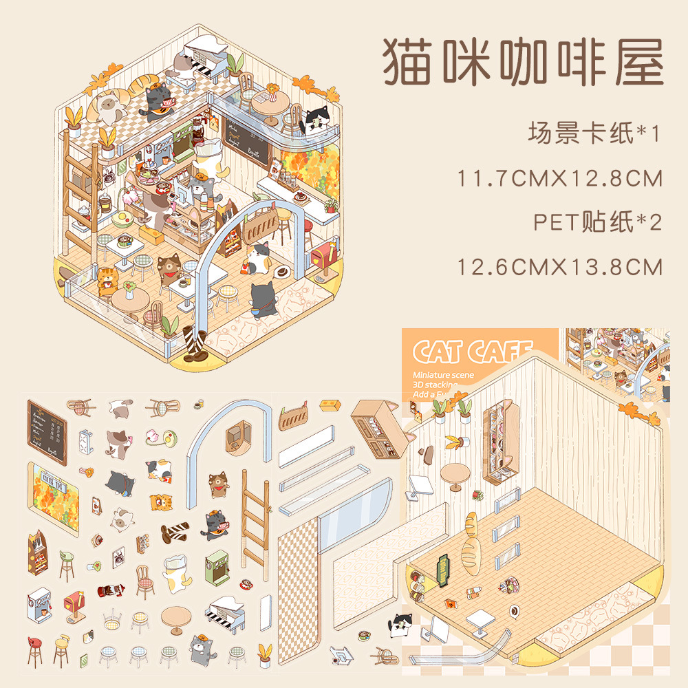 같은 새로운 미니어처 장면 조경 스티커와 함께 작은 빨간 책 컷 프리 조경 장면 3D 스택 3 차원 오두막 손 계정스토어 가기