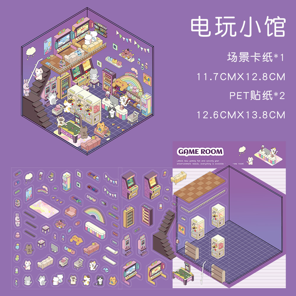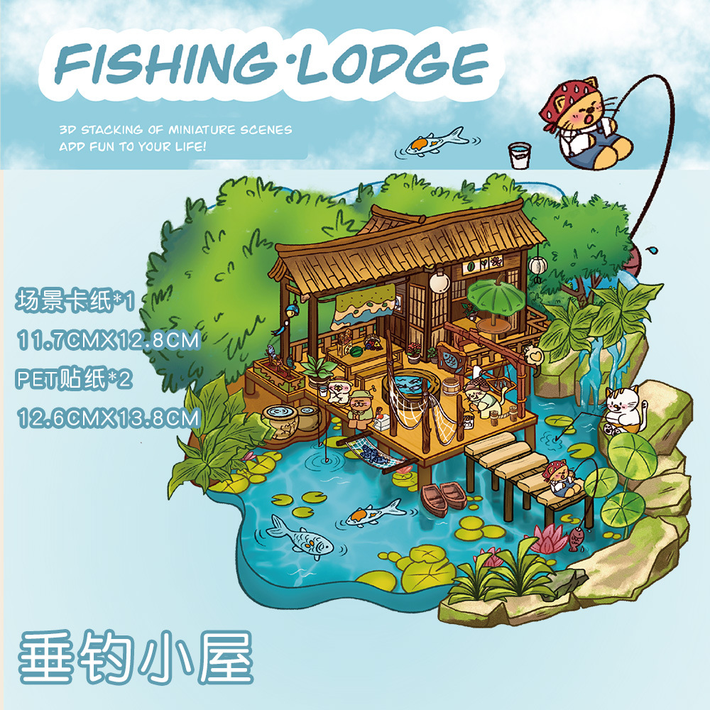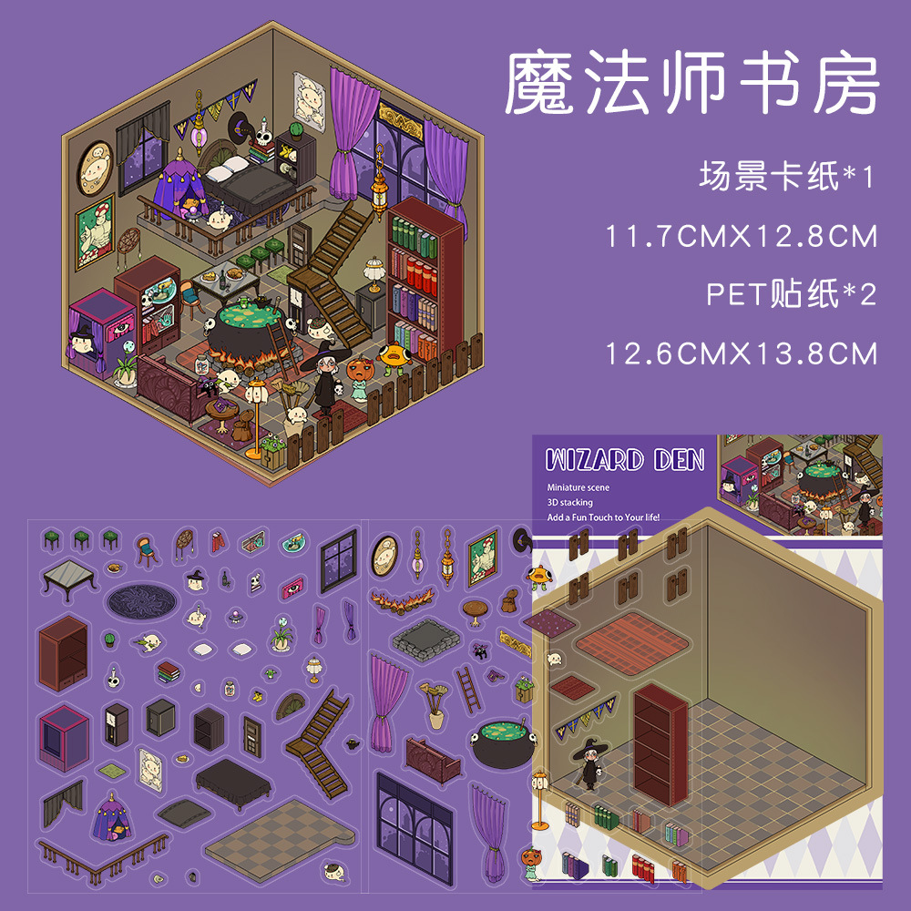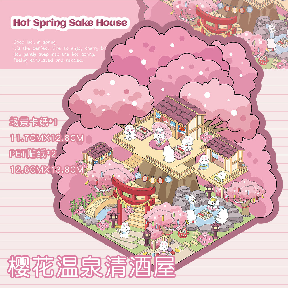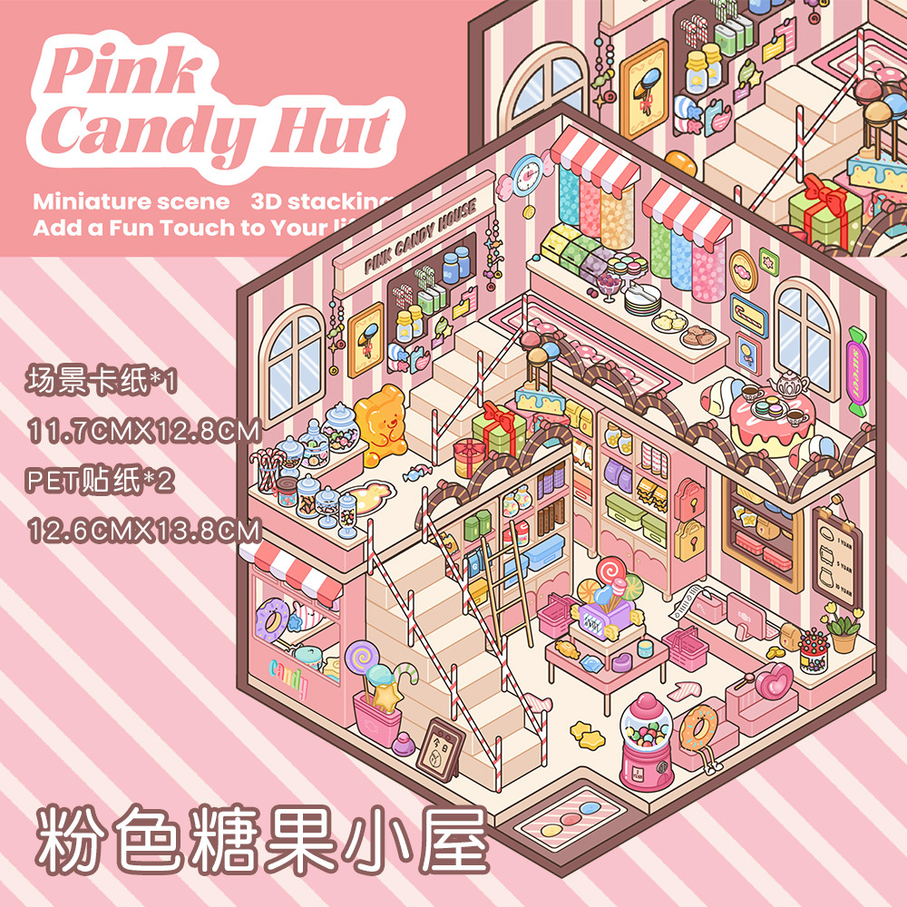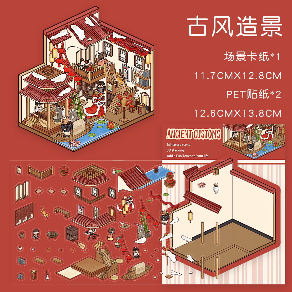 같은 새로운 미니어처 장면 조경 스티커와 함께 작은 빨간 책 컷 프리 조경 장면 3D 스택 3 차원 오두막 손 계정스토어 가기