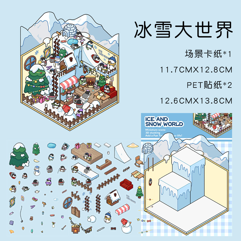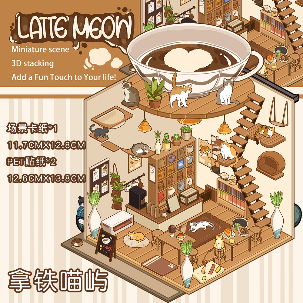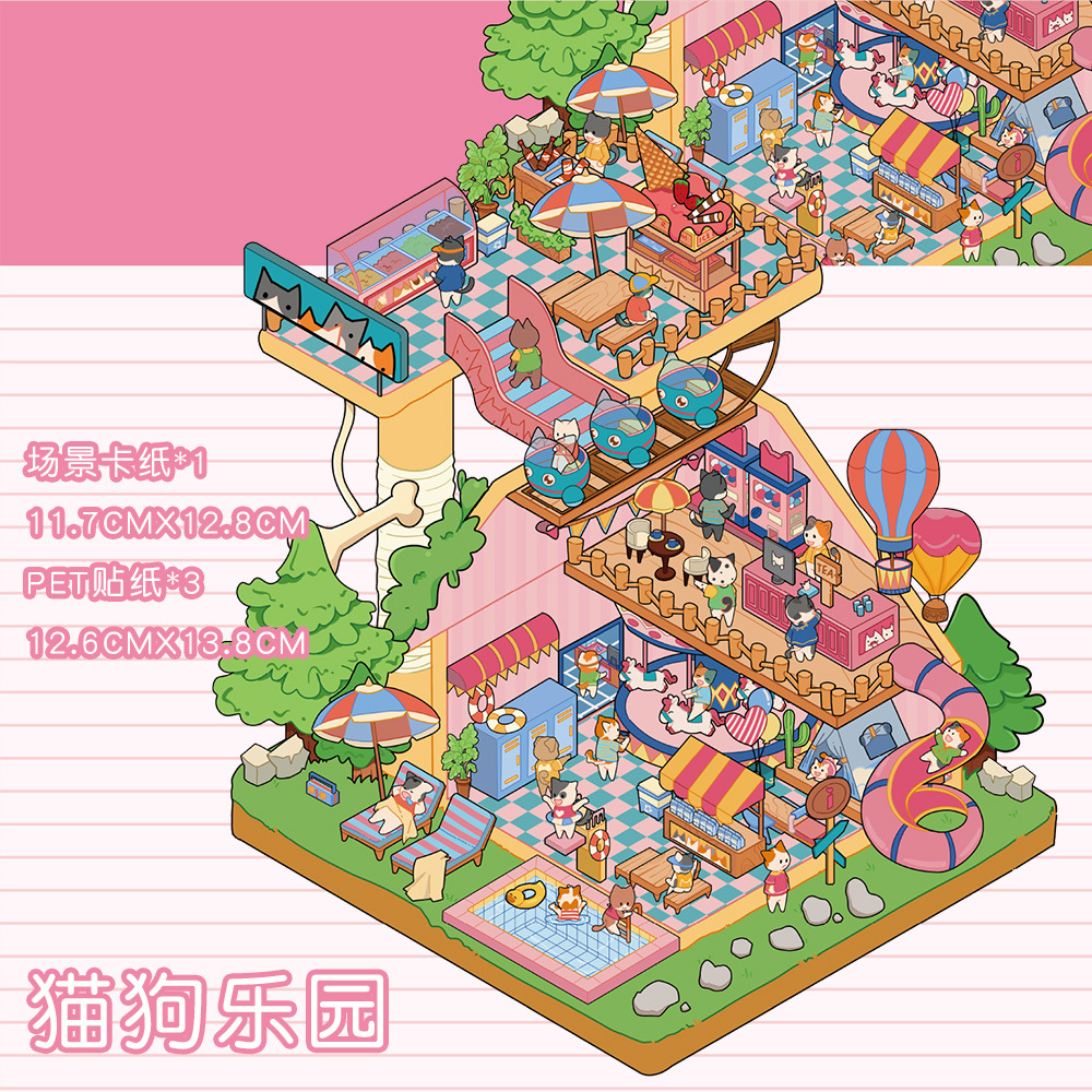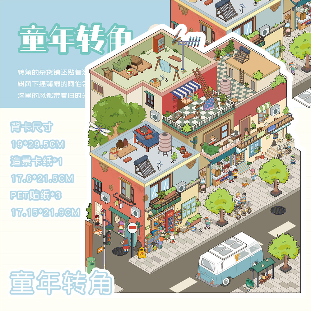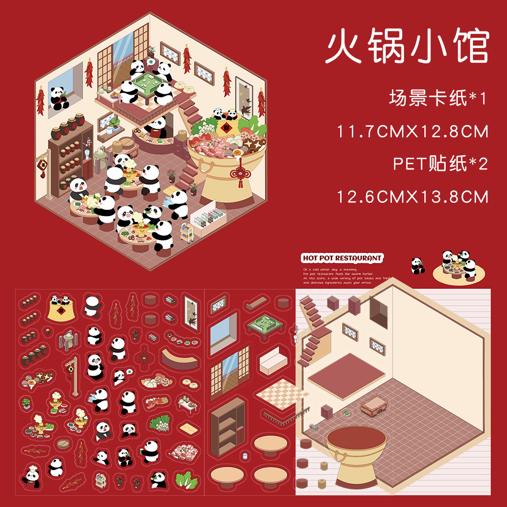 같은 새로운 미니어처 장면 조경 스티커와 함께 작은 빨간 책 컷 프리 조경 장면 3D 스택 3 차원 오두막 손 계정스토어 가기