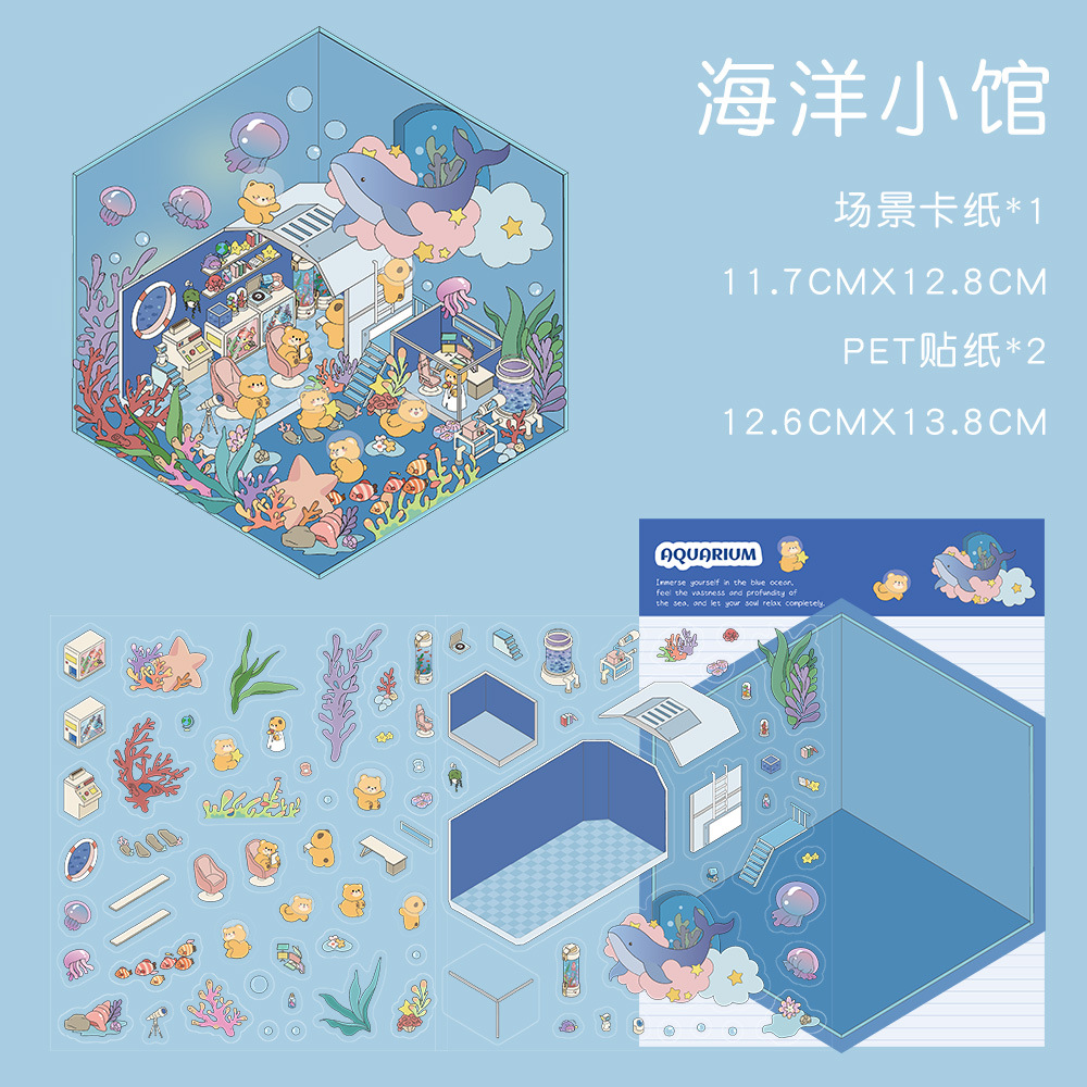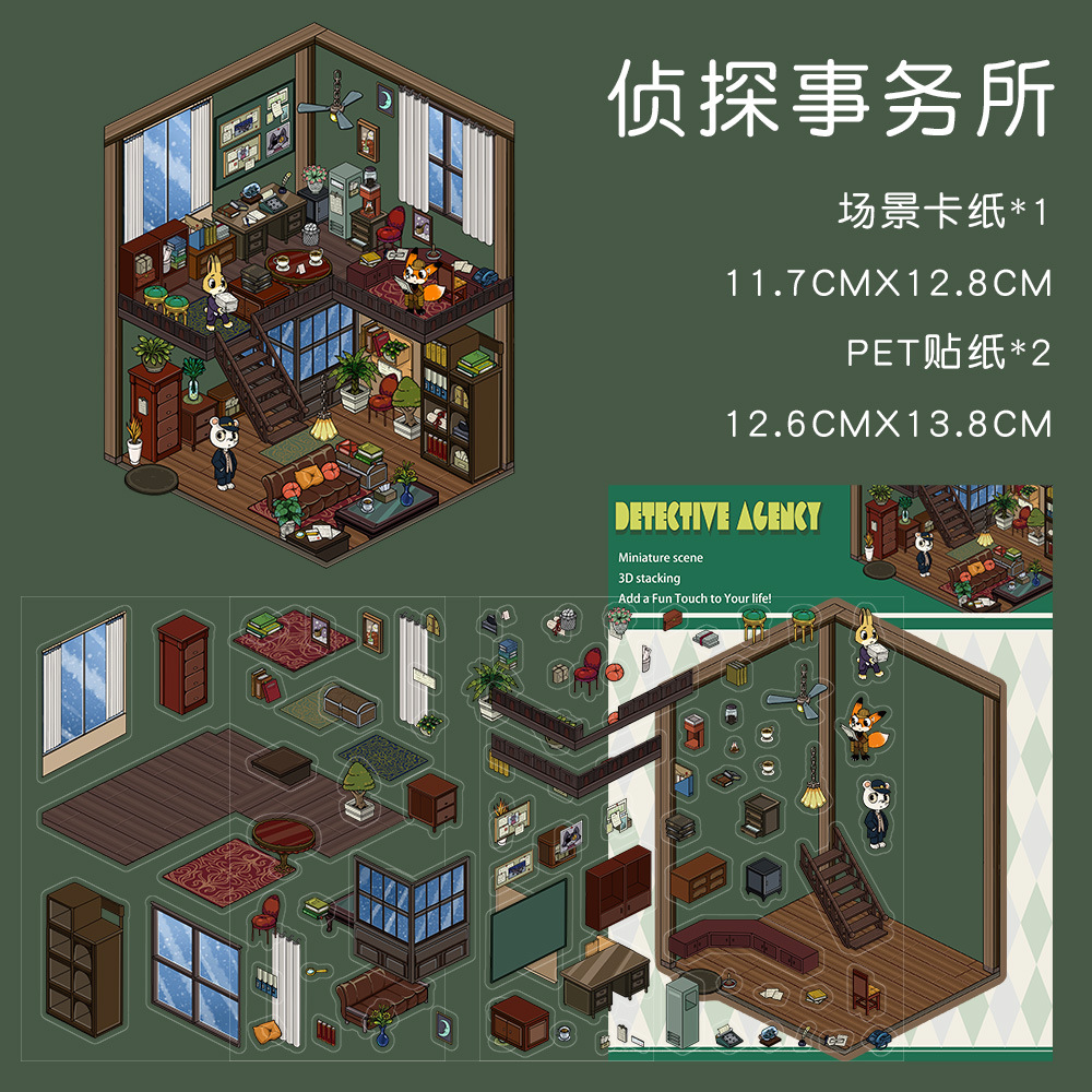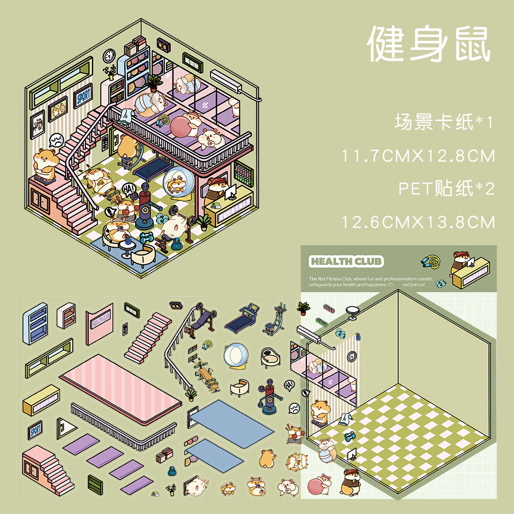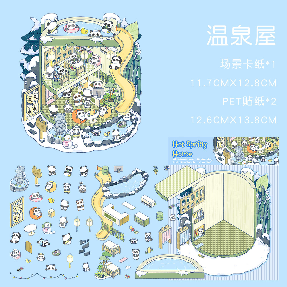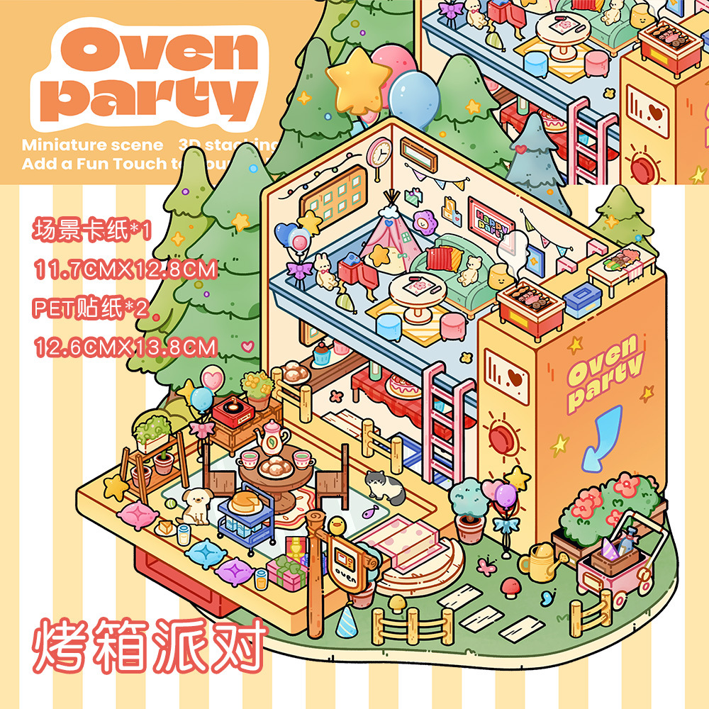 같은 새로운 미니어처 장면 조경 스티커와 함께 작은 빨간 책 컷 프리 조경 장면 3D 스택 3 차원 오두막 손 계정스토어 가기