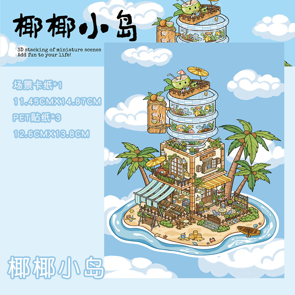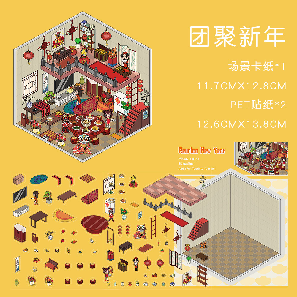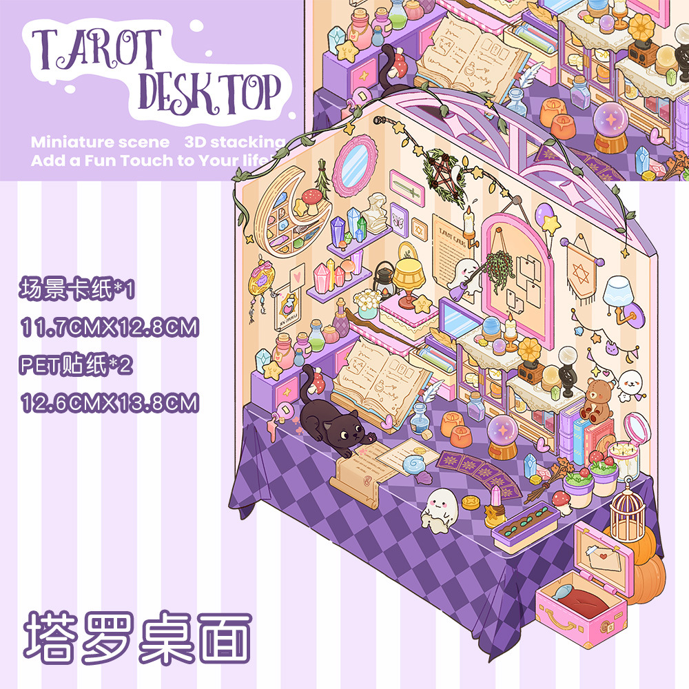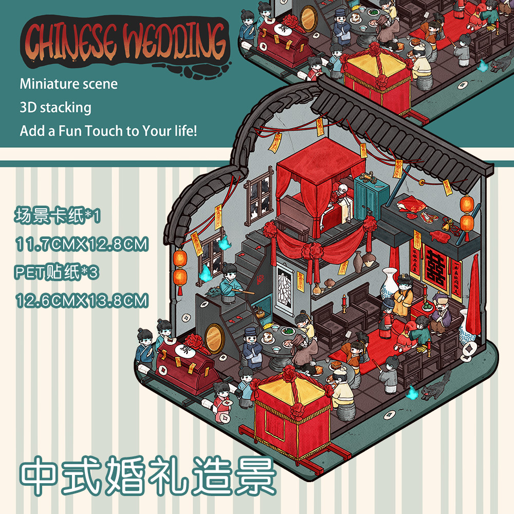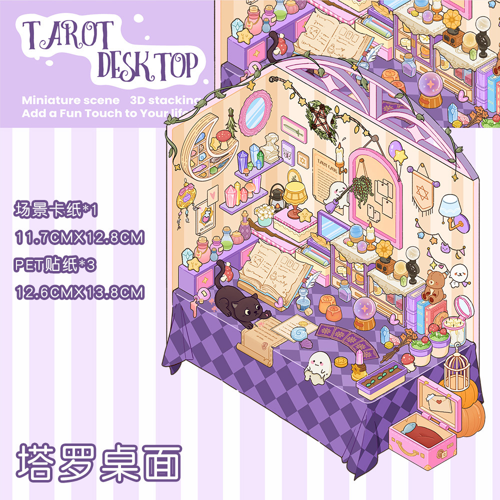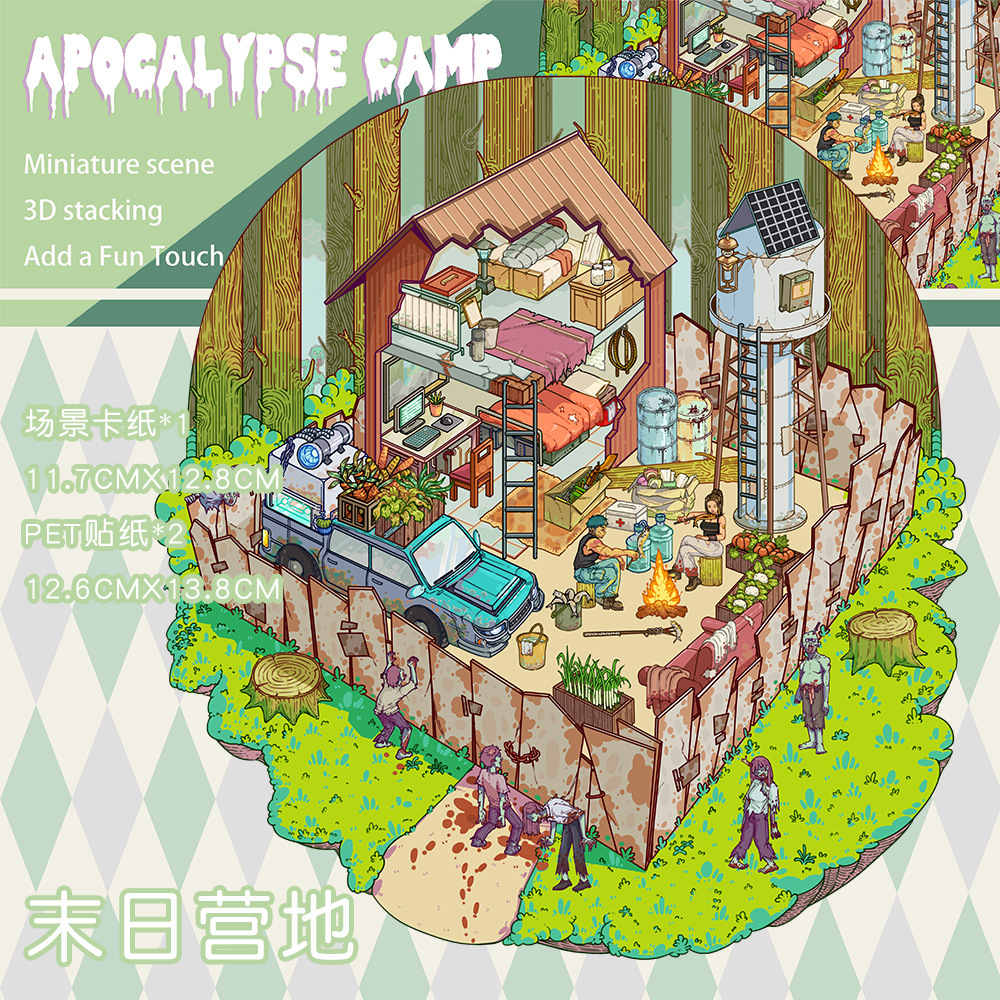 같은 새로운 미니어처 장면 조경 스티커와 함께 작은 빨간 책 컷 프리 조경 장면 3D 스택 3 차원 오두막 손 계정스토어 가기