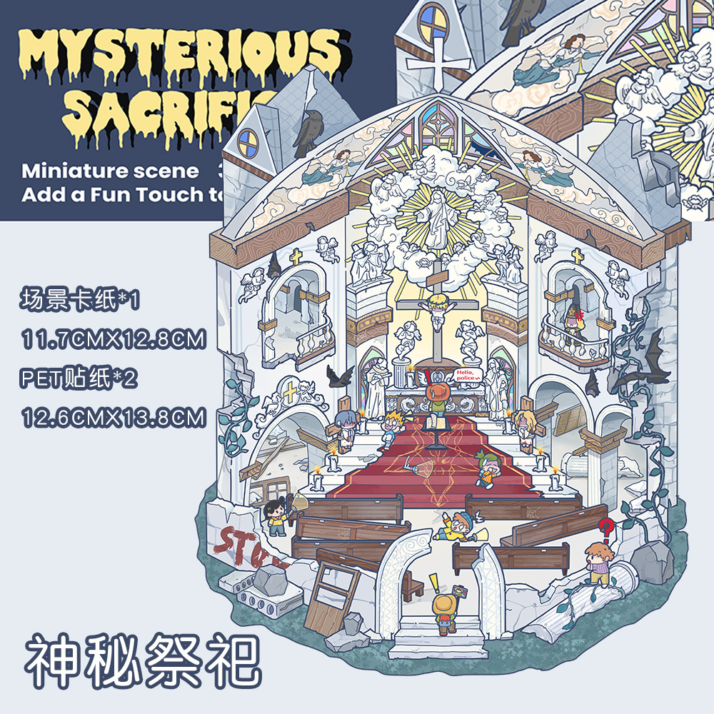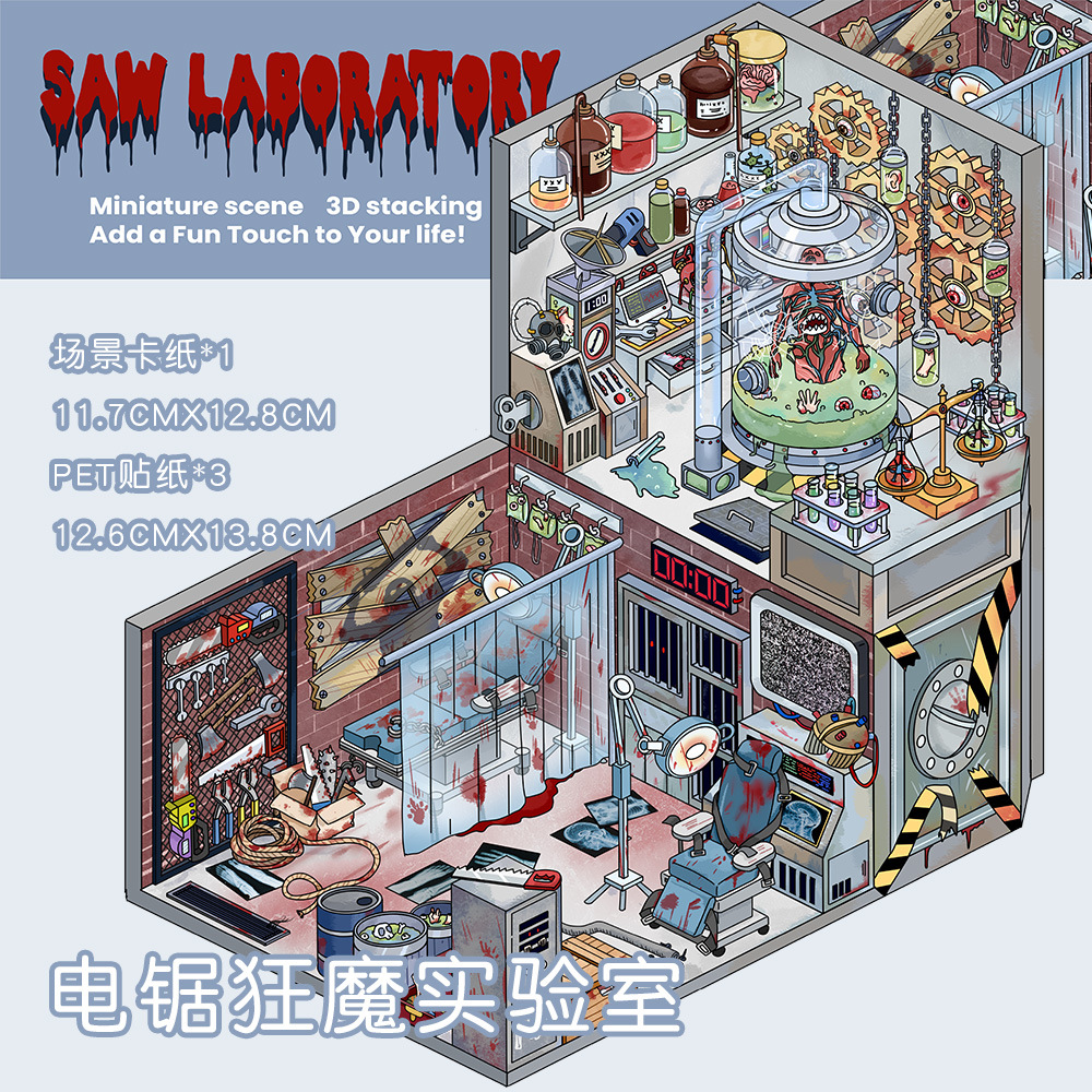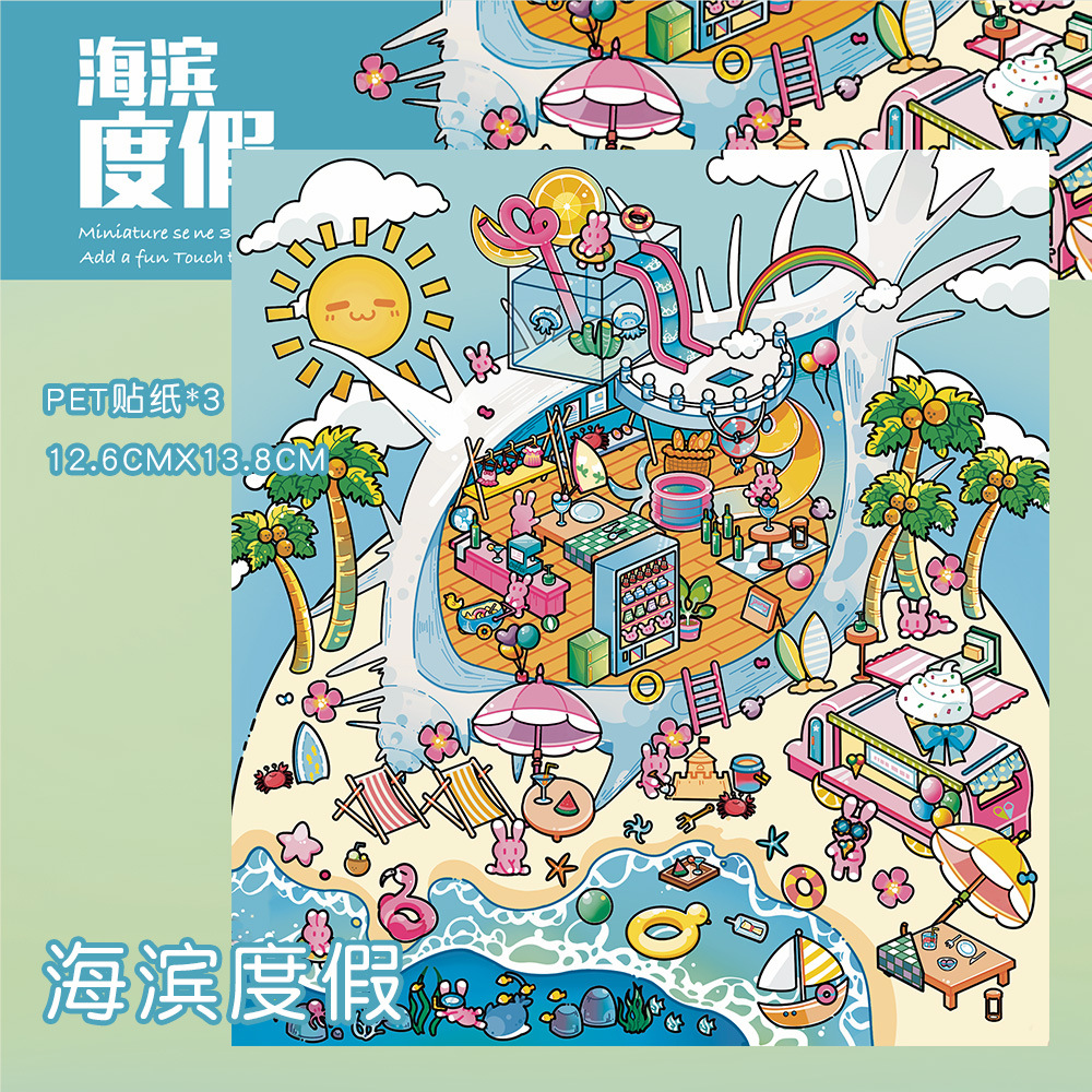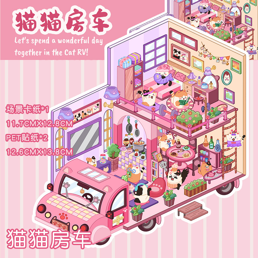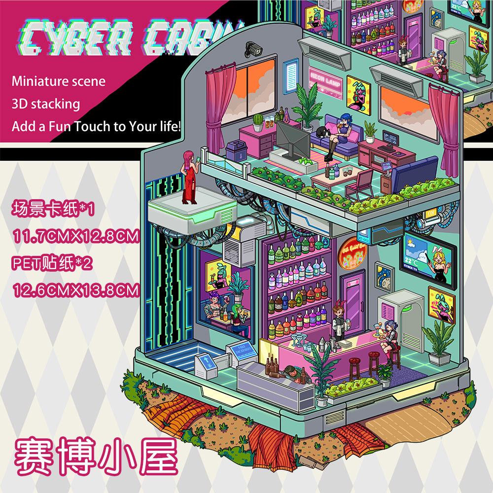 같은 새로운 미니어처 장면 조경 스티커와 함께 작은 빨간 책 컷 프리 조경 장면 3D 스택 3 차원 오두막 손 계정스토어 가기