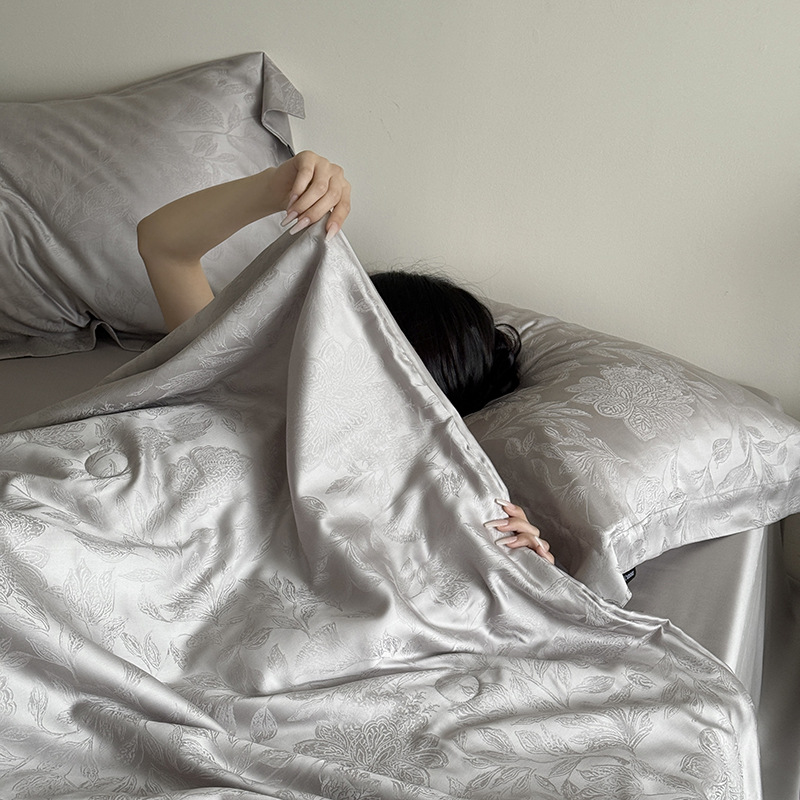 하이 엔드 100 Lanjing Tencel 여름 퀼트 침대 모자 4 피스 세트 여름 시원한 얼음 실크 에어컨 이불 여름 시원한 이불 도매