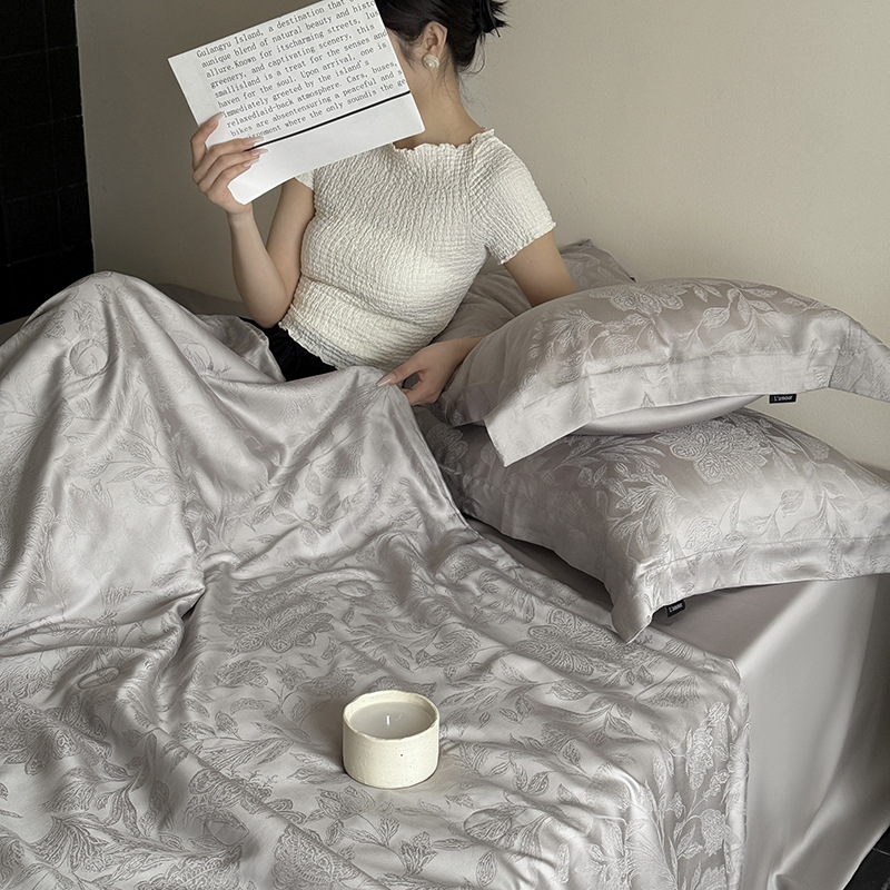 하이 엔드 100 Lanjing Tencel 여름 퀼트 침대 모자 4 피스 세트 여름 시원한 얼음 실크 에어컨 이불 여름 시원한 이불 도매스토어 가기