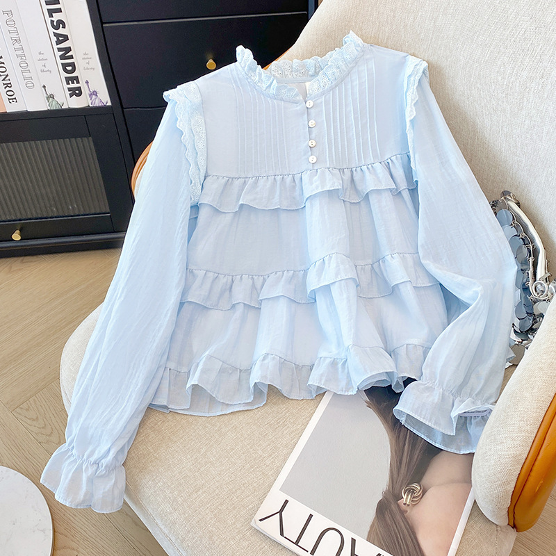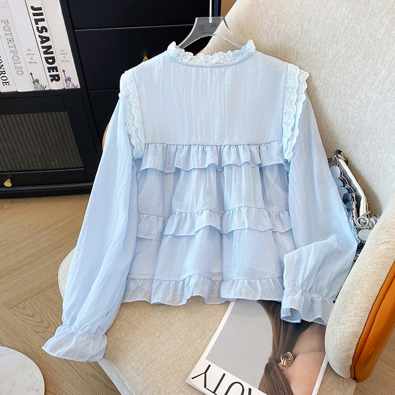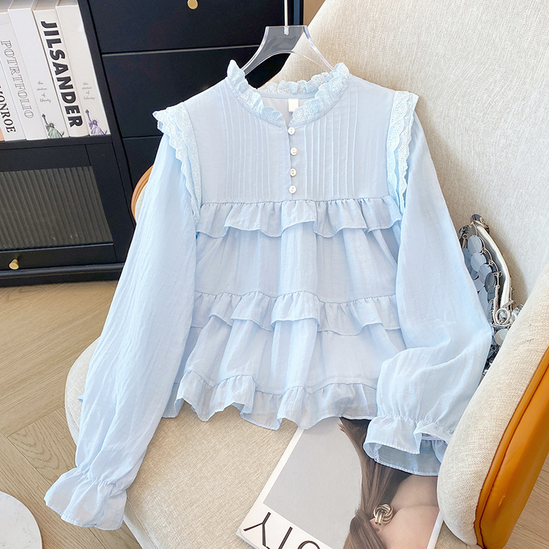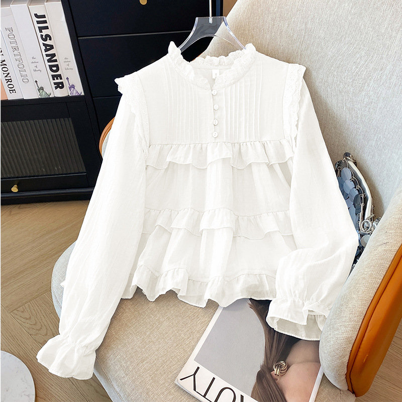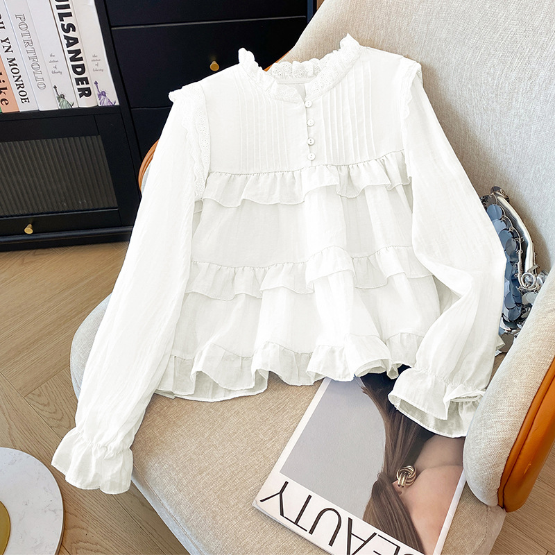 프랑스 스타일 유행 곰팡이 가장자리 쉬폰 셔츠 여성의 봄과 가을 2025 새로운 우아한 T 달콤하고 부드러운 인형 셔츠